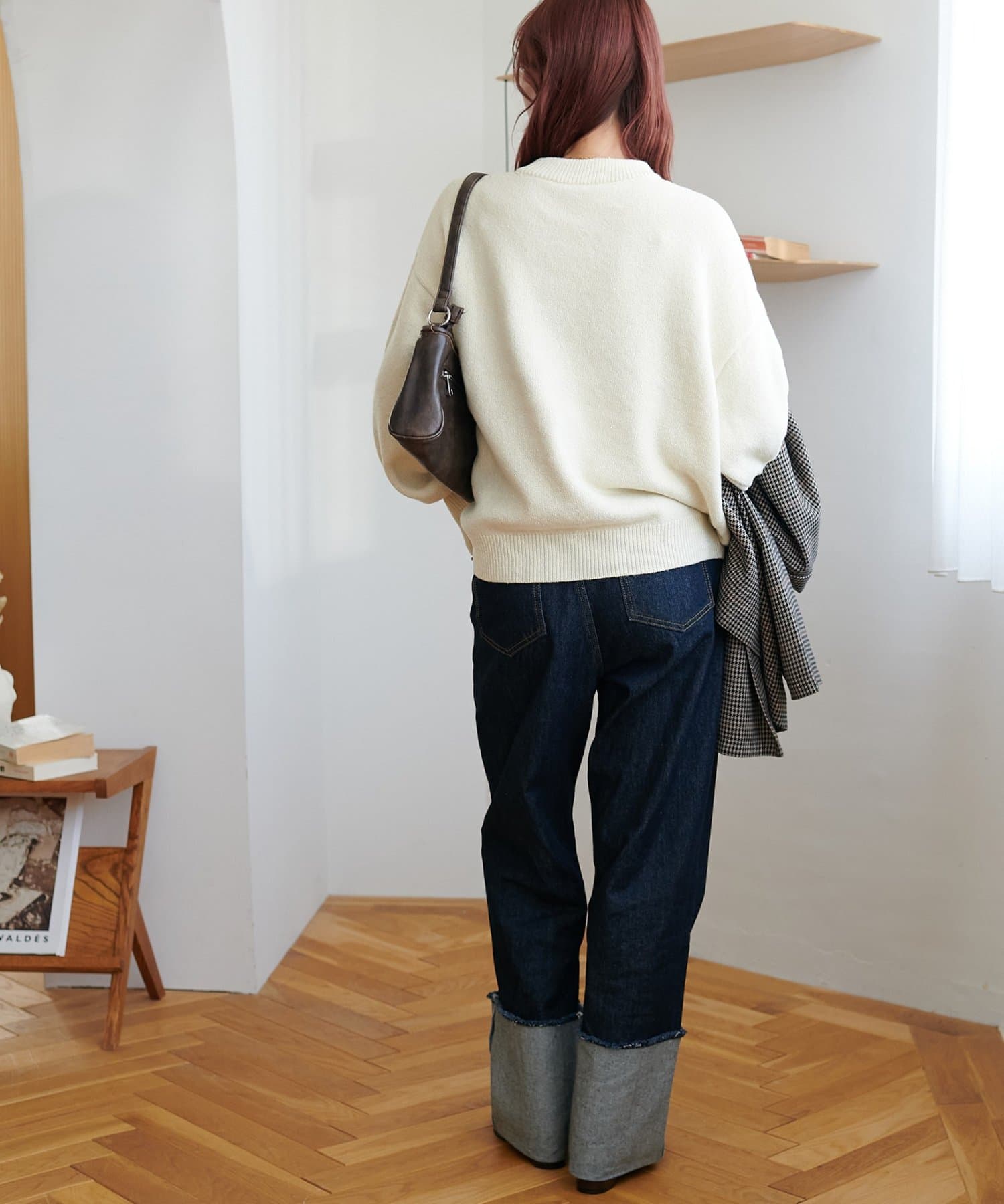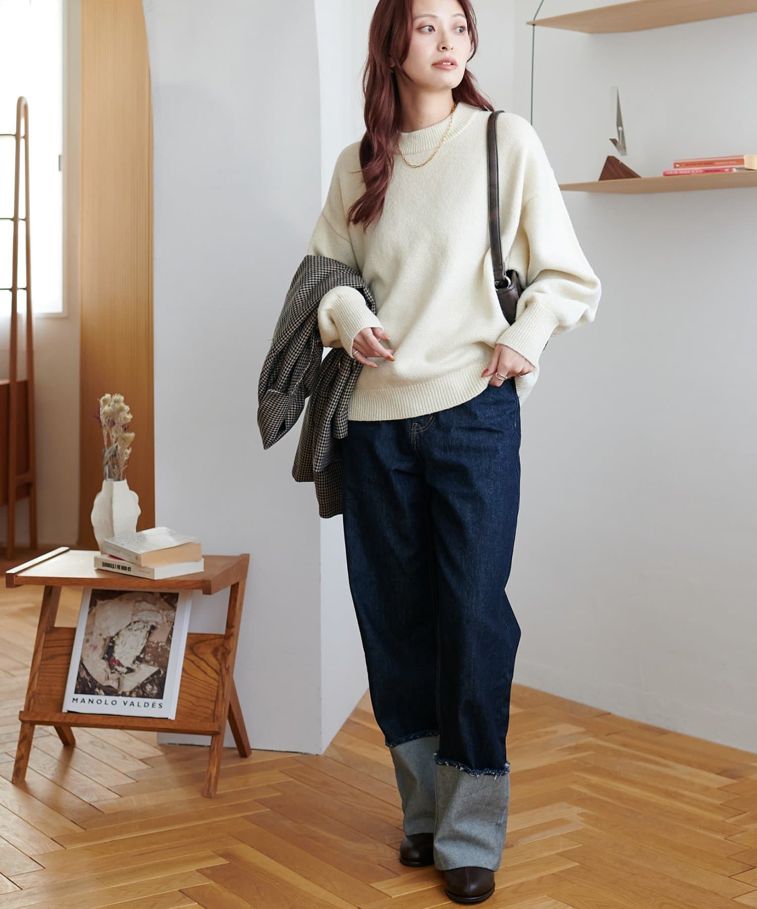 ボリューム感のある腕回りも、袖口がリブになっていることで手元はすっきりとした印象に◎
