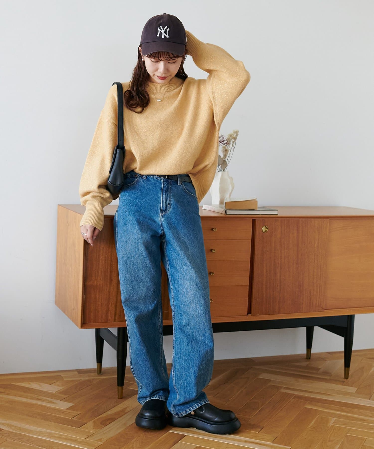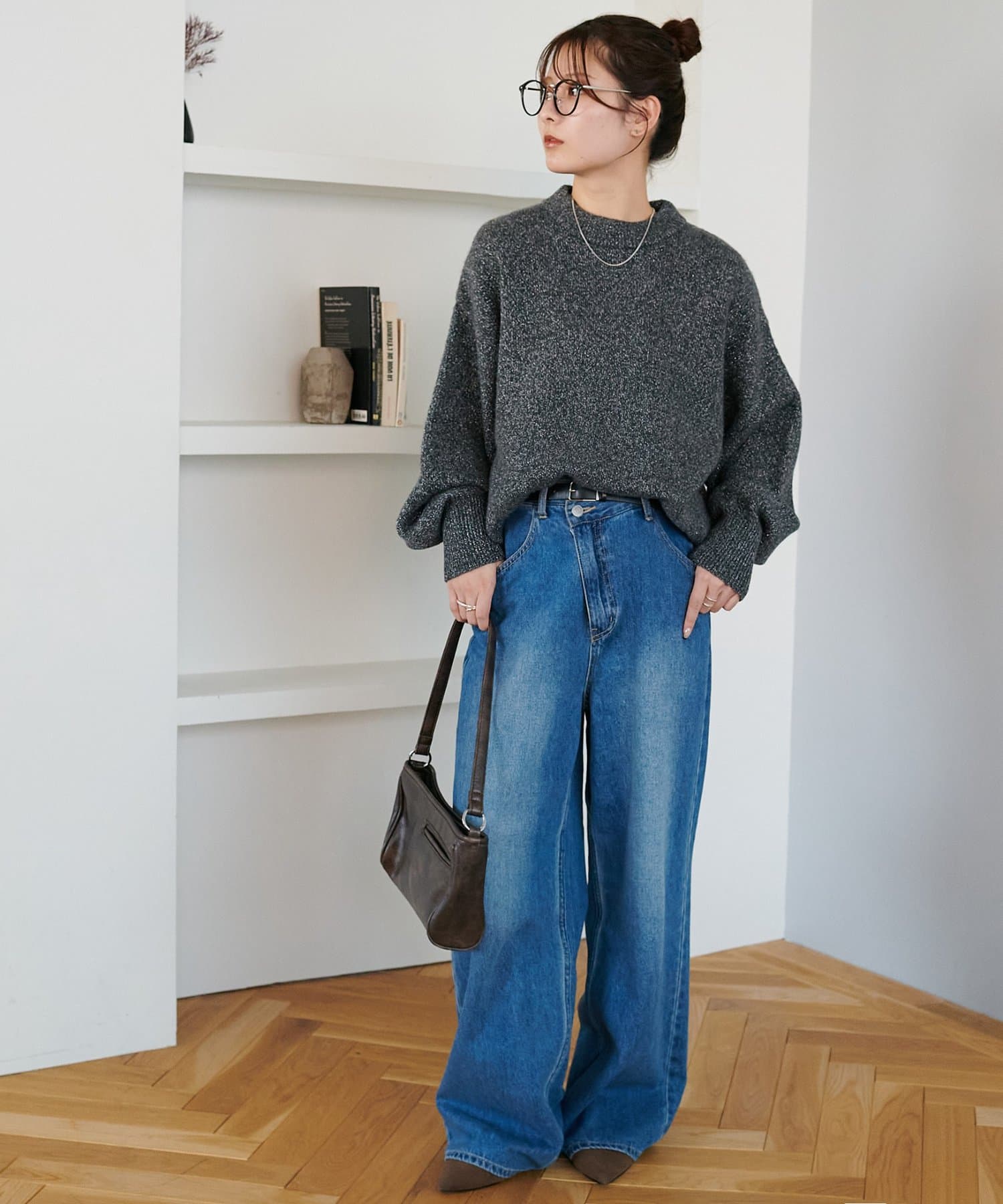・定番デニム合わせでもラメでカジュアルすぎず女性らしさをプラス