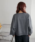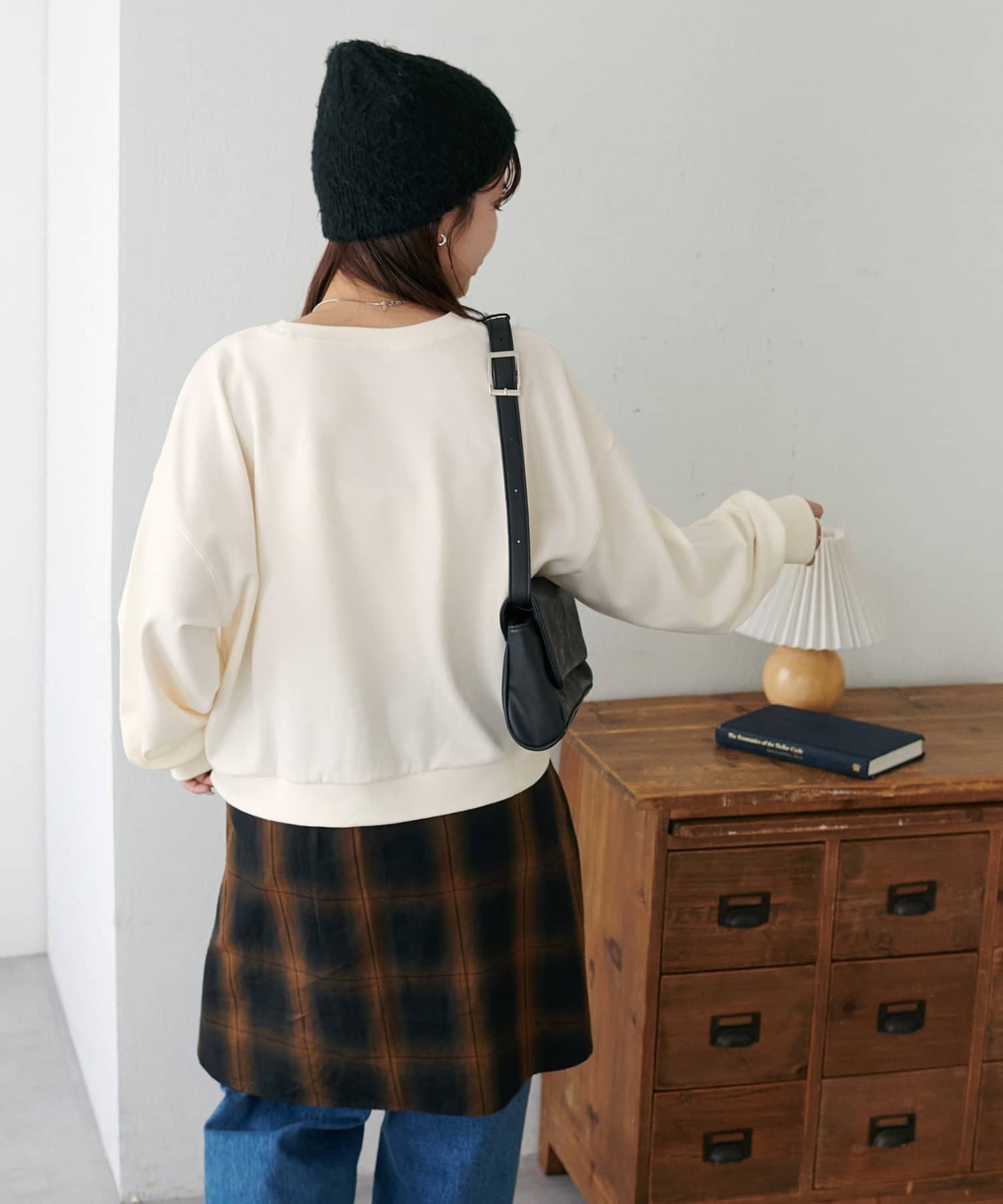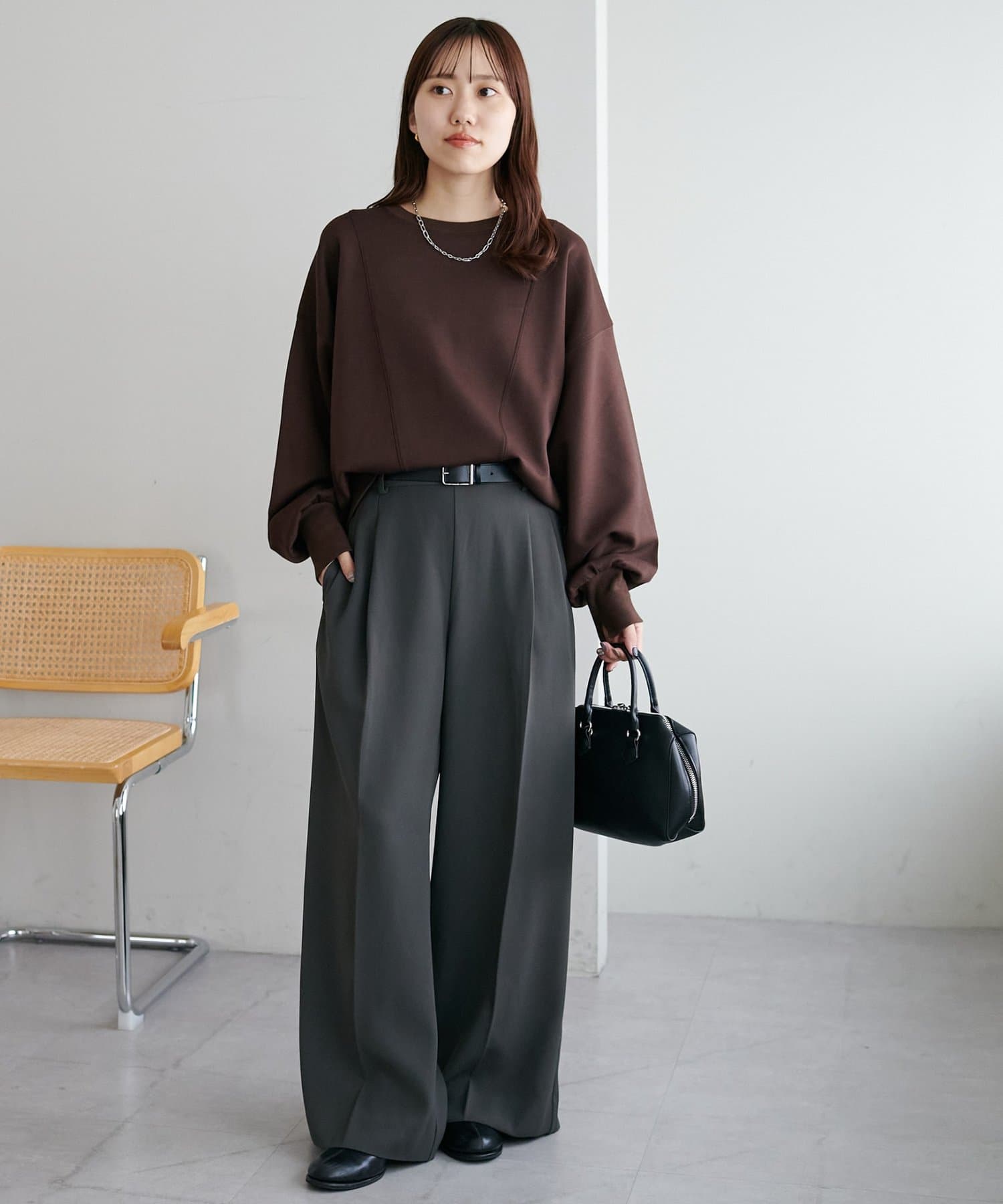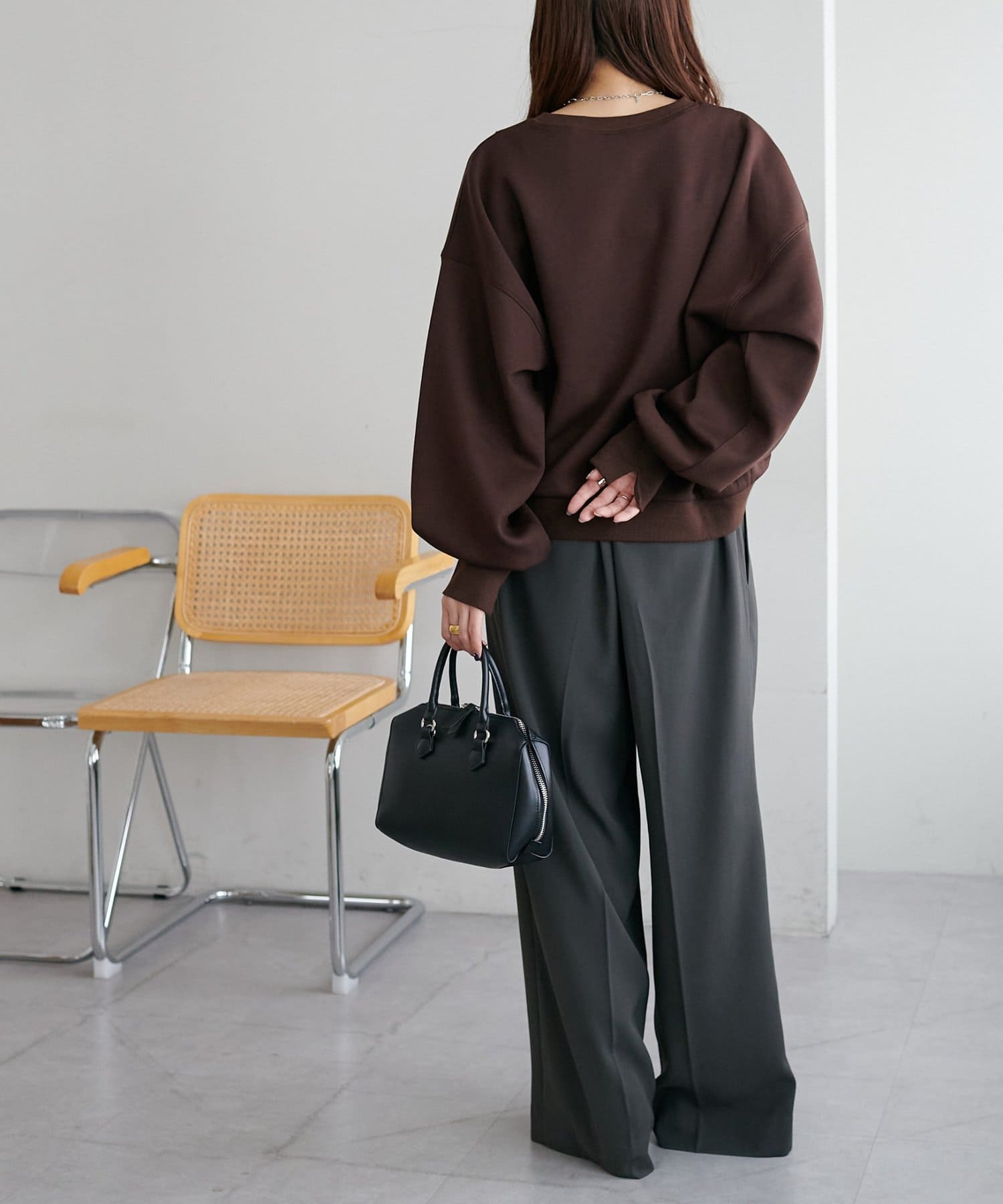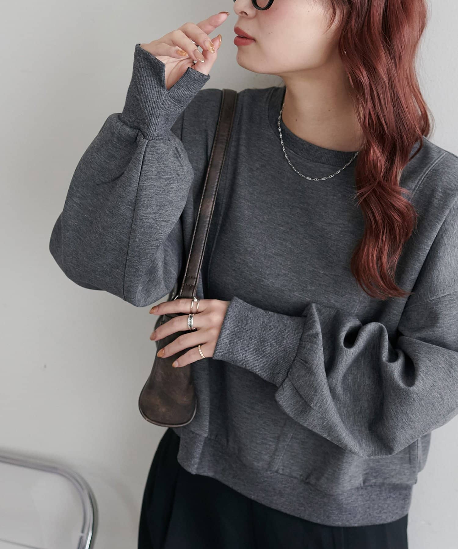 155cmスタッフ:着心地の良いトップスです。スウェットのようなデザインですが、ハリ感のある素材で高見えします!