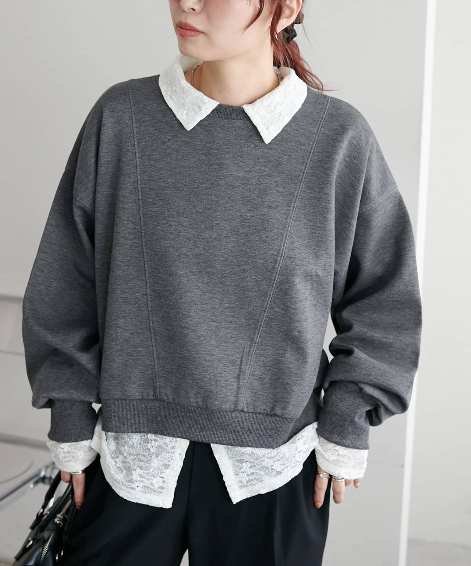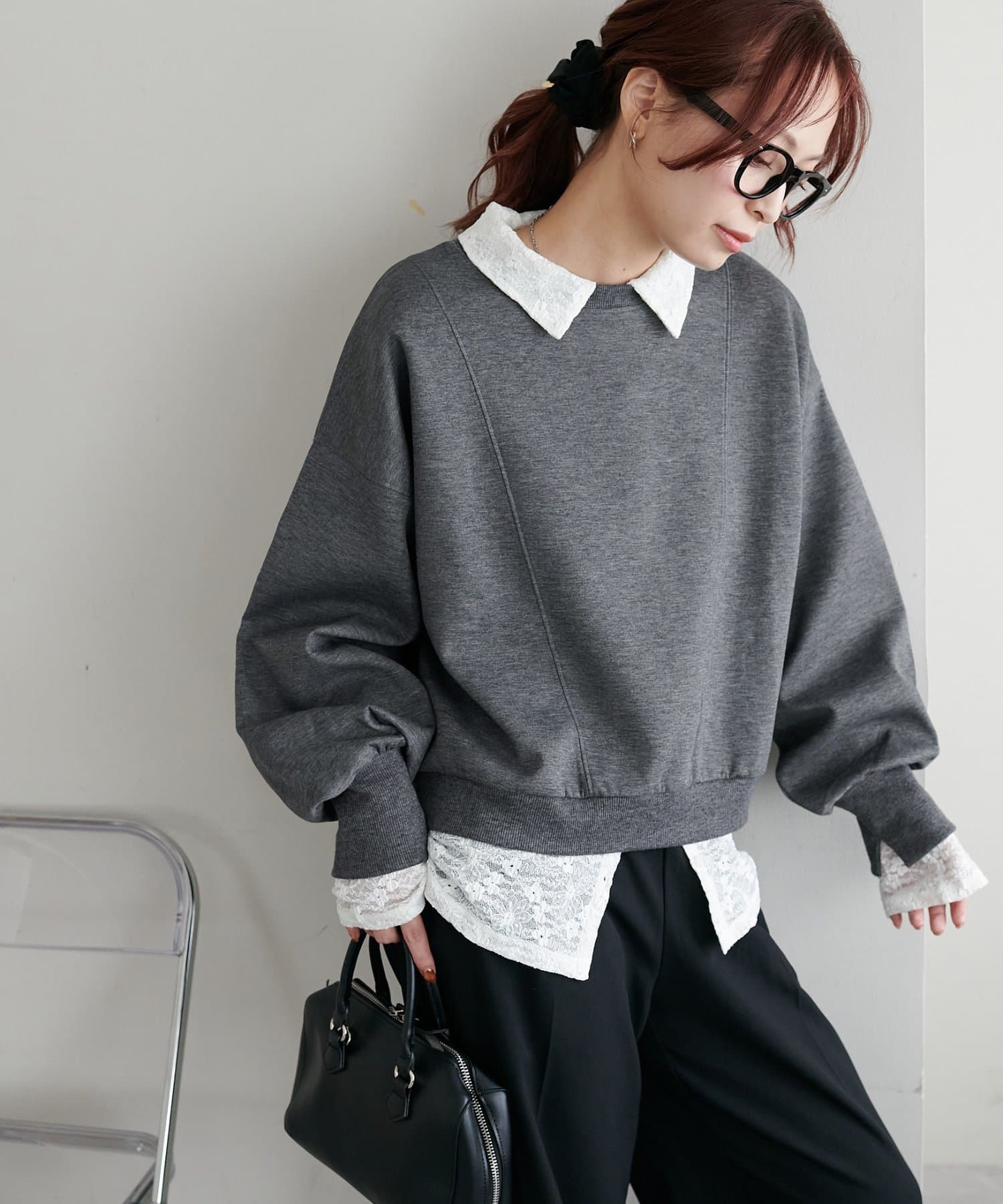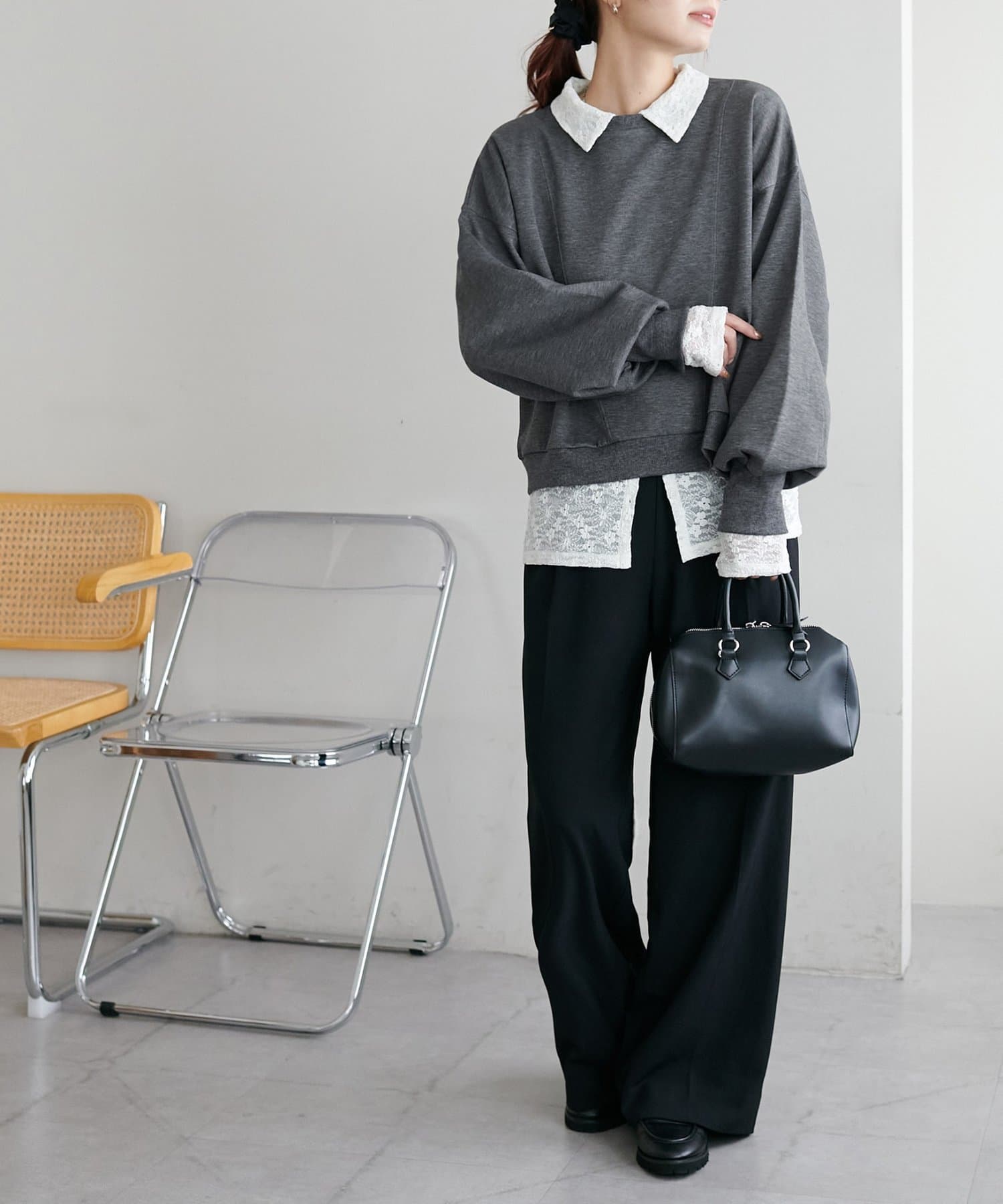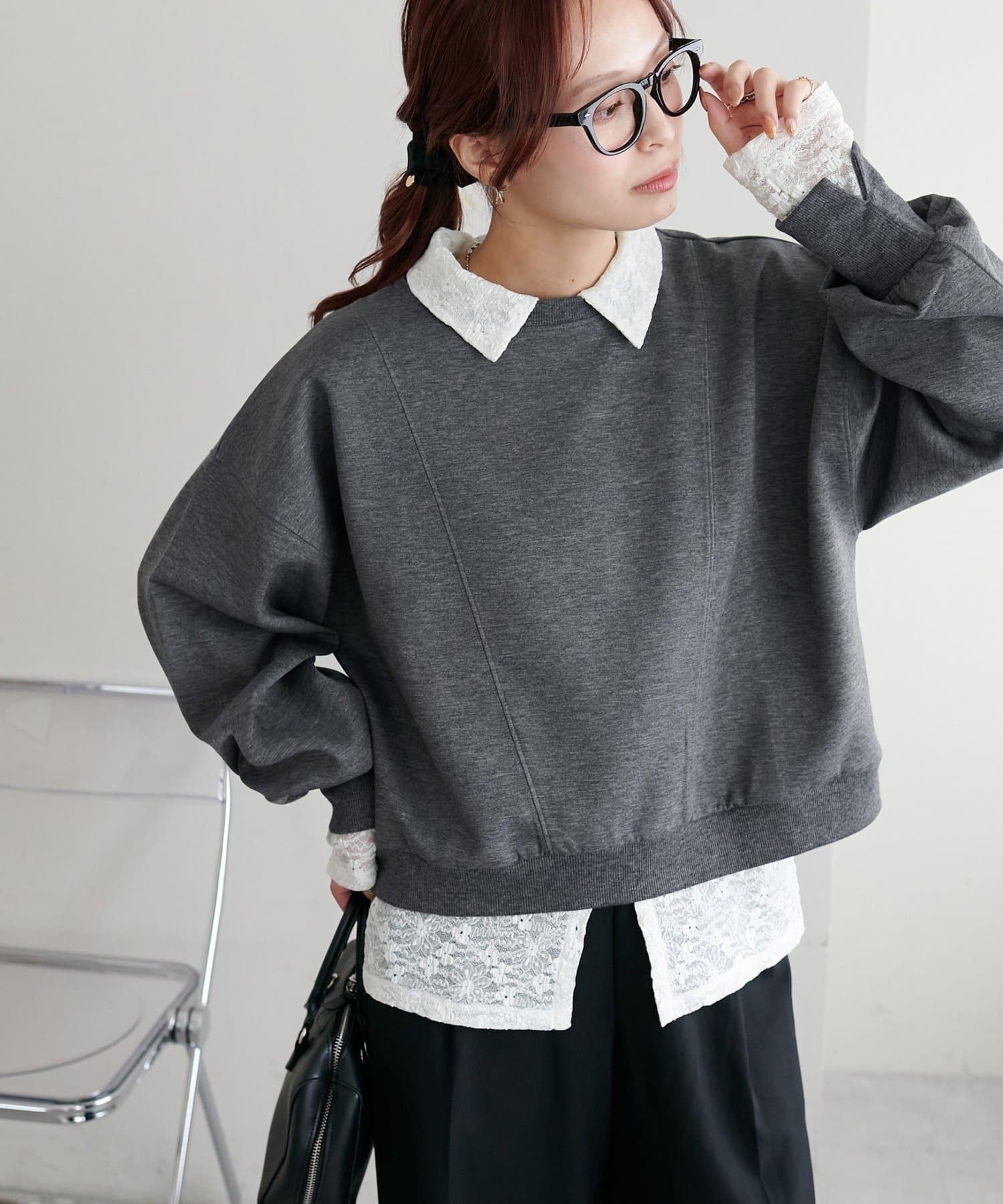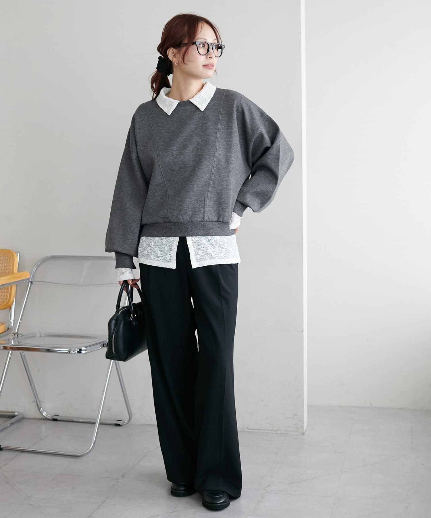 155cmスタッフ:着心地の良いトップスです。スウェットのようなデザインですが、ハリ感のある素材で高見えします!
