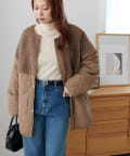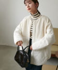 162cmスタッフ(Lサイズ着用):ノーカラーデザインなので、タートルネックを合わせてもスッキリとしたお顔回りに。