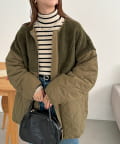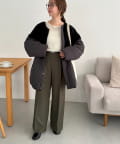 ノーカラーデザインで、お顔回りはすっきりに見せながら、タートルネックやハイネックのアイテムとも合わせていただきやすいデザインです〇