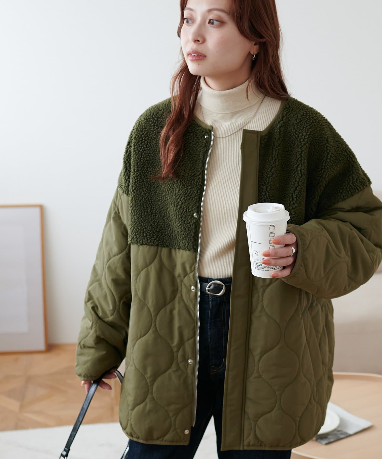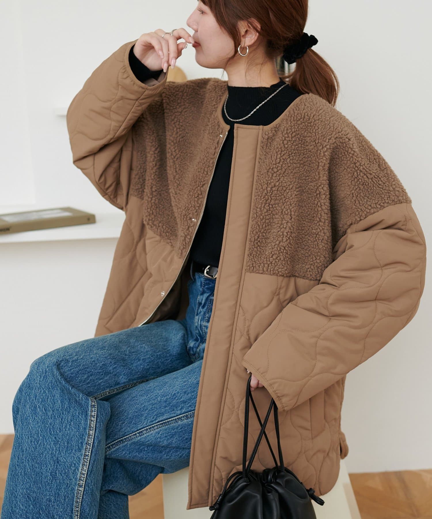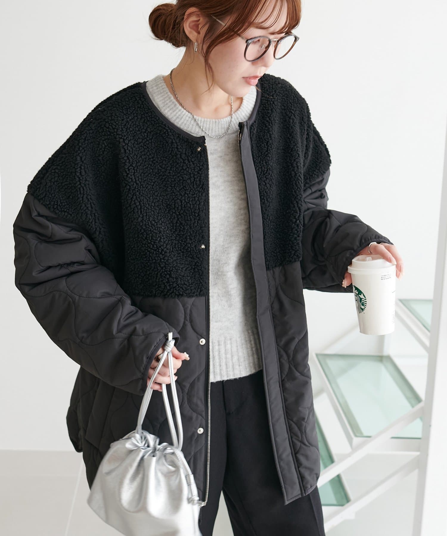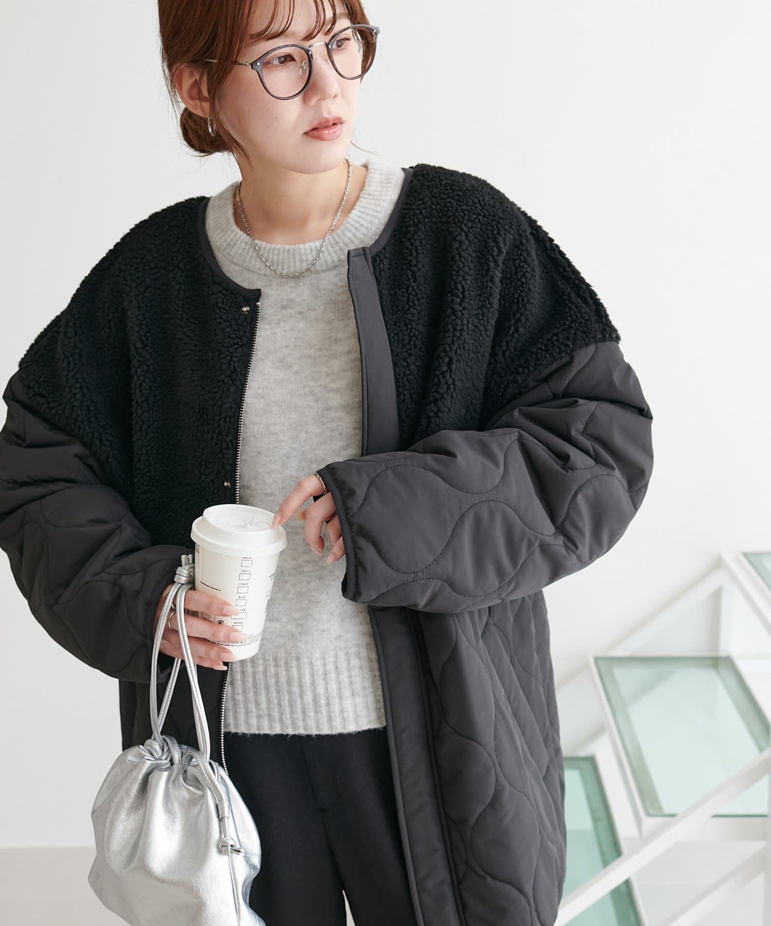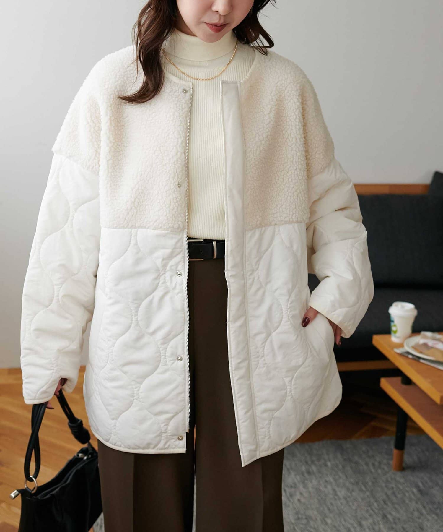 【軽量/大人のこなれ感】ボア切替キルティングコート《WEB限定カラーあり》