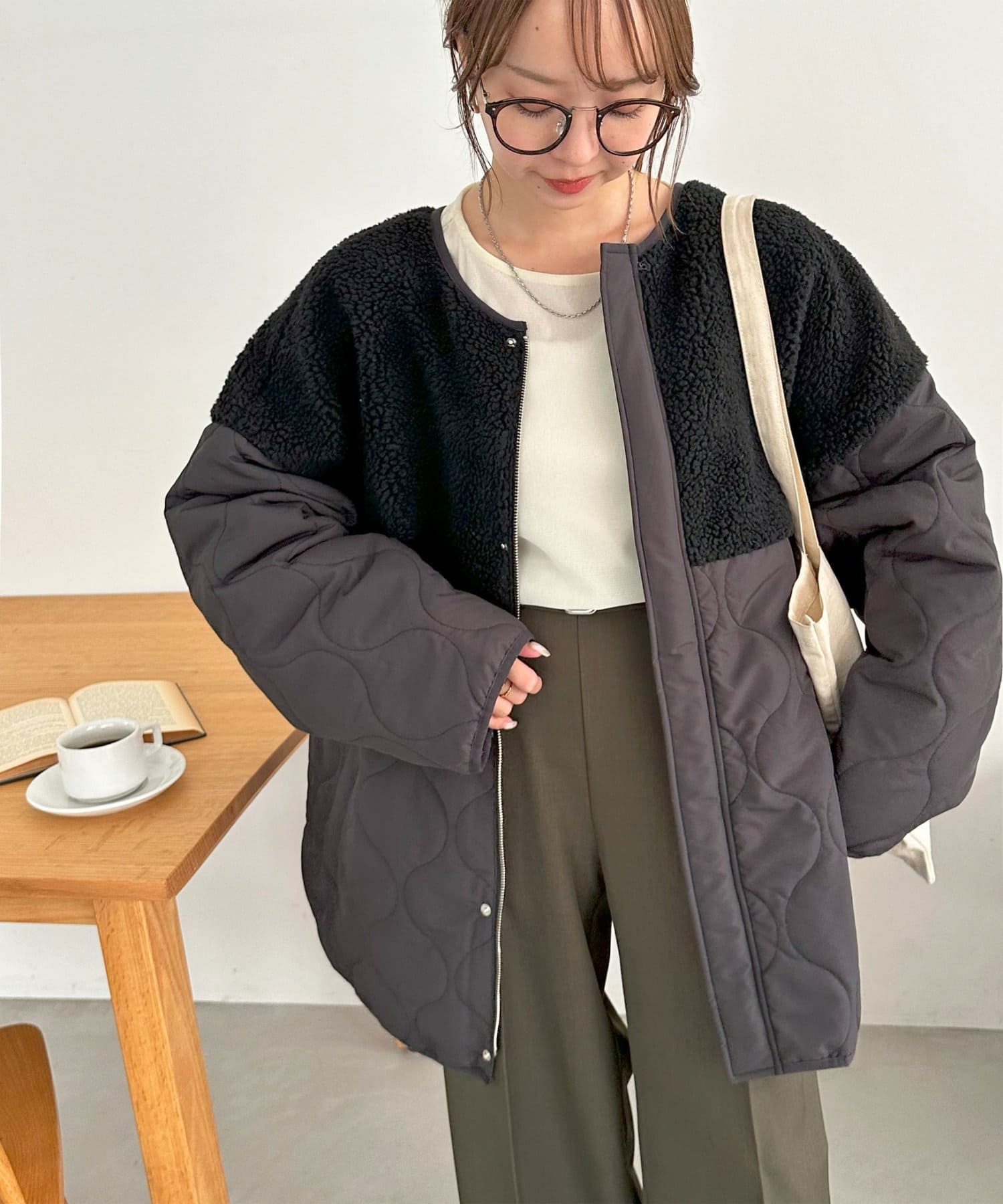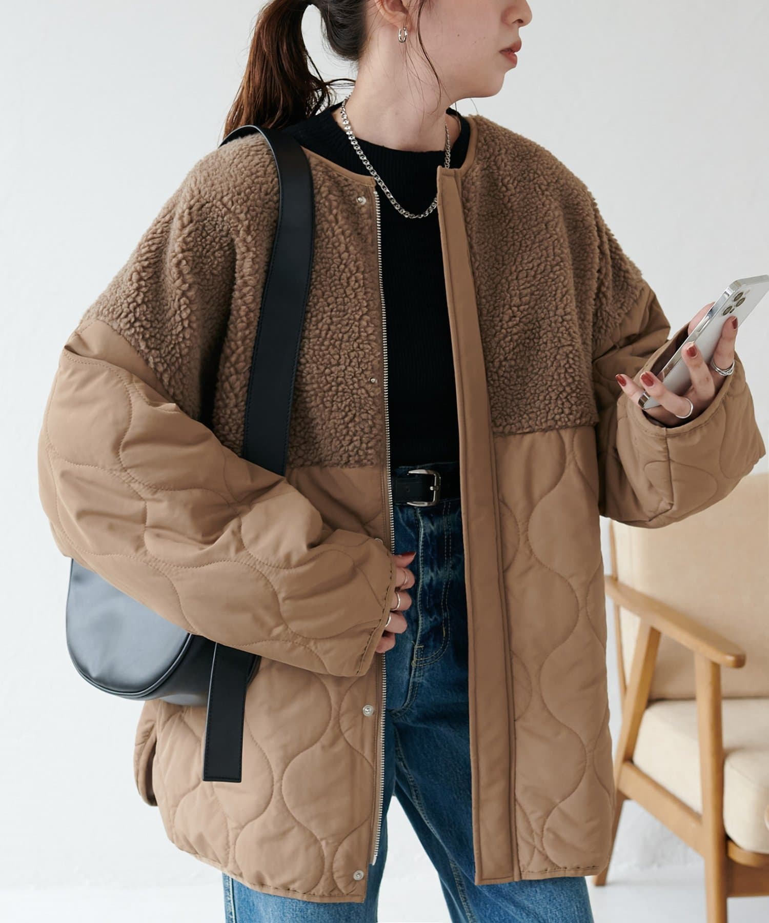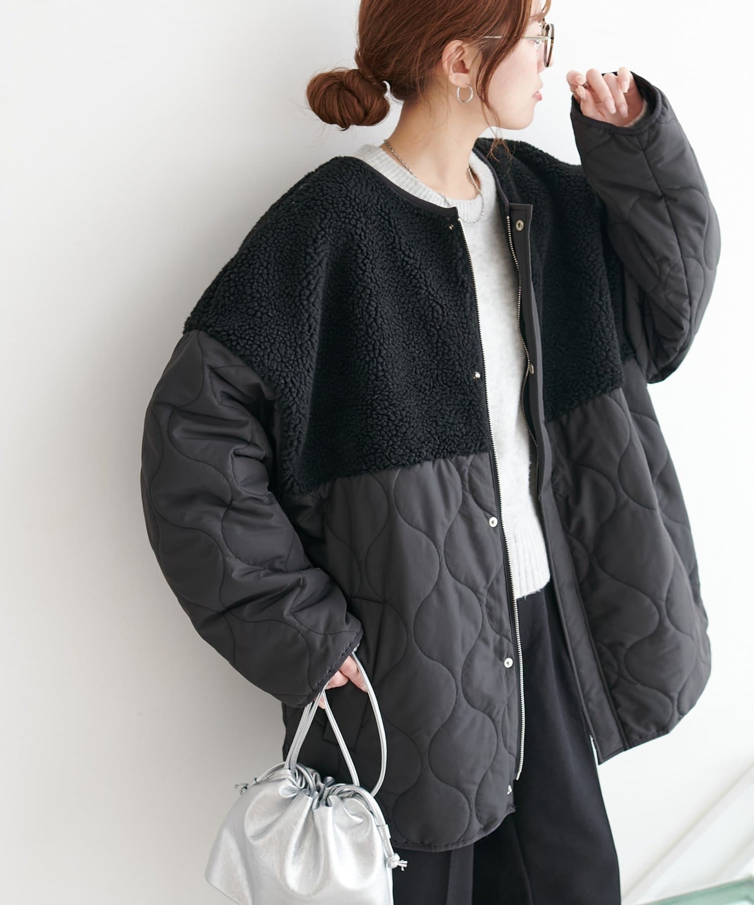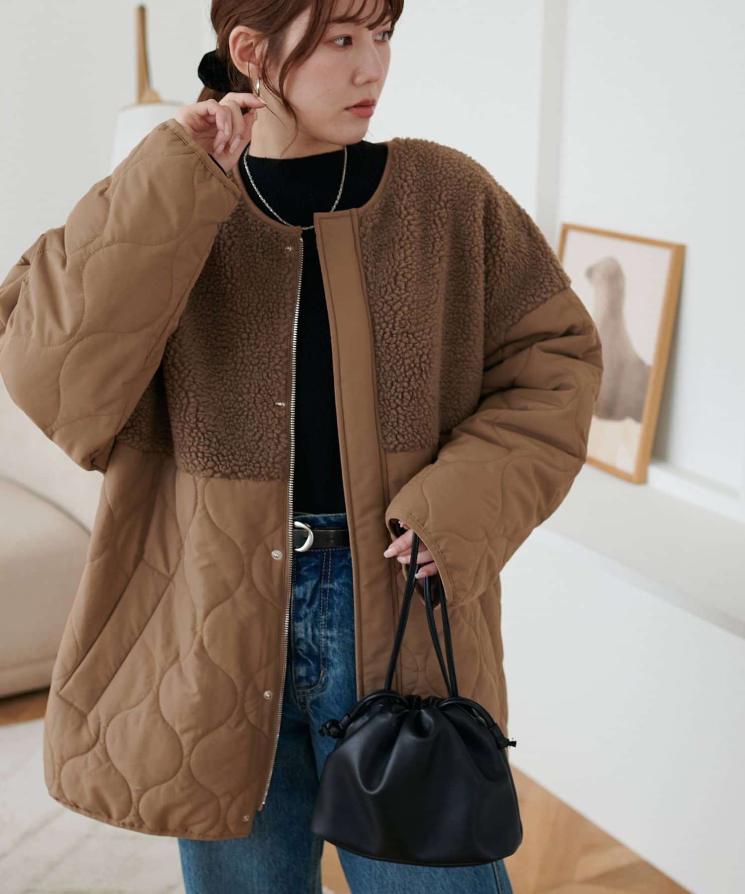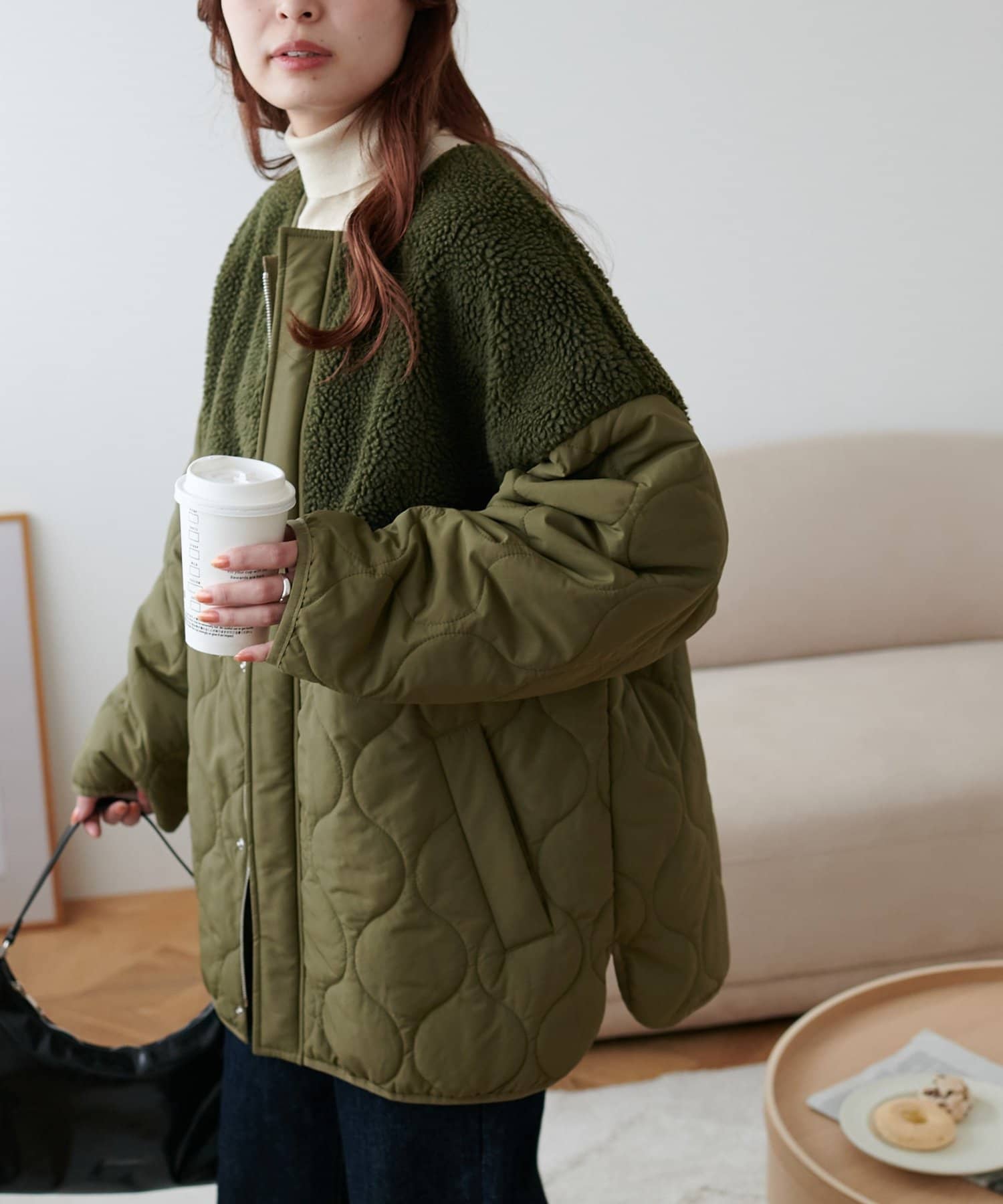 【軽量/大人のこなれ感】ボア切替キルティングコート《WEB限定カラーあり》