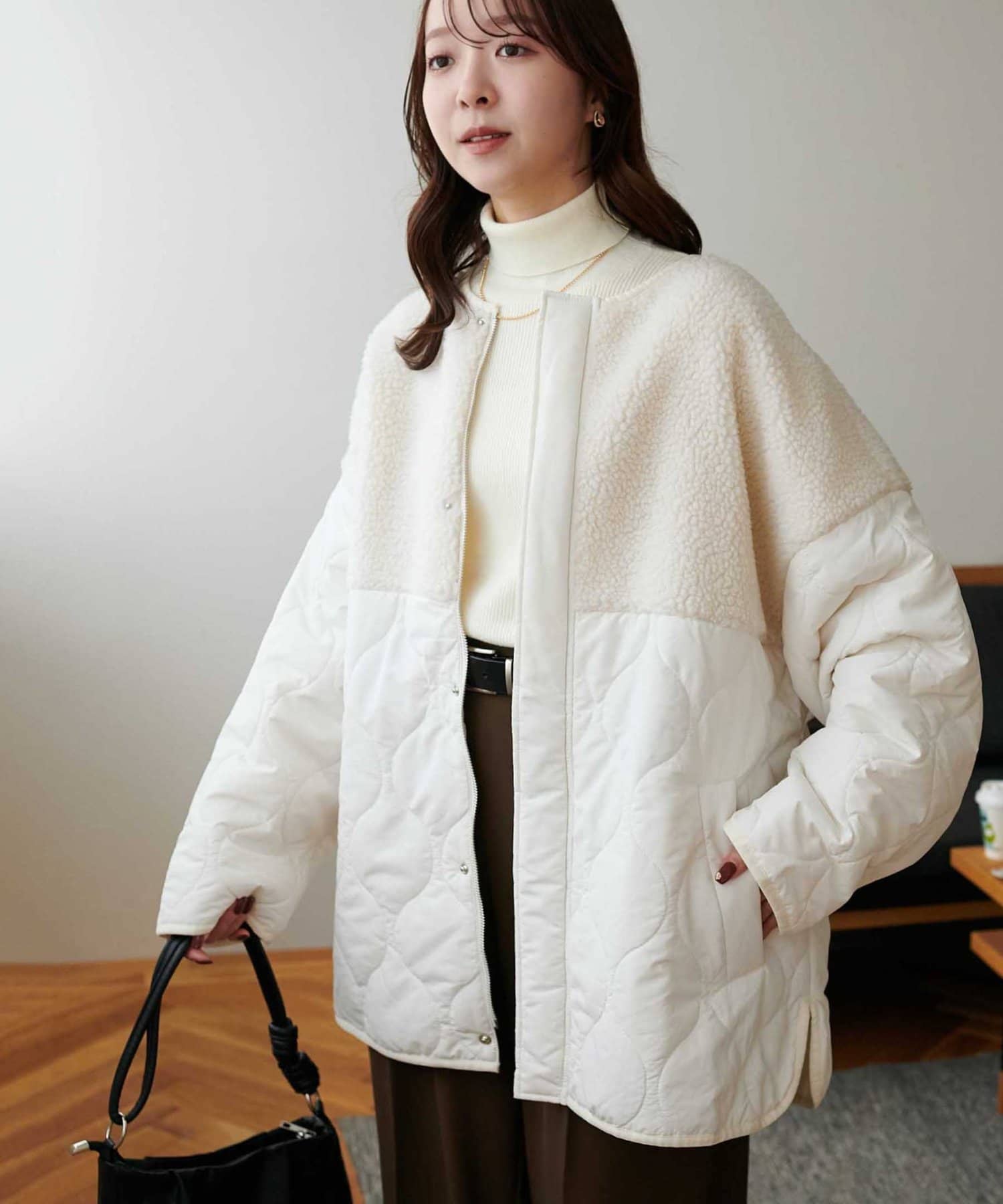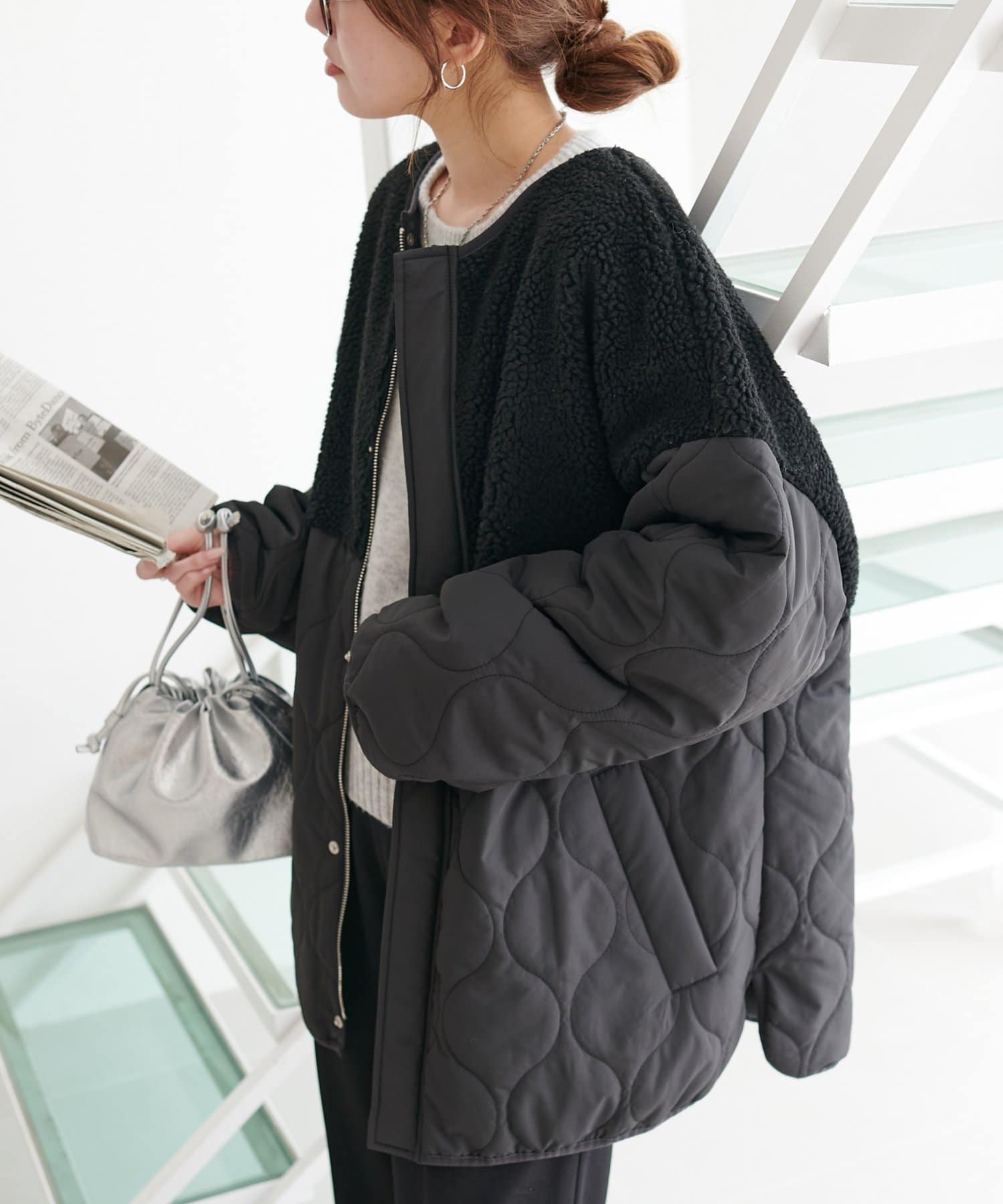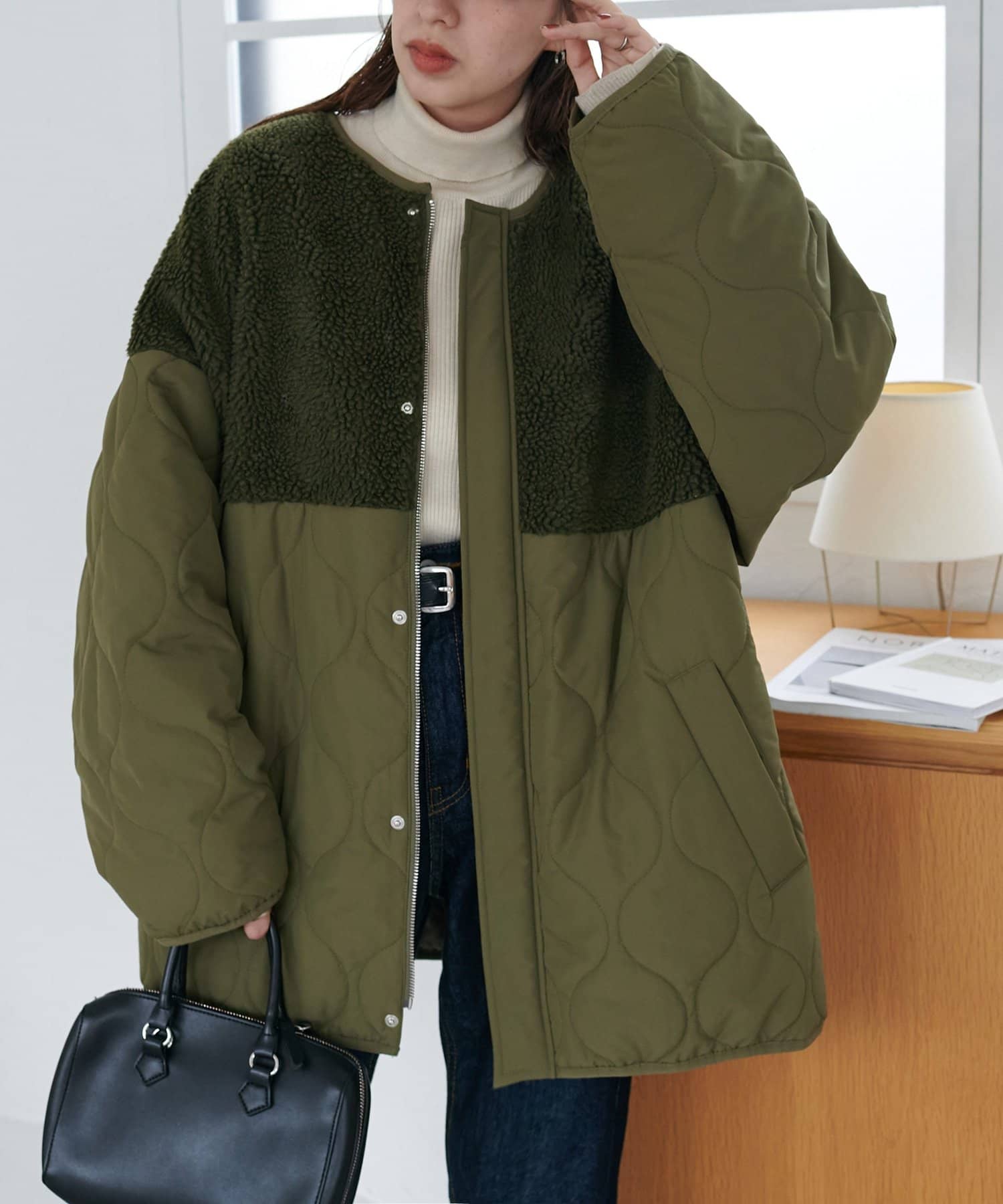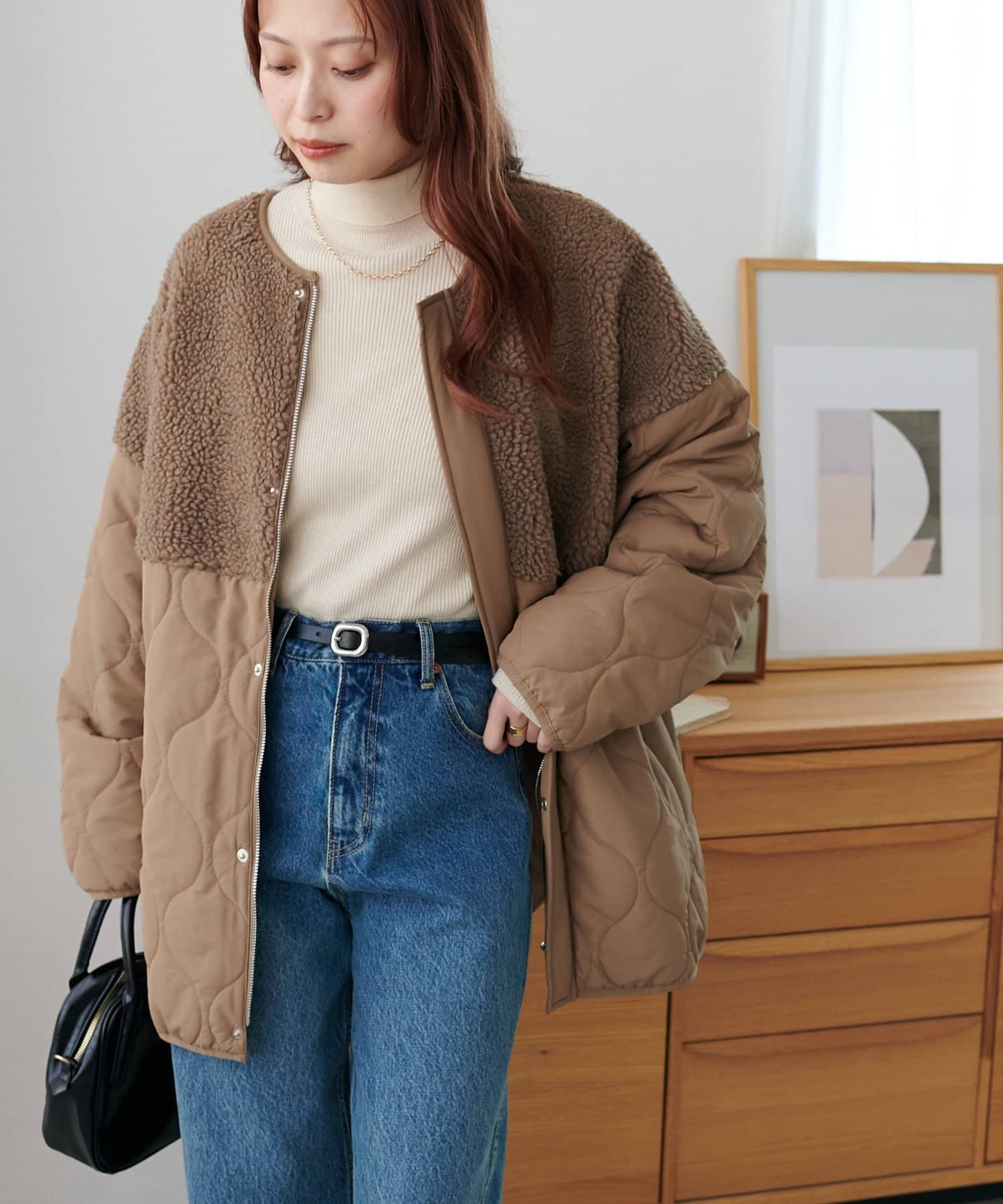 【軽量/大人のこなれ感】ボア切替キルティングコート《WEB限定カラーあり》