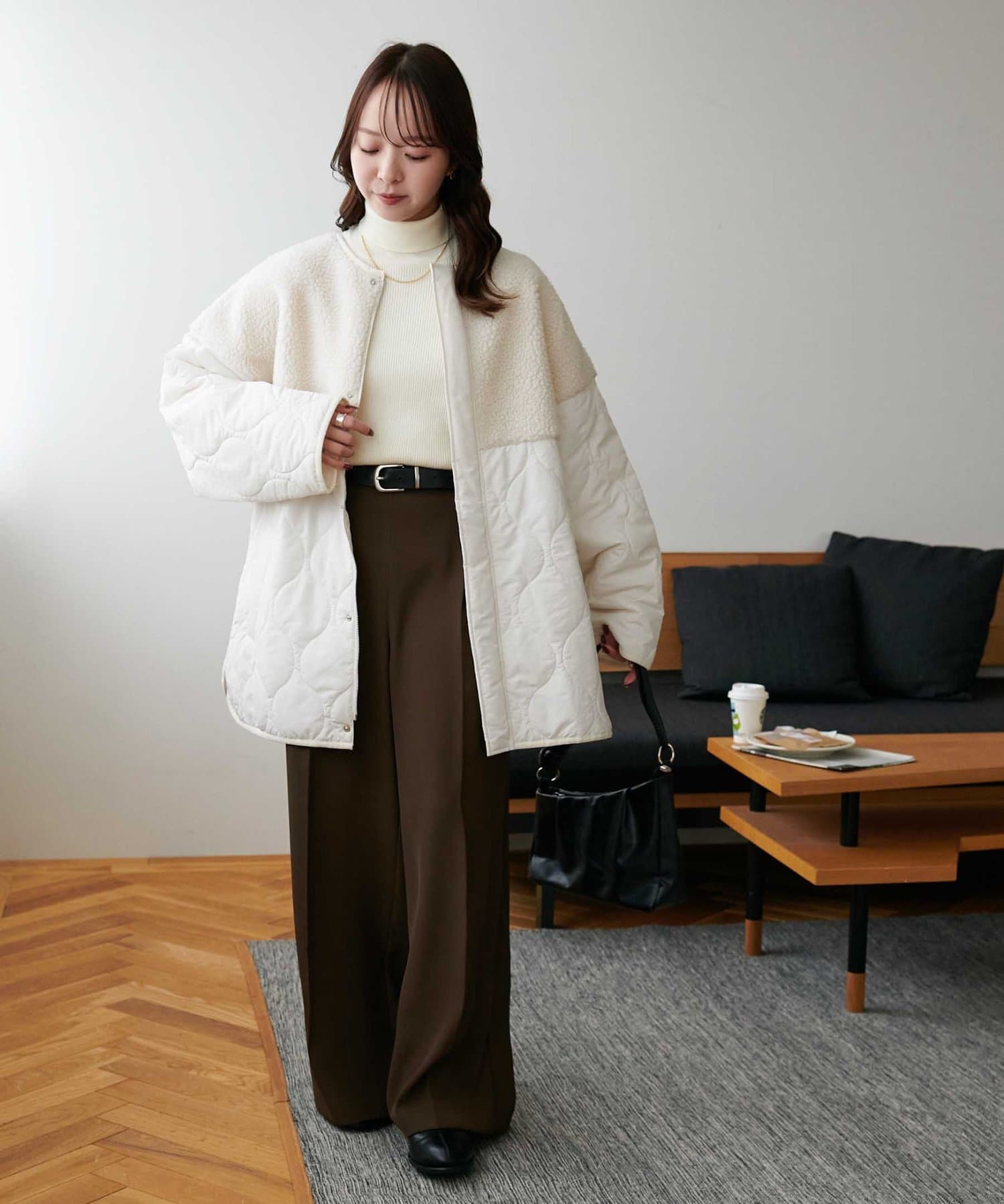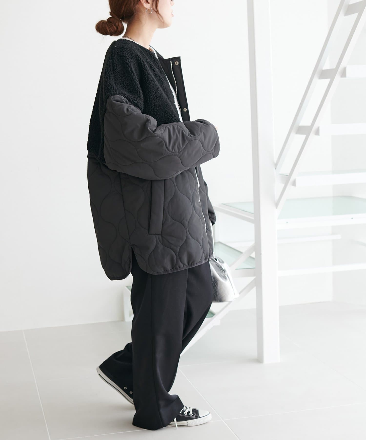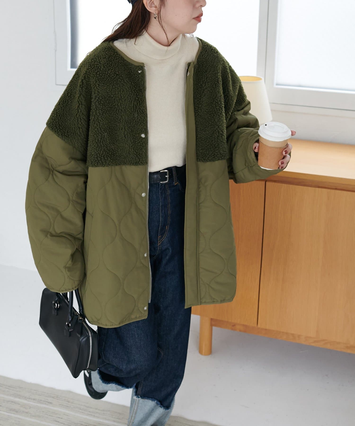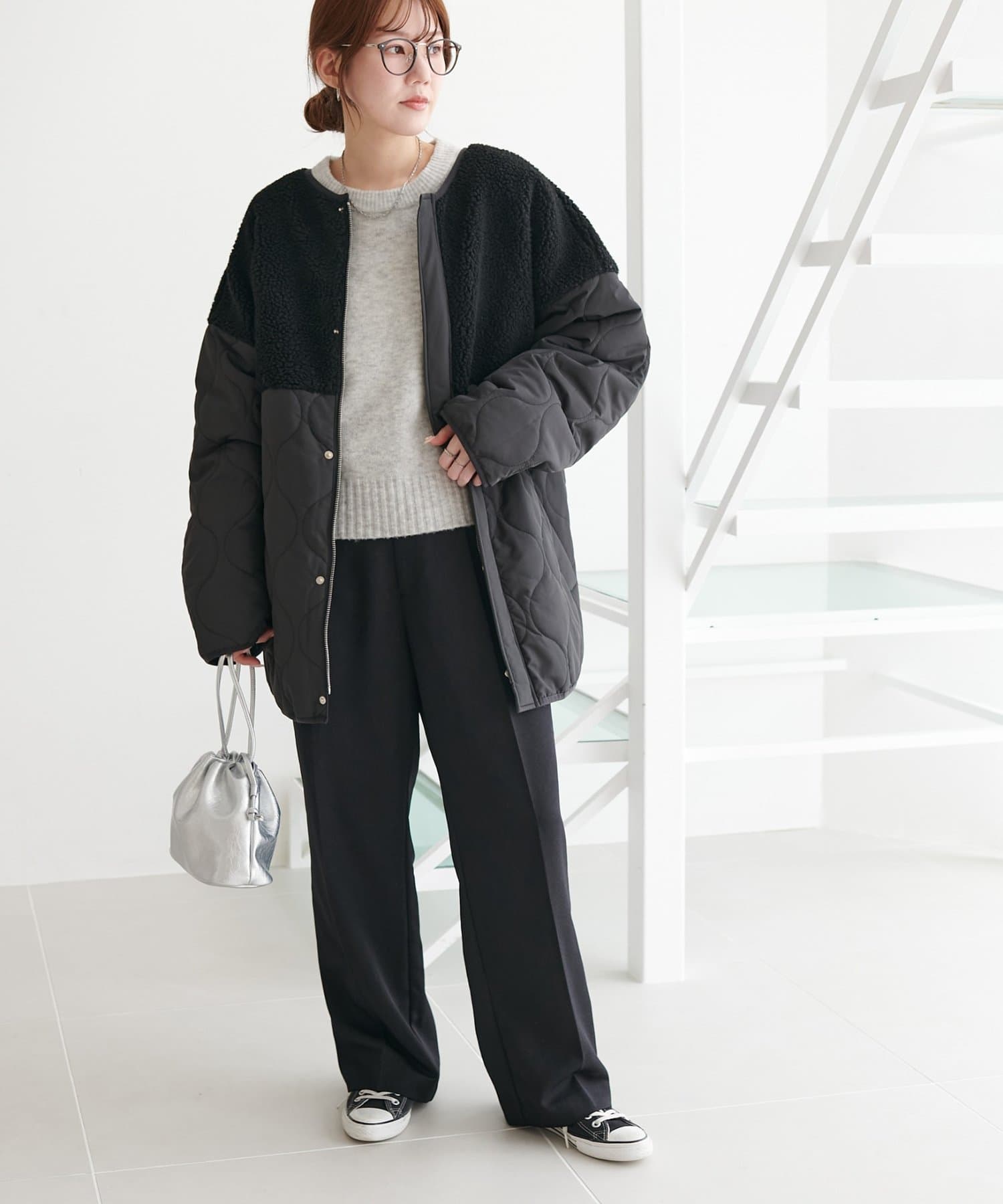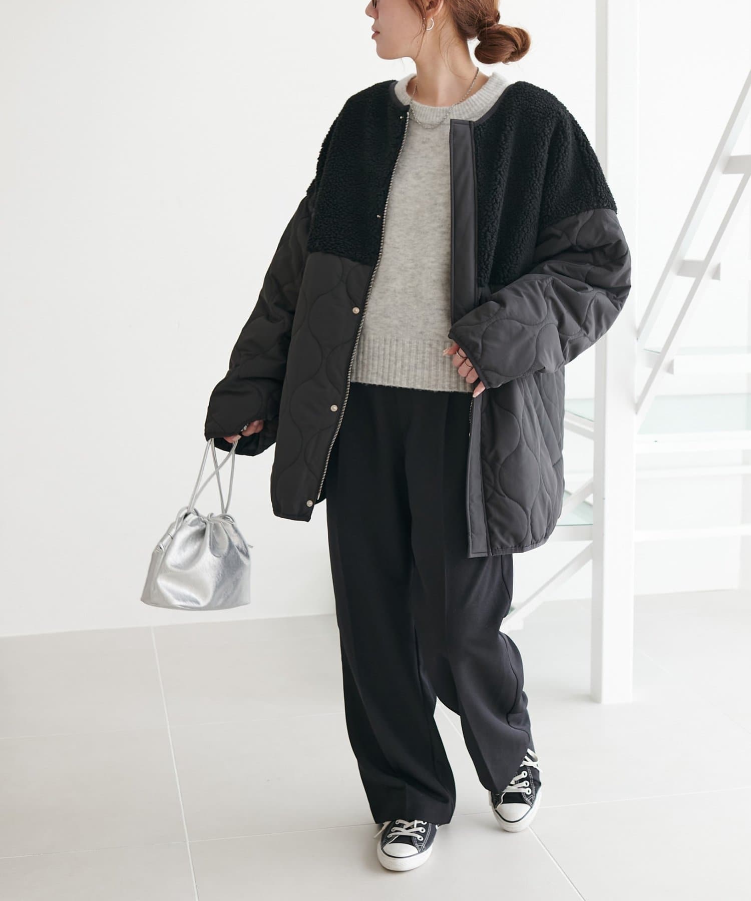 【軽量/大人のこなれ感】ボア切替キルティングコート《WEB限定カラーあり》