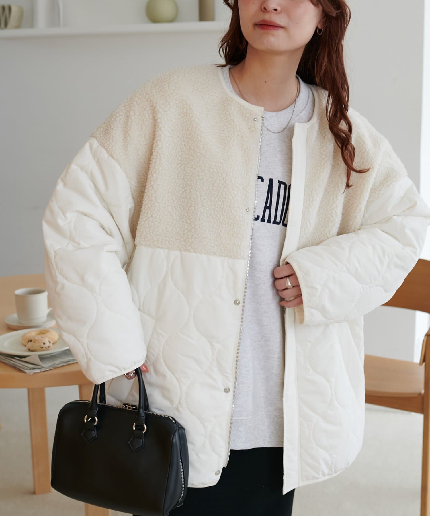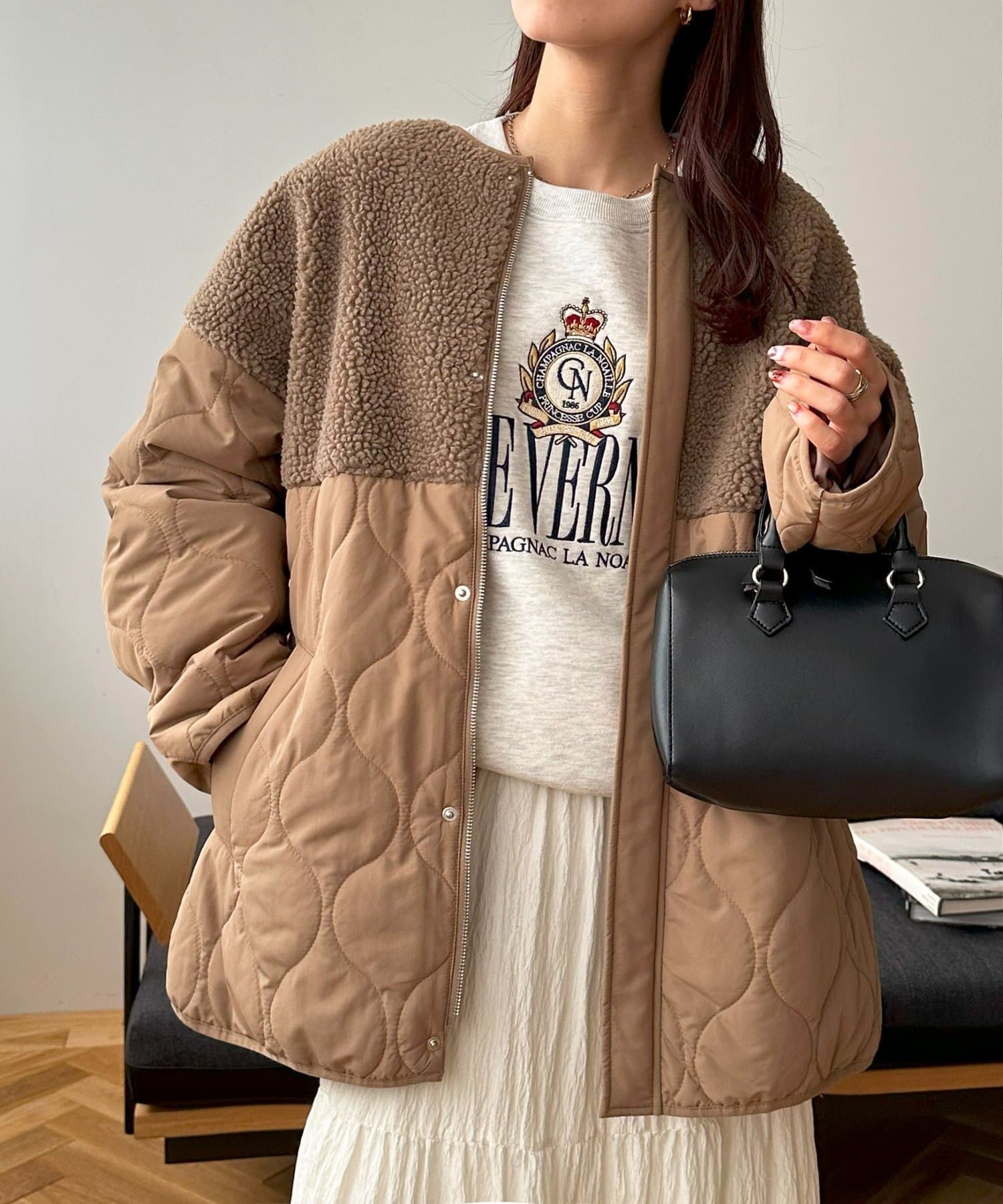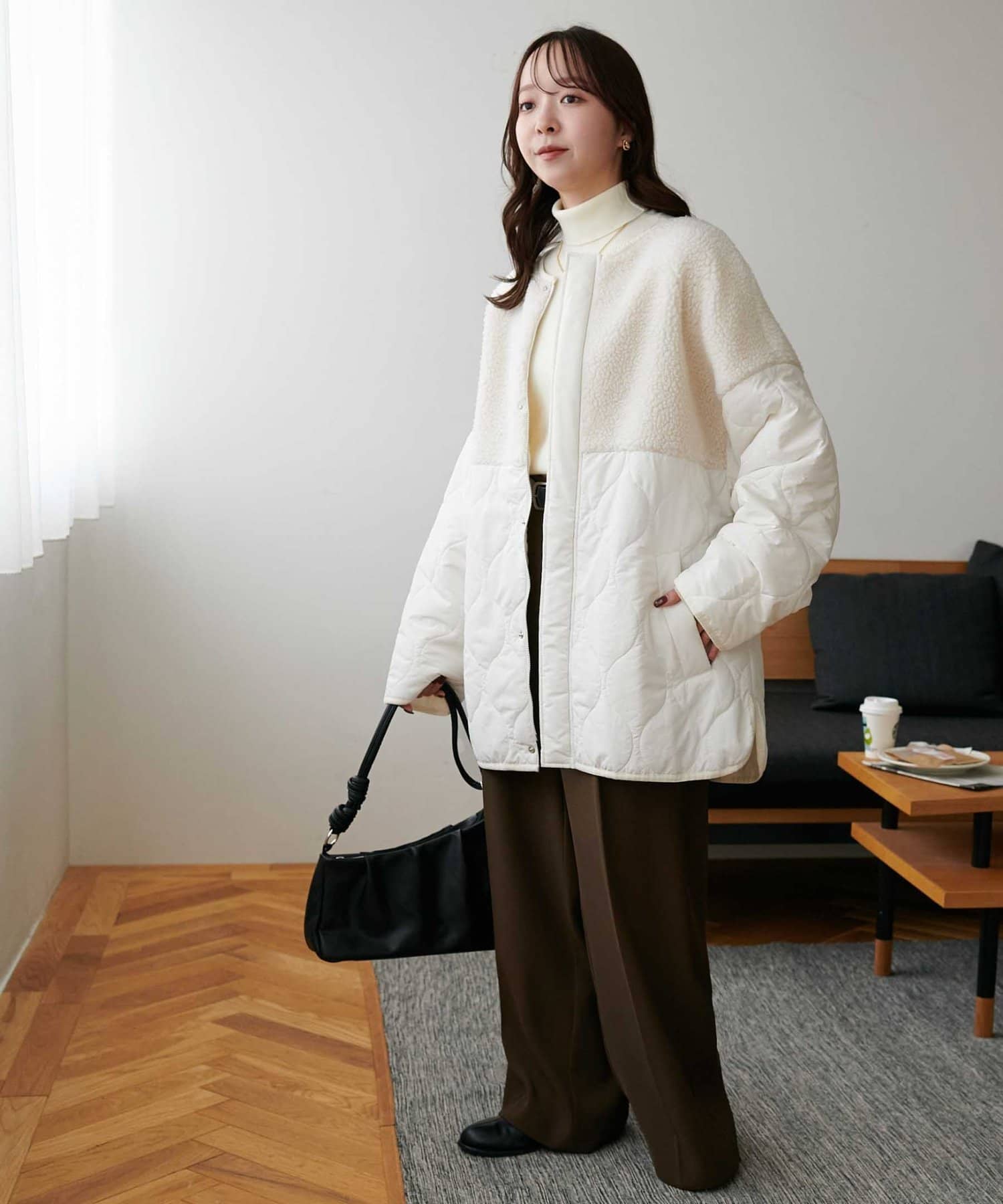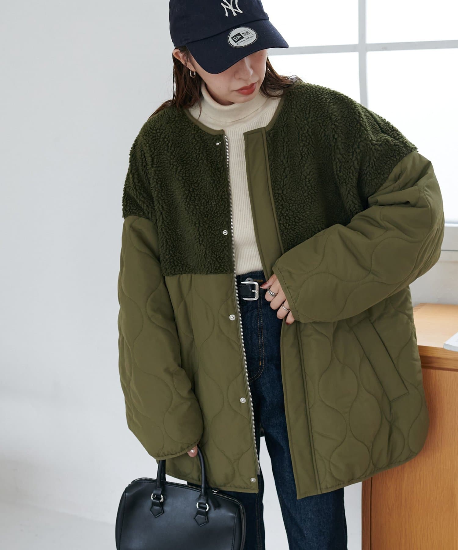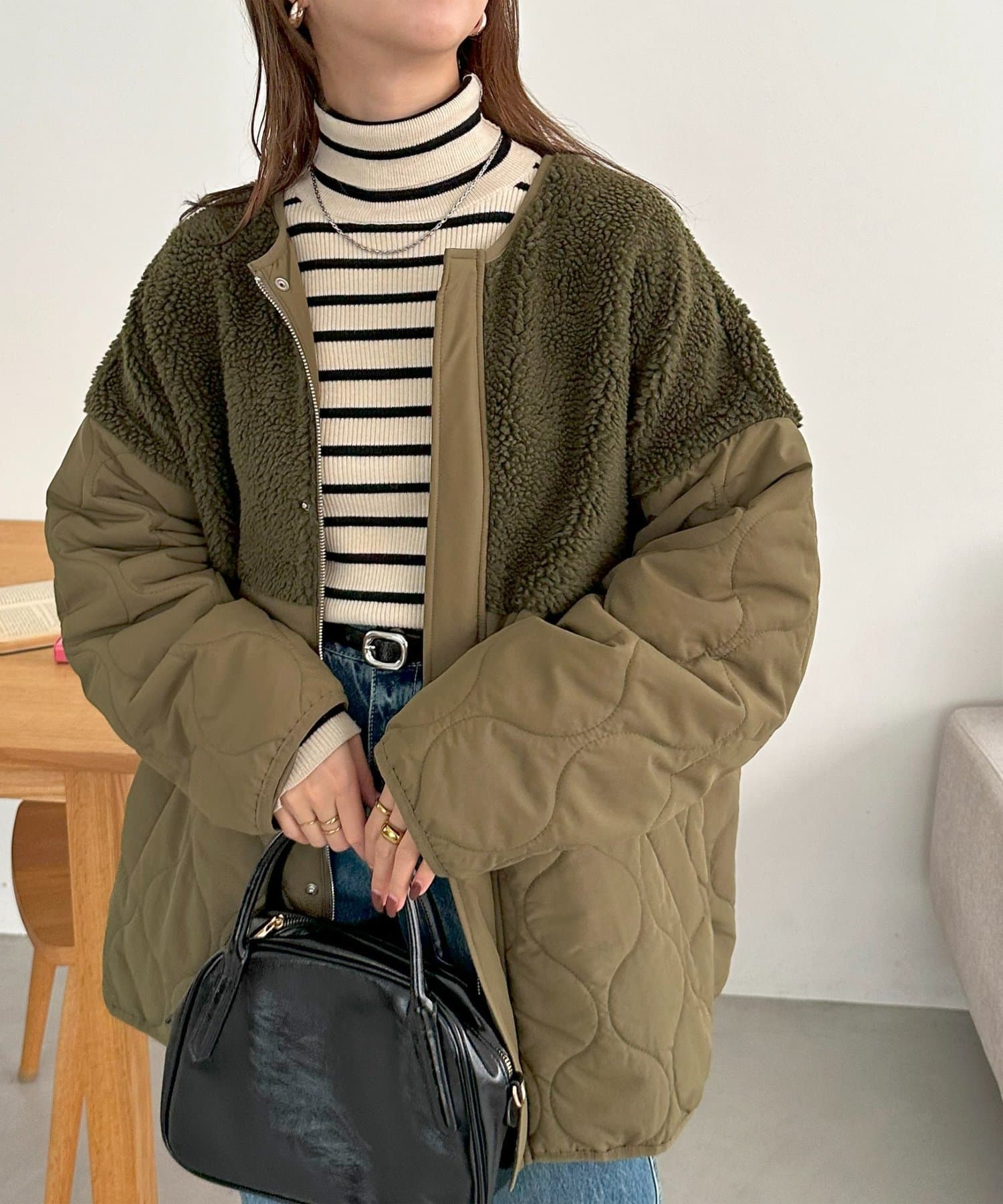 【軽量/大人のこなれ感】ボア切替キルティングコート《WEB限定カラーあり》