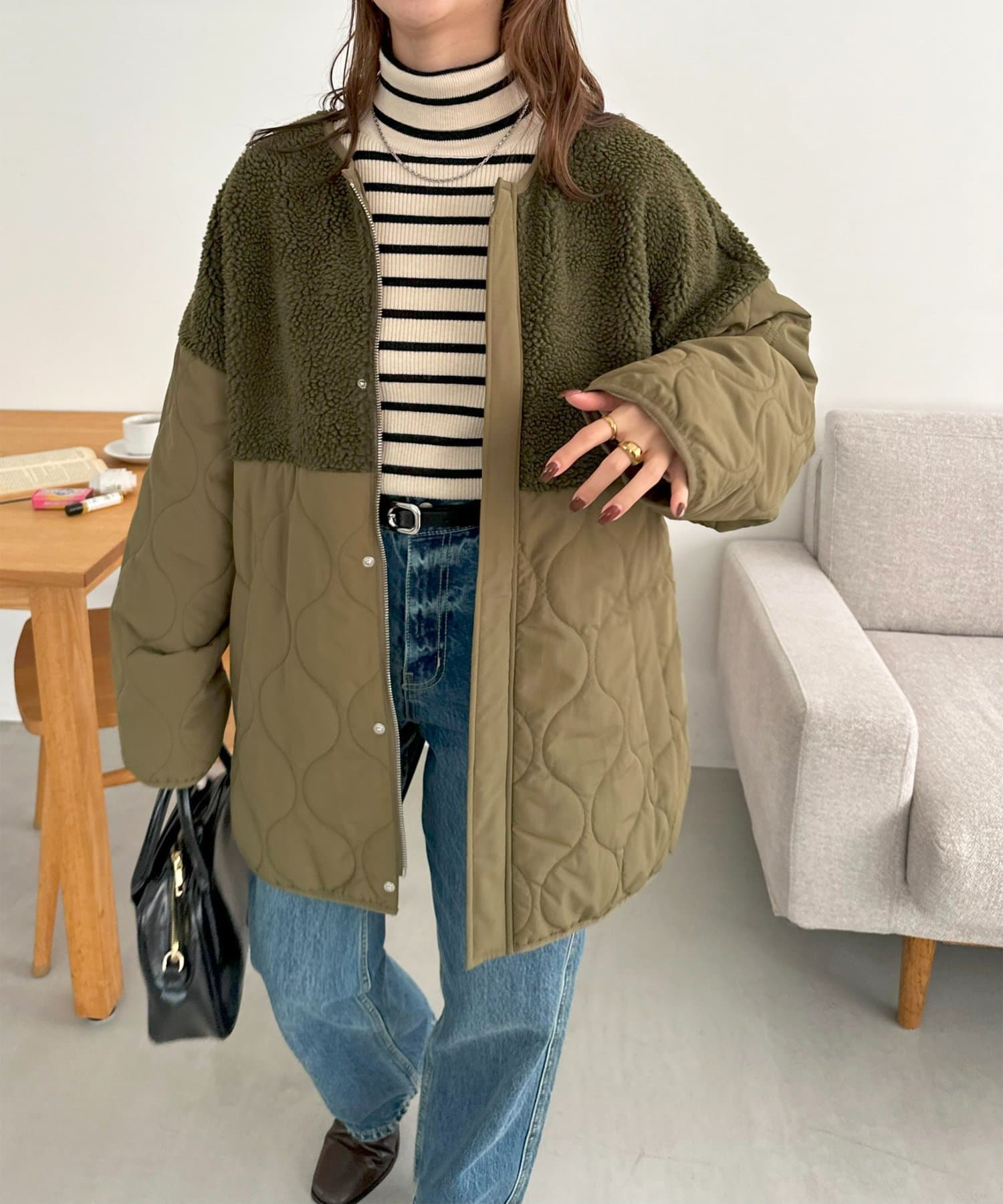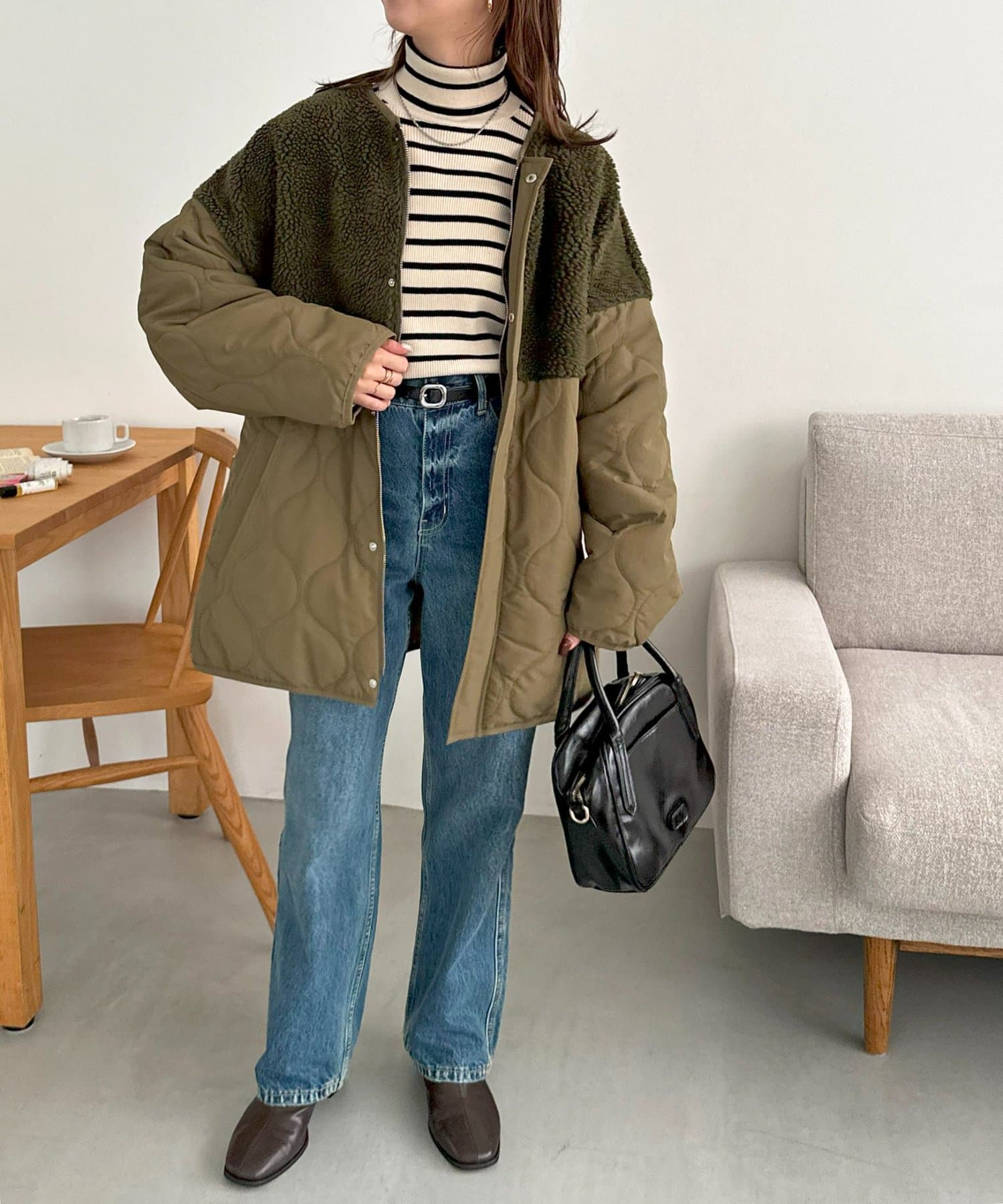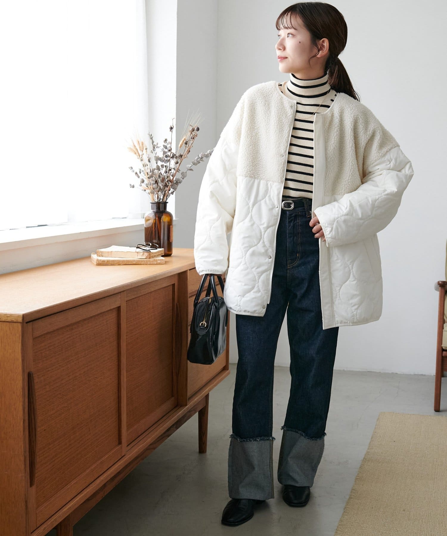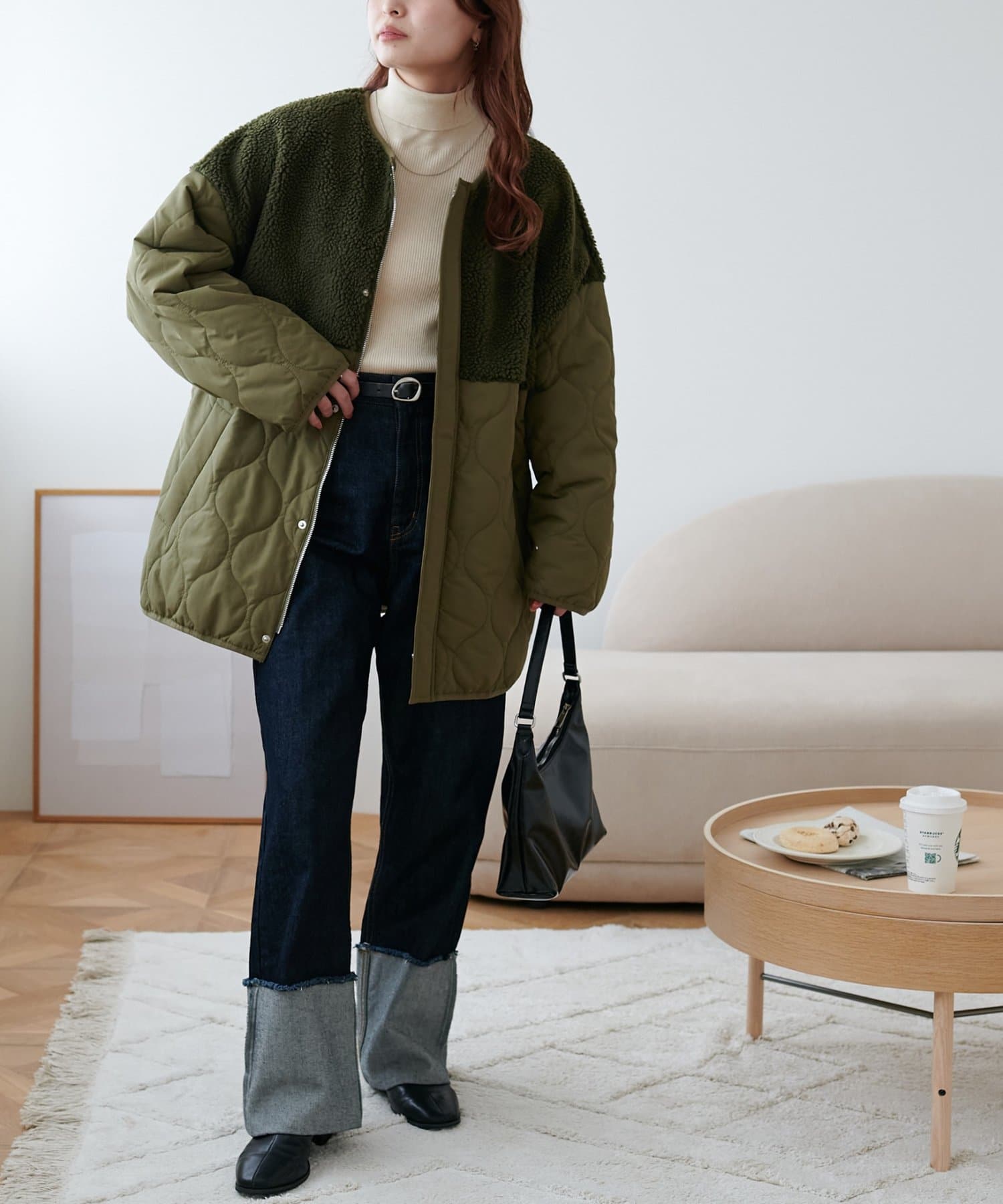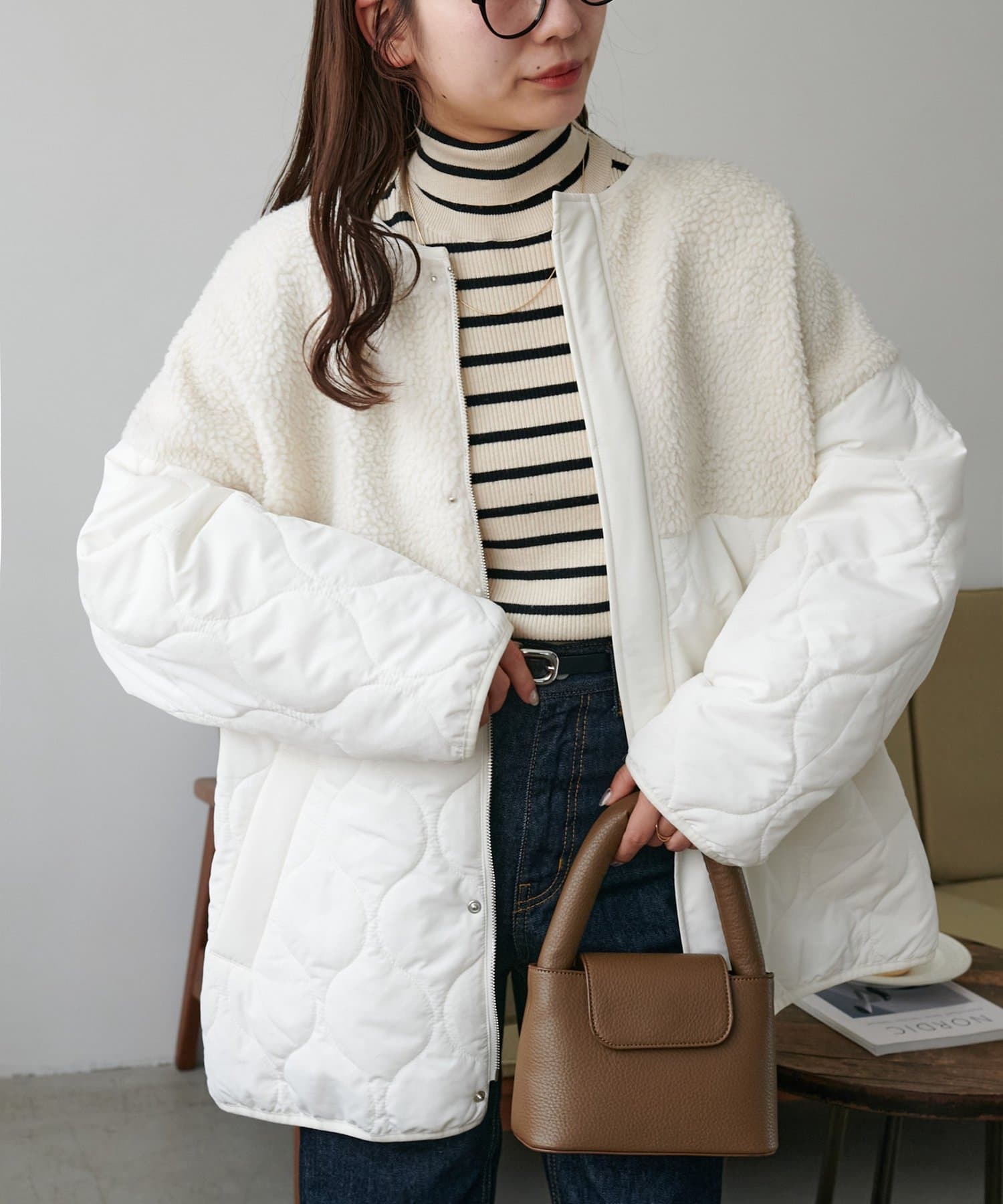 【軽量/大人のこなれ感】ボア切替キルティングコート《WEB限定カラーあり》