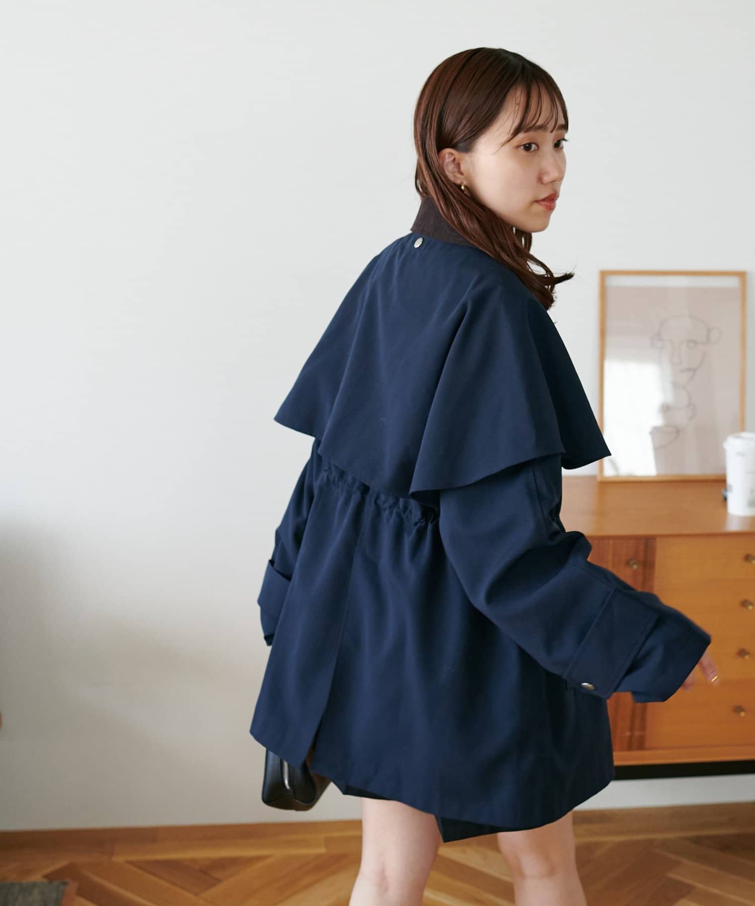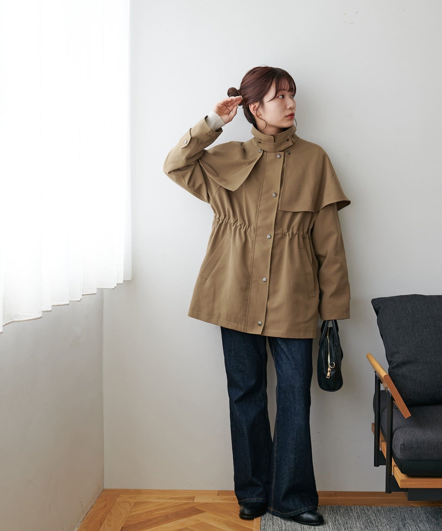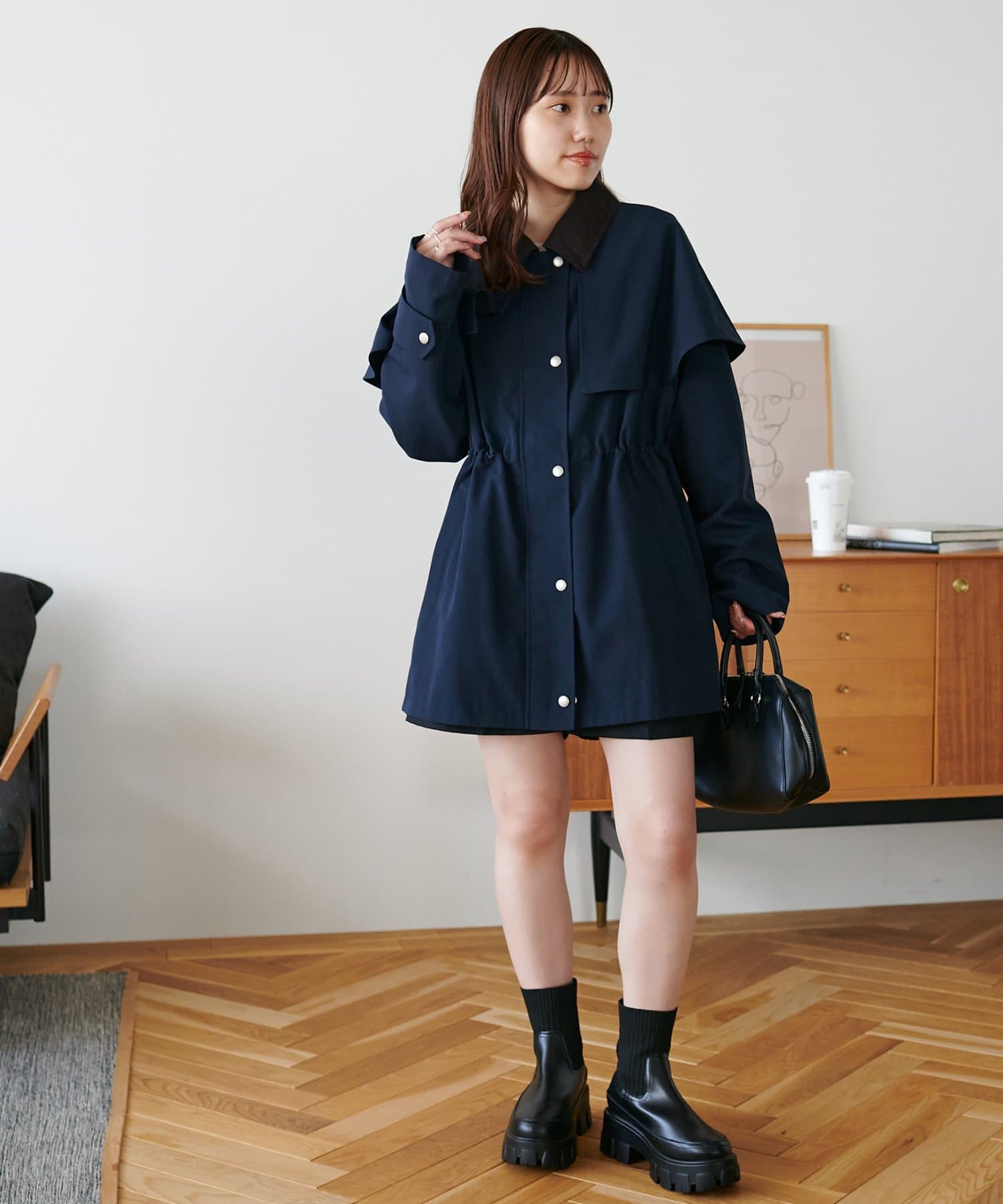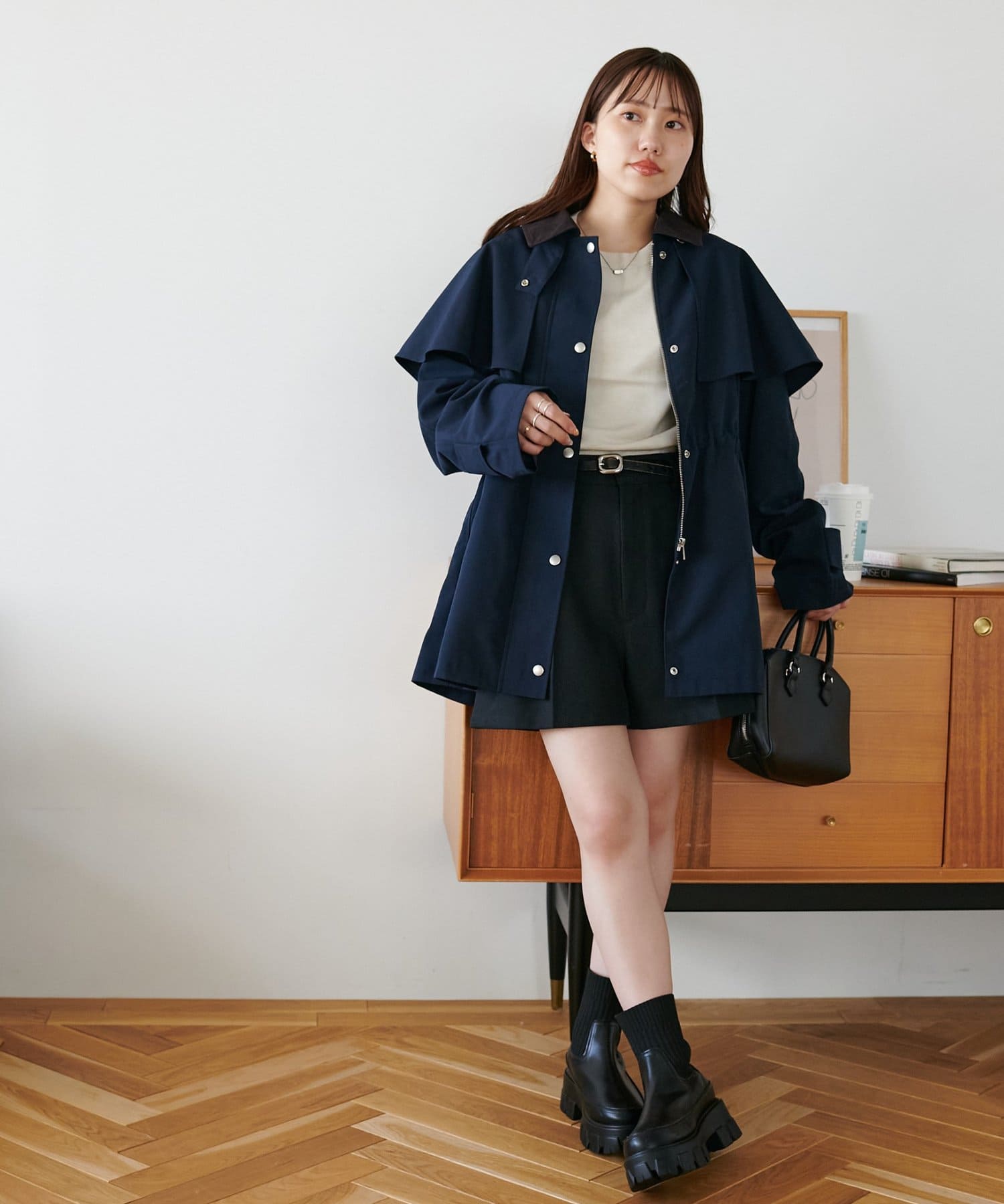 160cmスタッフ:ミドル丈で長すぎないので、バランスが取りやすいです〇ケープ部分はボタンを外すだけで取れるので、手間がいらずストレスフリーです!