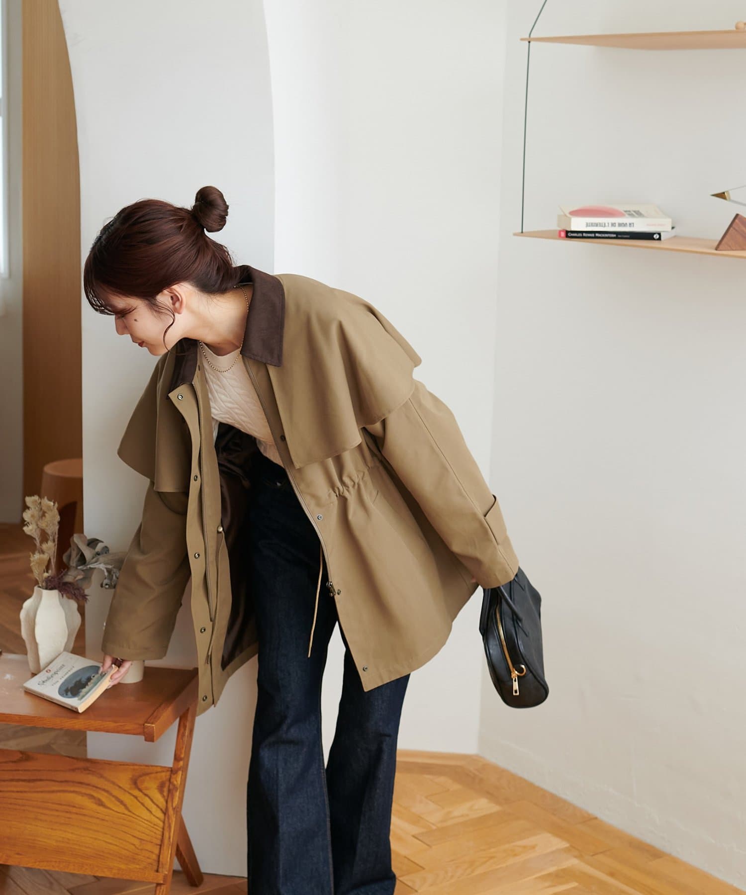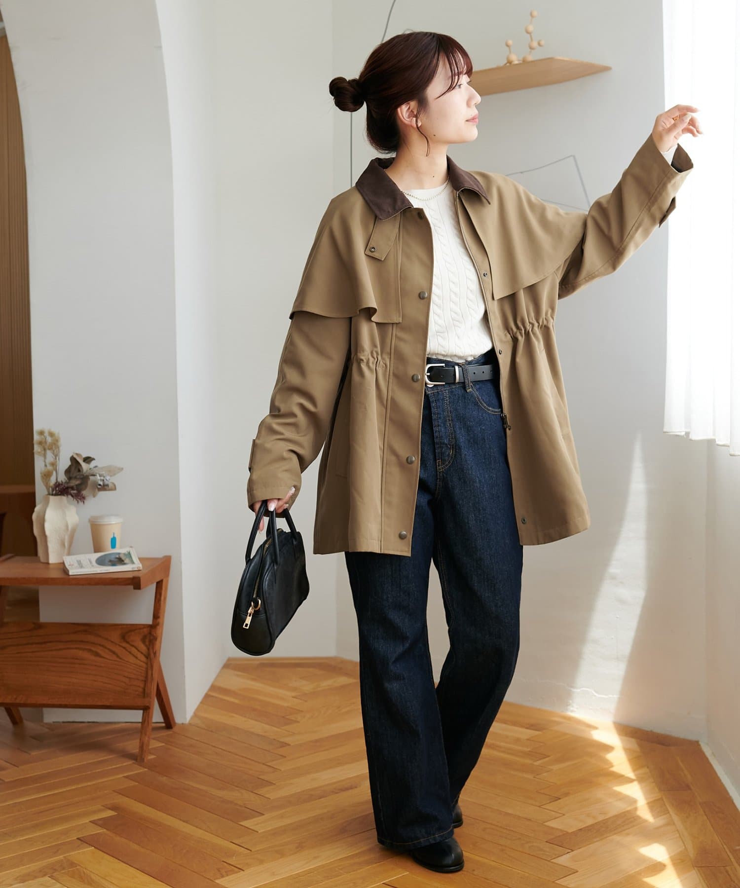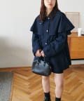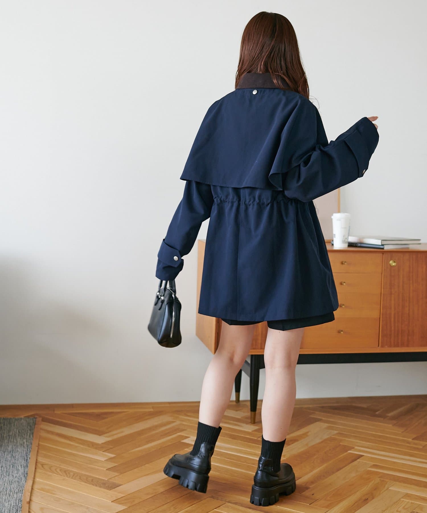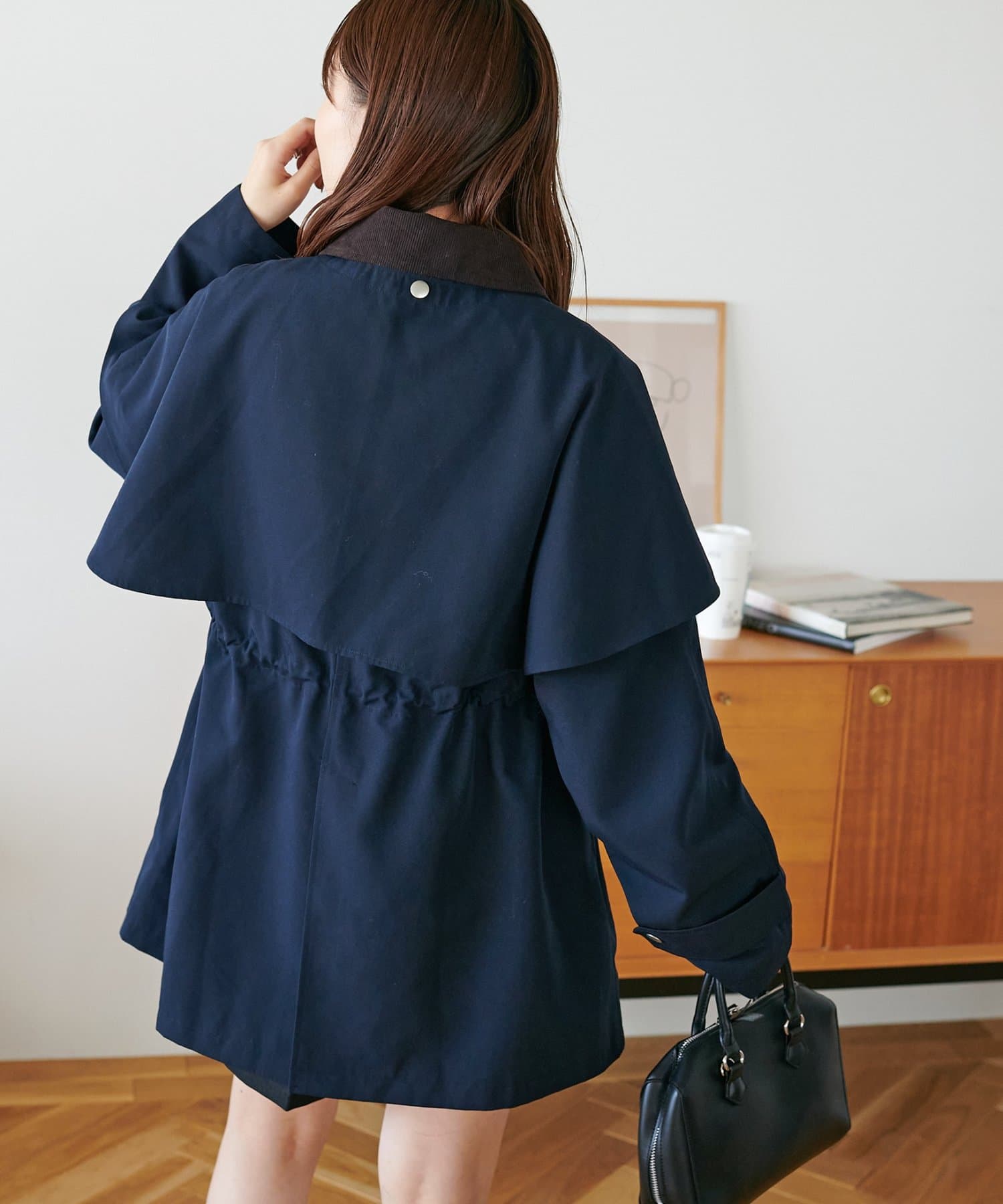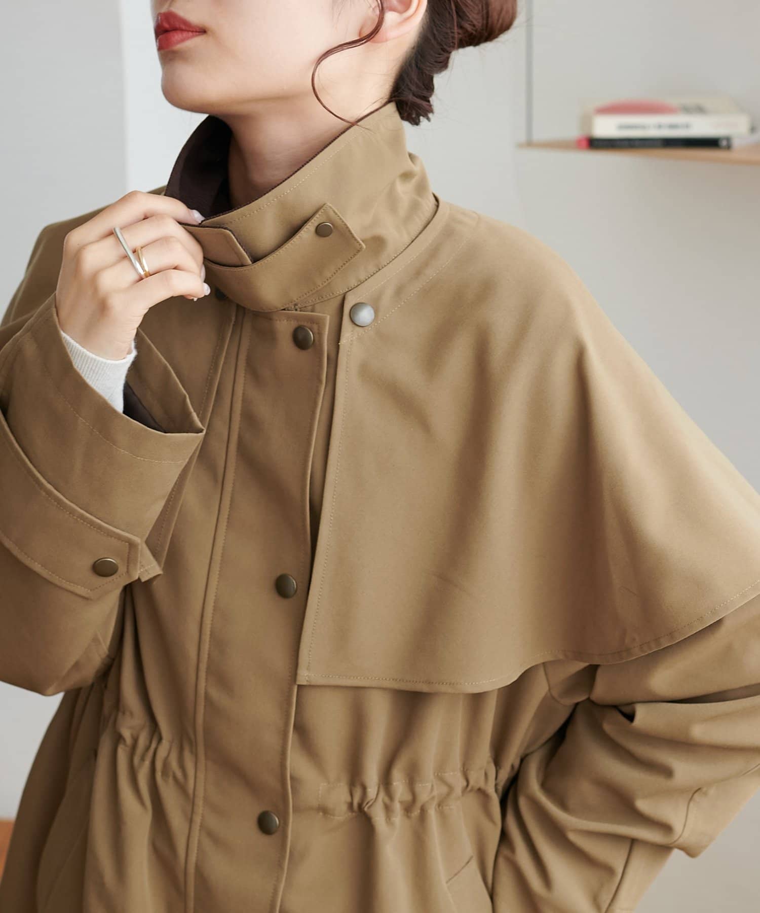 160cmスタッフ:ミドル丈で長すぎないので、バランスが取りやすいです〇ケープ部分はボタンを外すだけで取れるので、手間がいらずストレスフリーです!