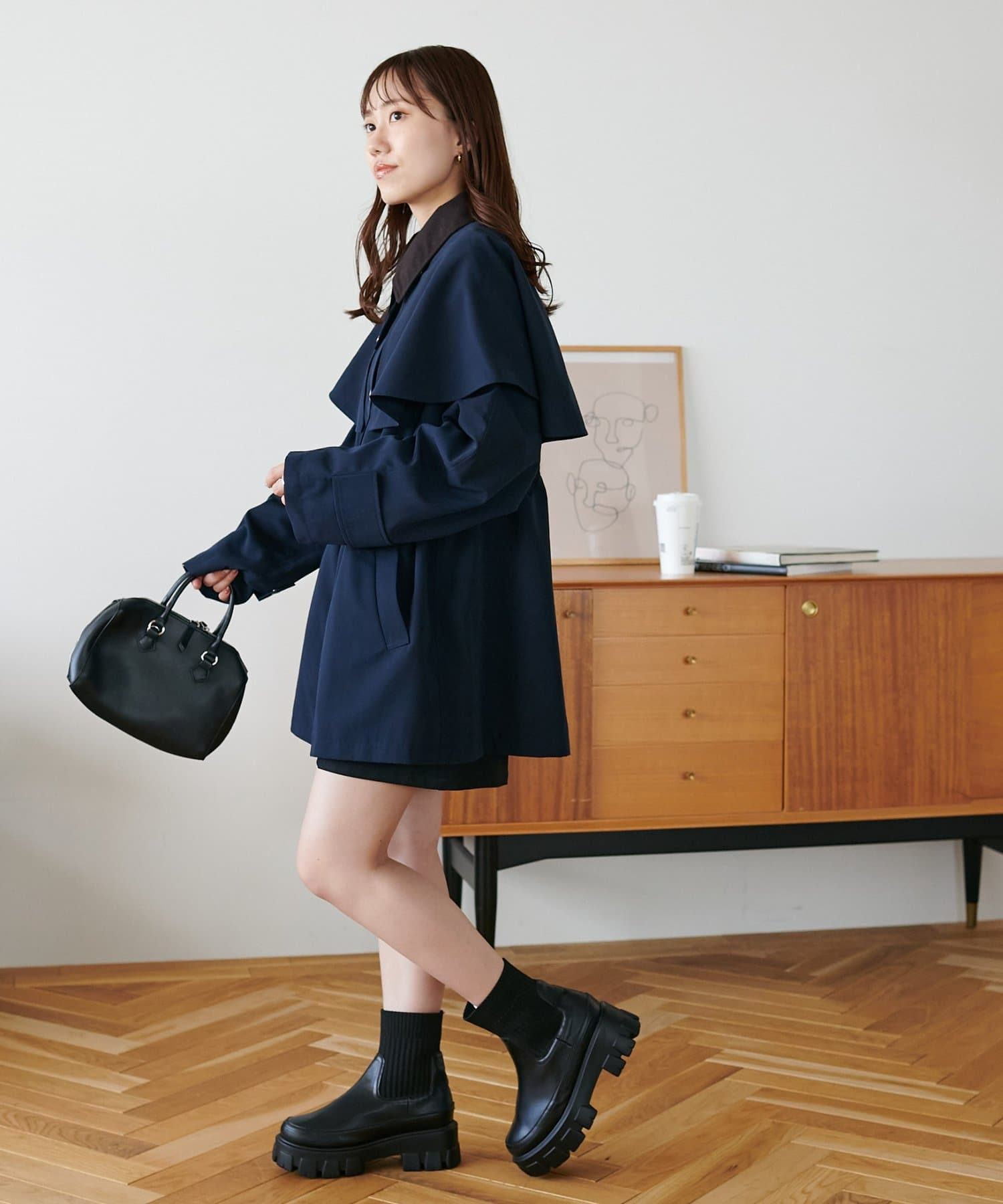 たっぷりとしたフレアが印象的なケープは取り外し可能で、コーデのポイントになるケープコートとシンプルなミドルコートをその日の気分に合わせて楽しめます♪