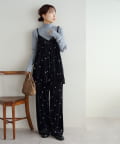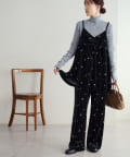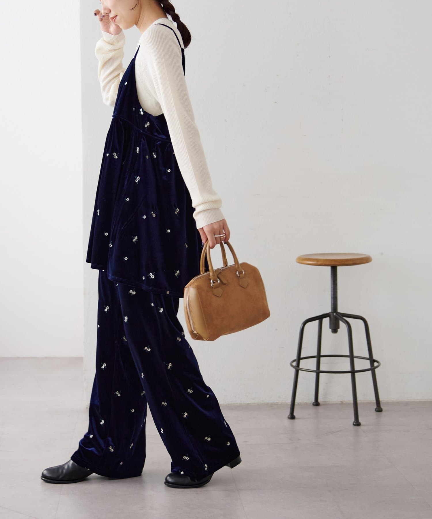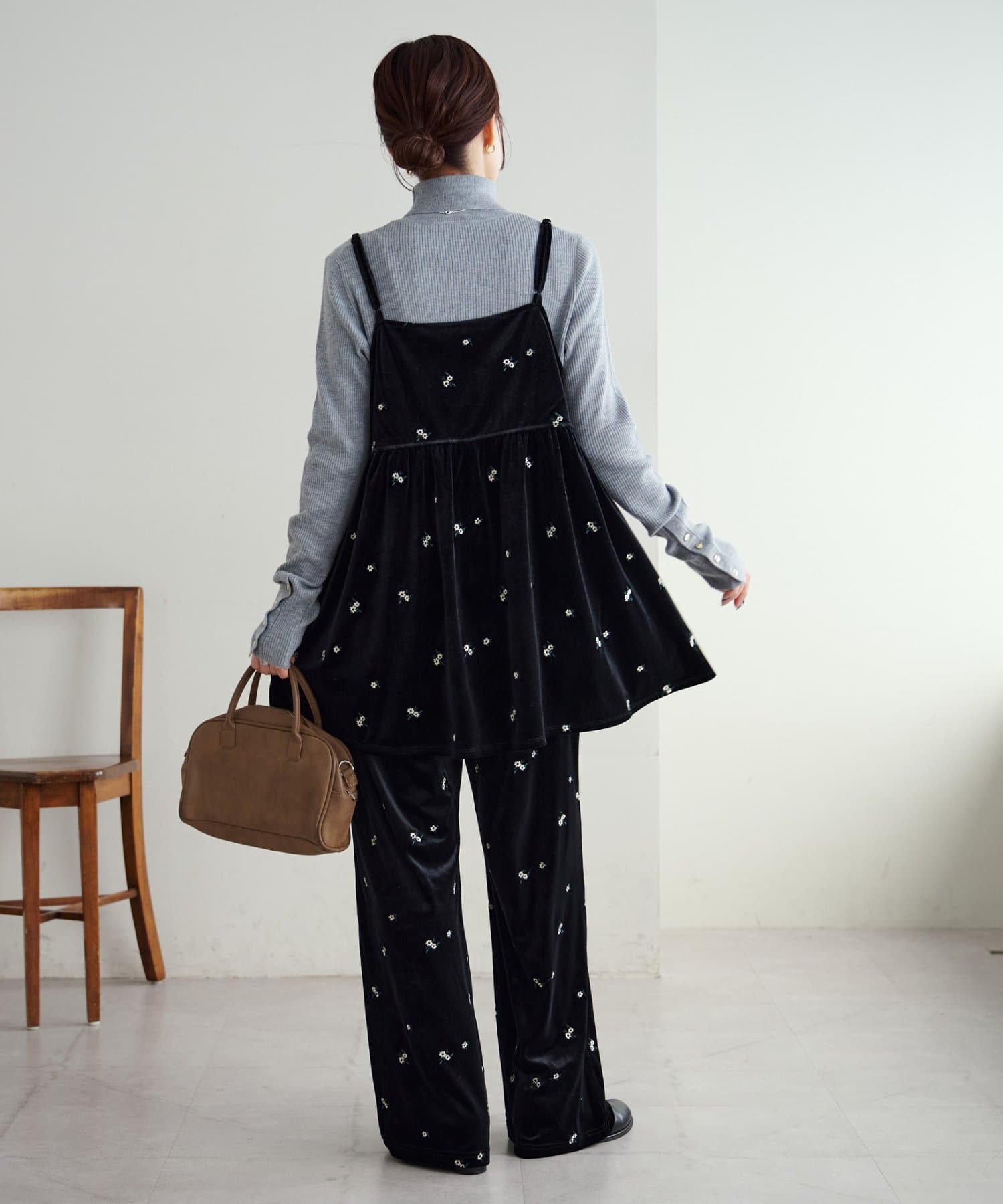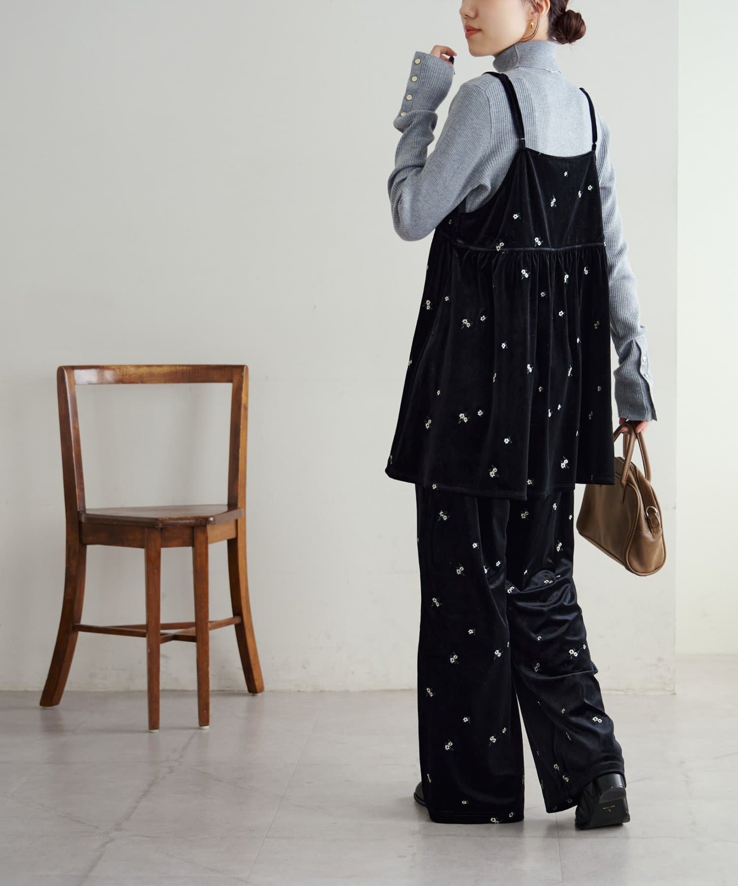 同素材のチュニック【ベロア刺繍カシュクールキャミチュニック】を合わせるとセットアップ風にも着ていただけます。
