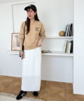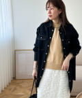 155cmスタッフ:お尻にかかるくらいの丈感で、インをしなくてもバランスよく着こなせます。存在感のあるバックサガラ刺繍がコーデのポイントに◎