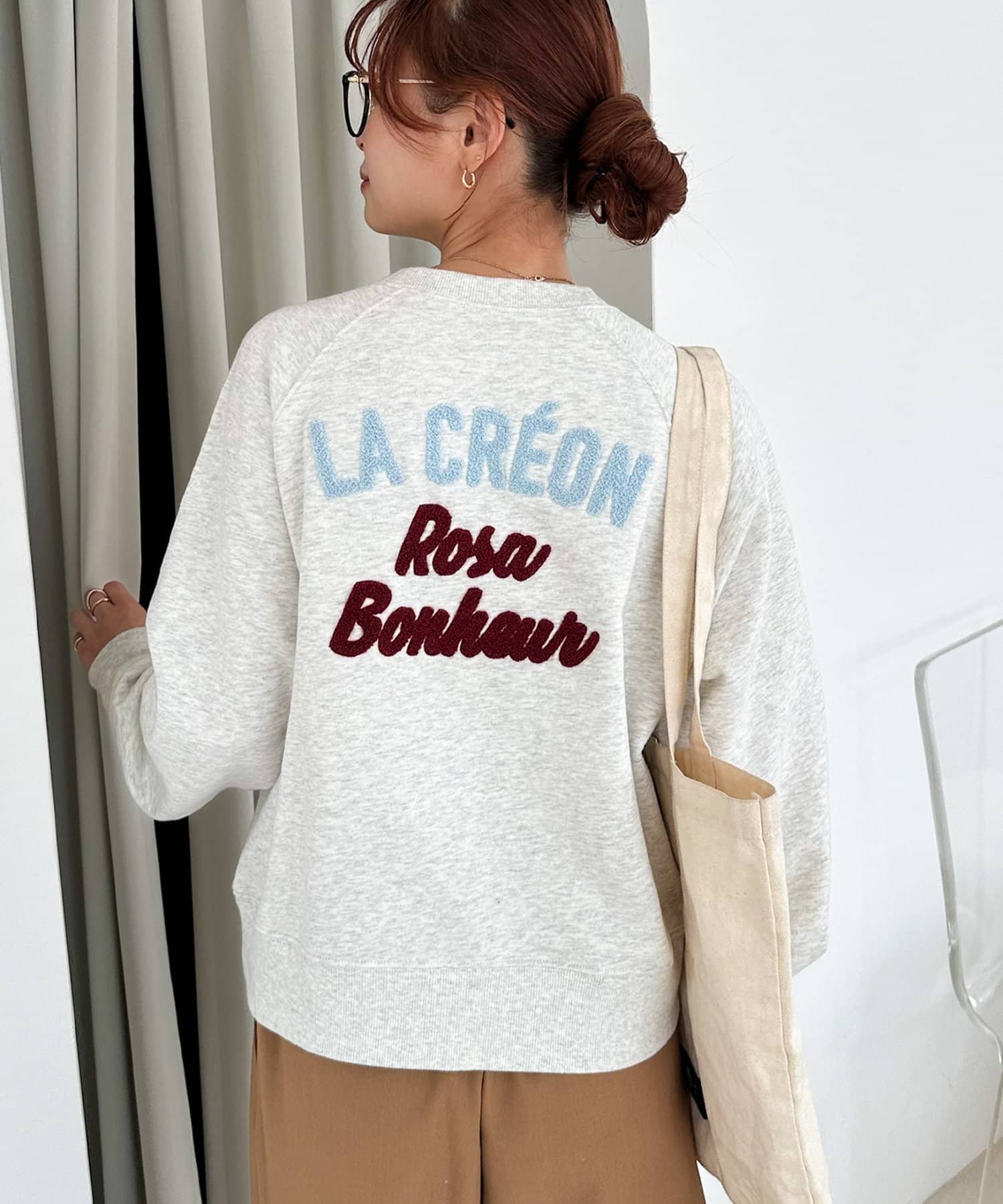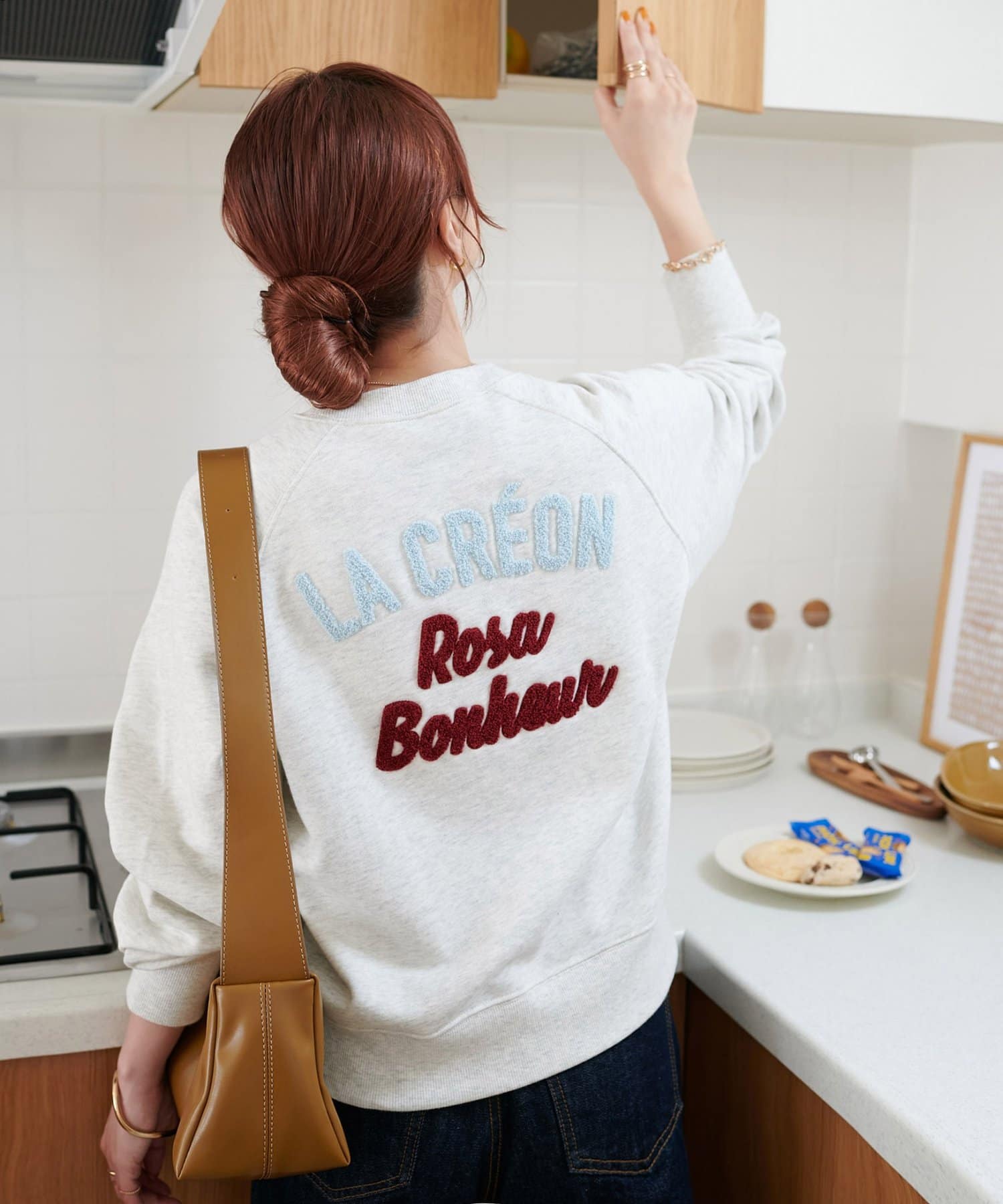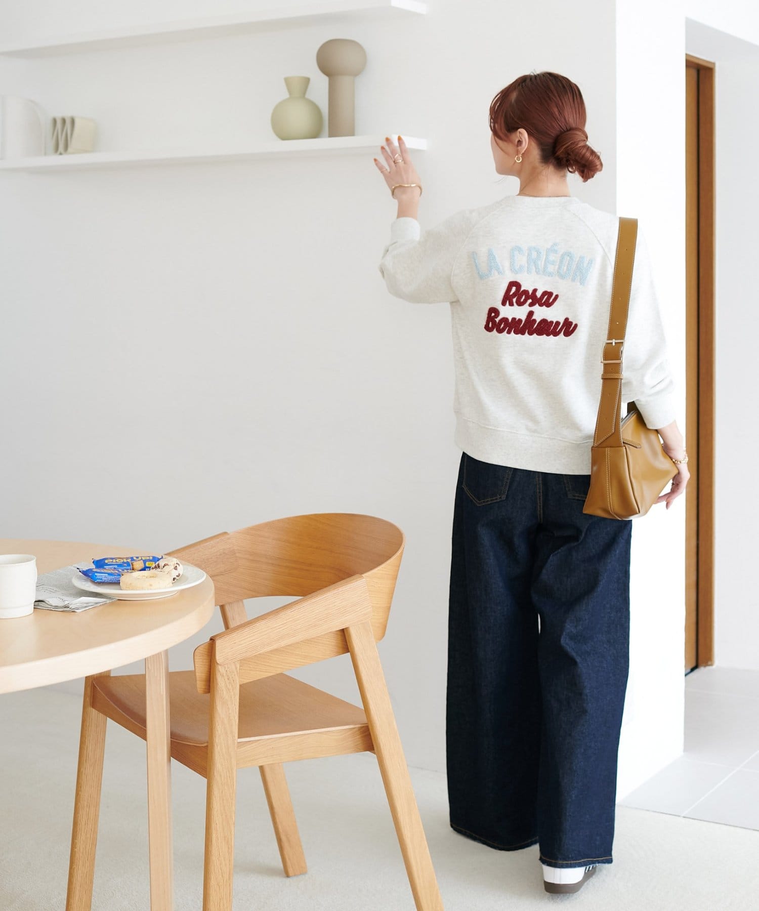 バックに施されたサガラ刺繍が目を惹くスウェット。