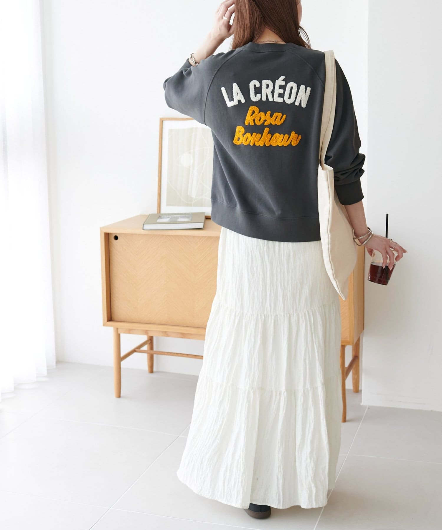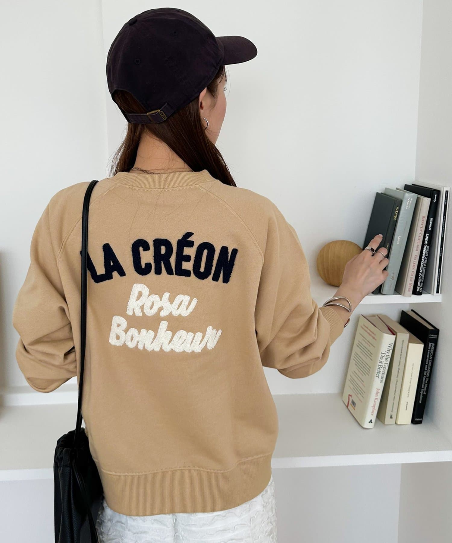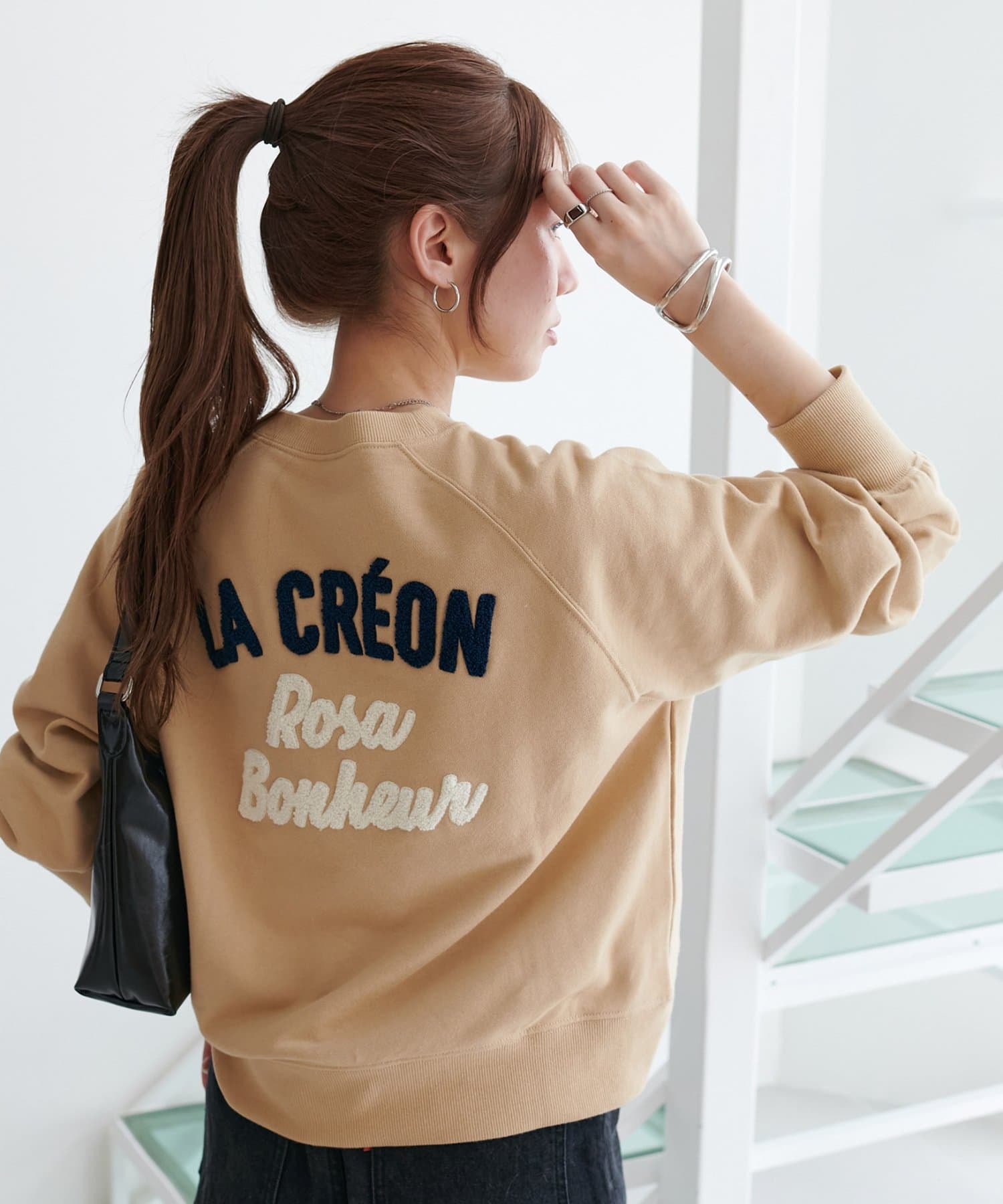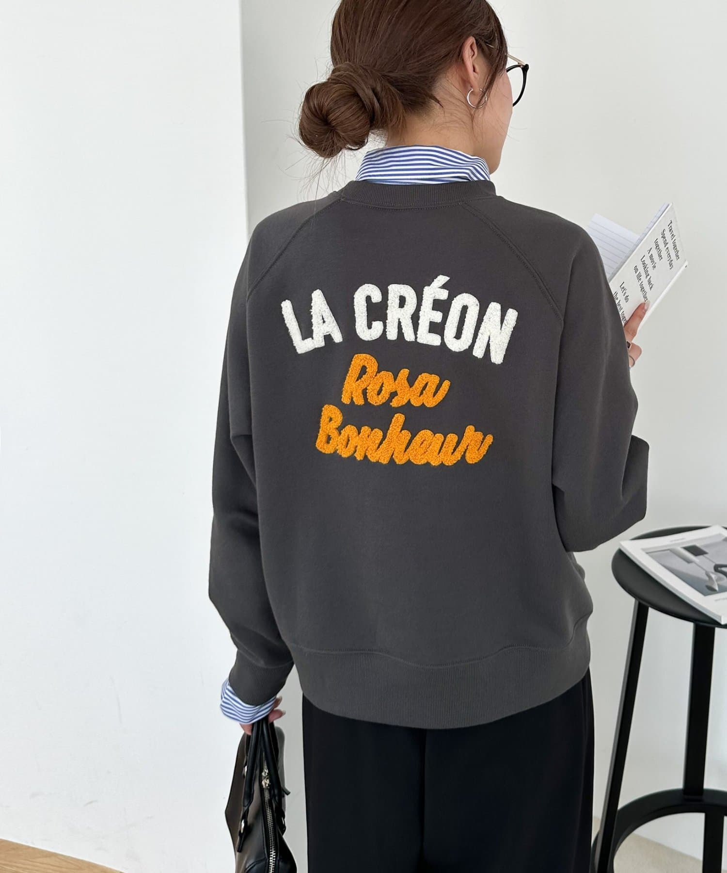 バックに施されたサガラ刺繍が目を惹くスウェット。