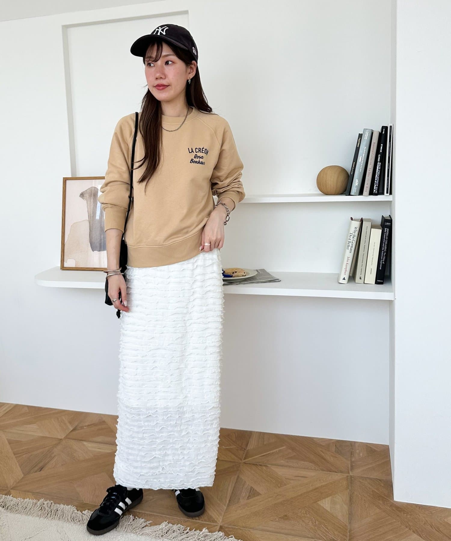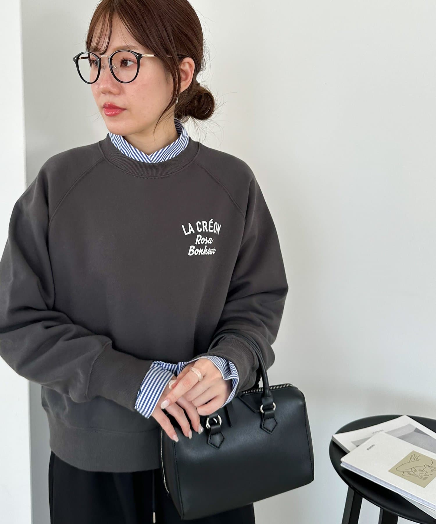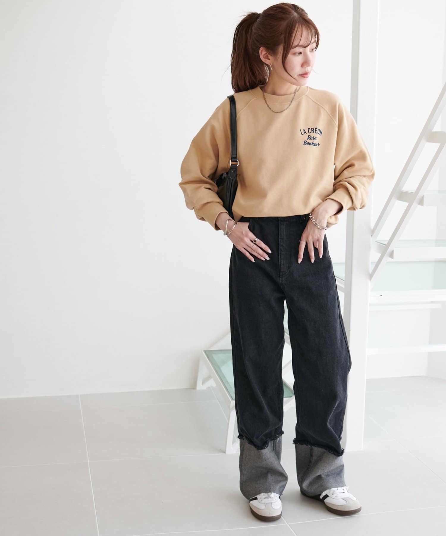 162cmスタッフ:コンパクトな着丈なので、スウェットですがカジュアルすぎずに女性らしい雰囲気で着ることができます◎