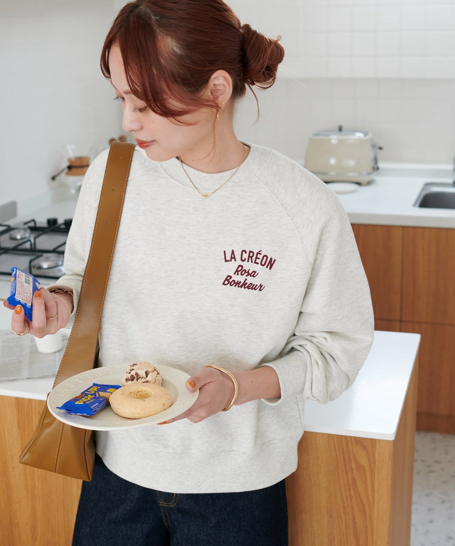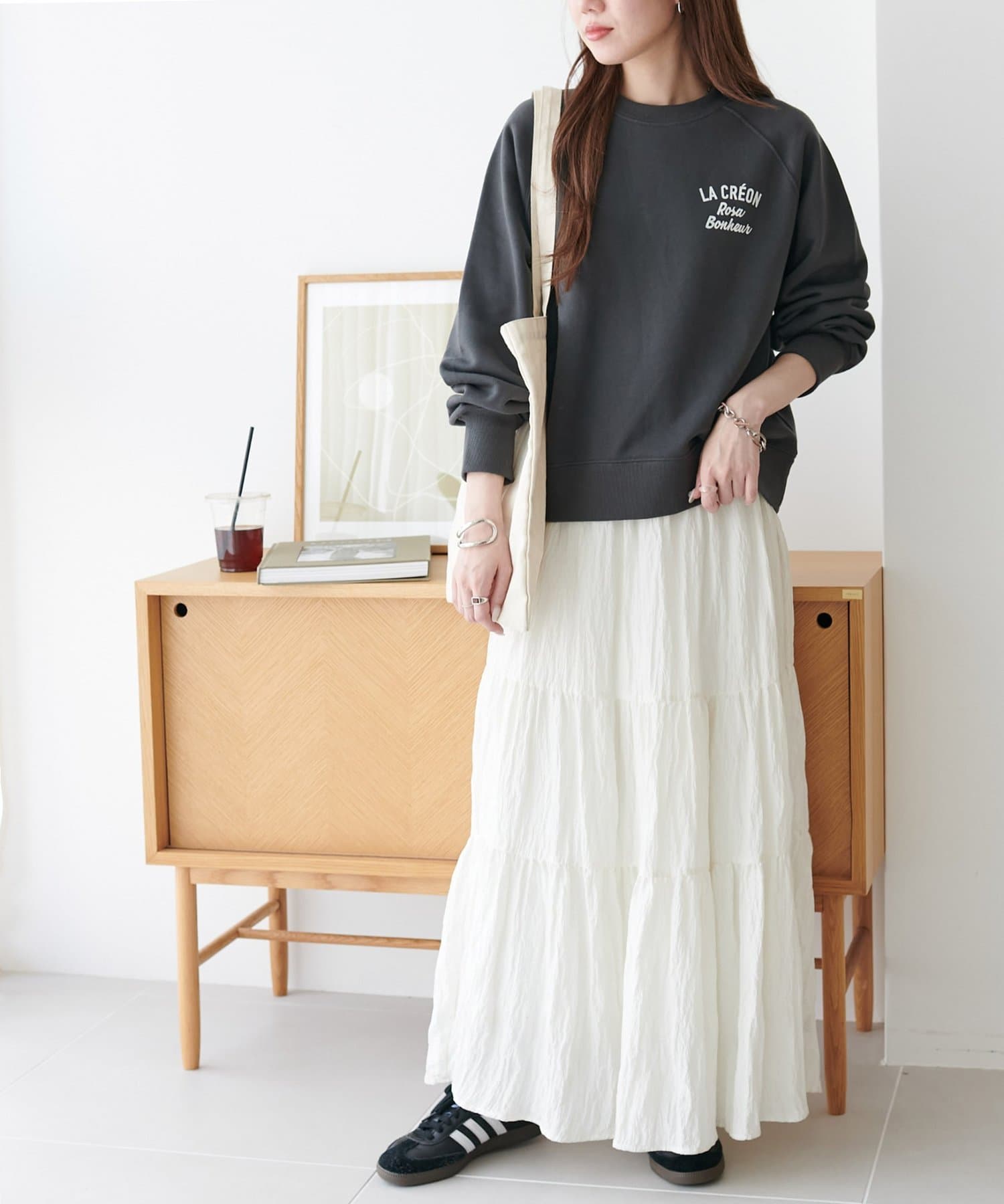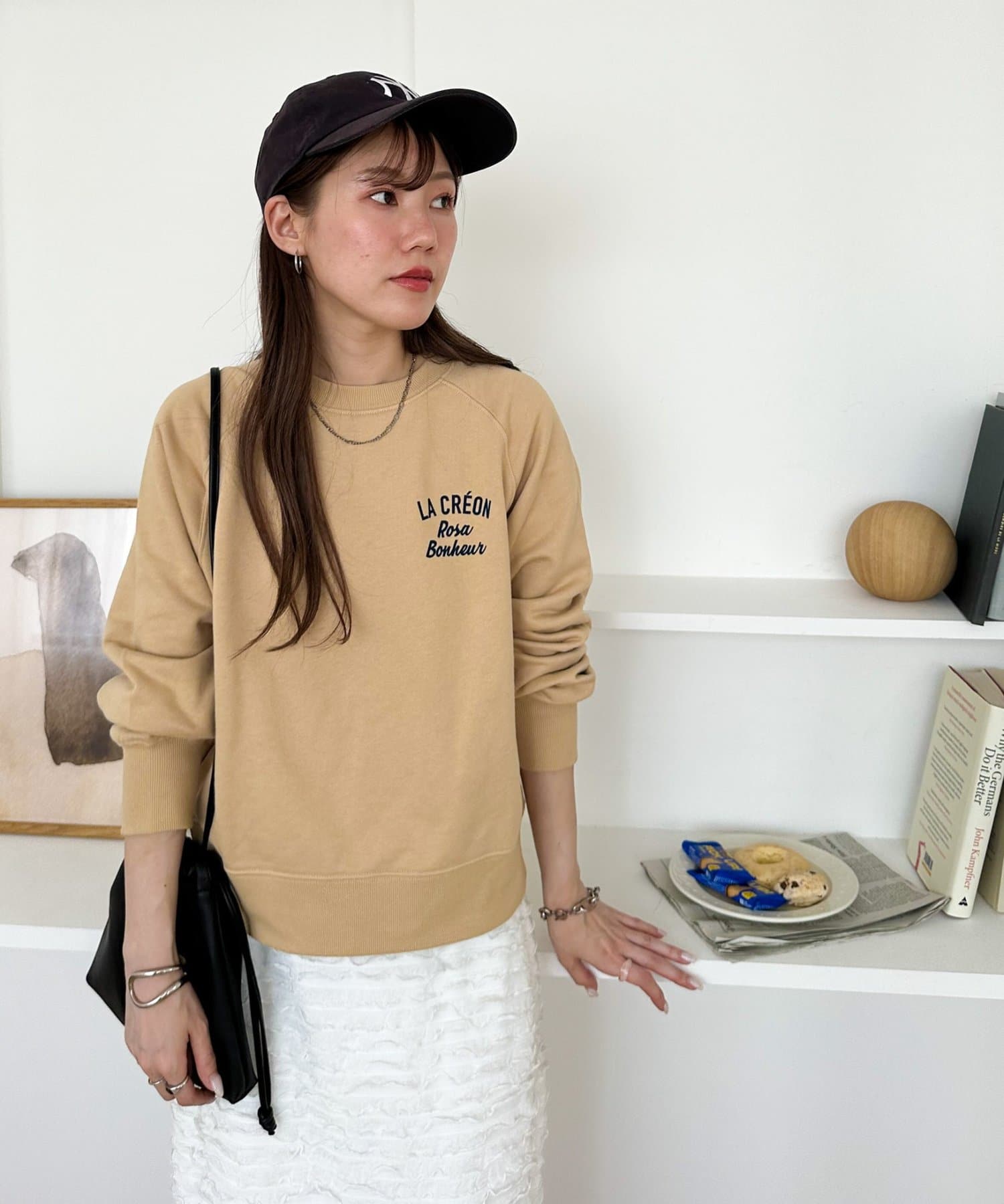 162cmスタッフ:コンパクトな着丈なので、スウェットですがカジュアルすぎずに女性らしい雰囲気で着ることができます◎