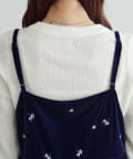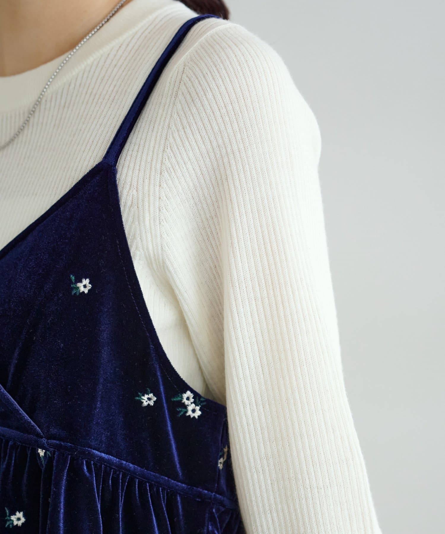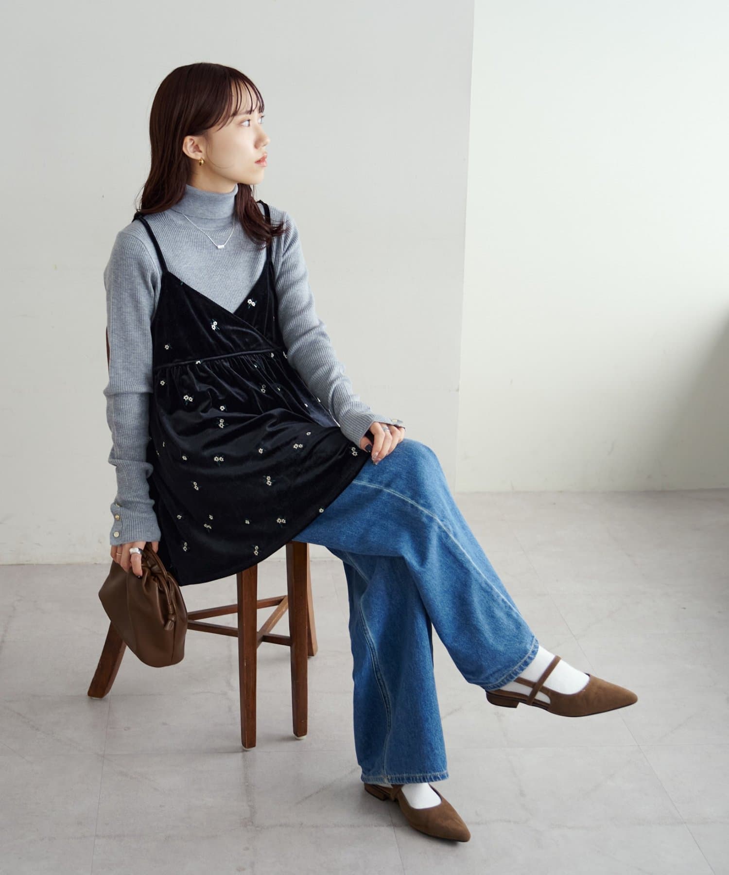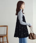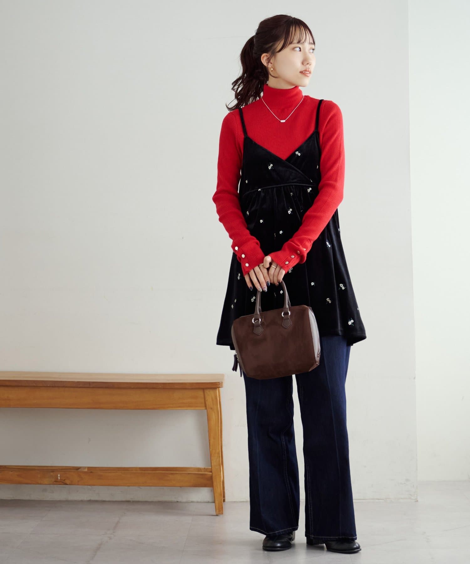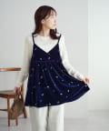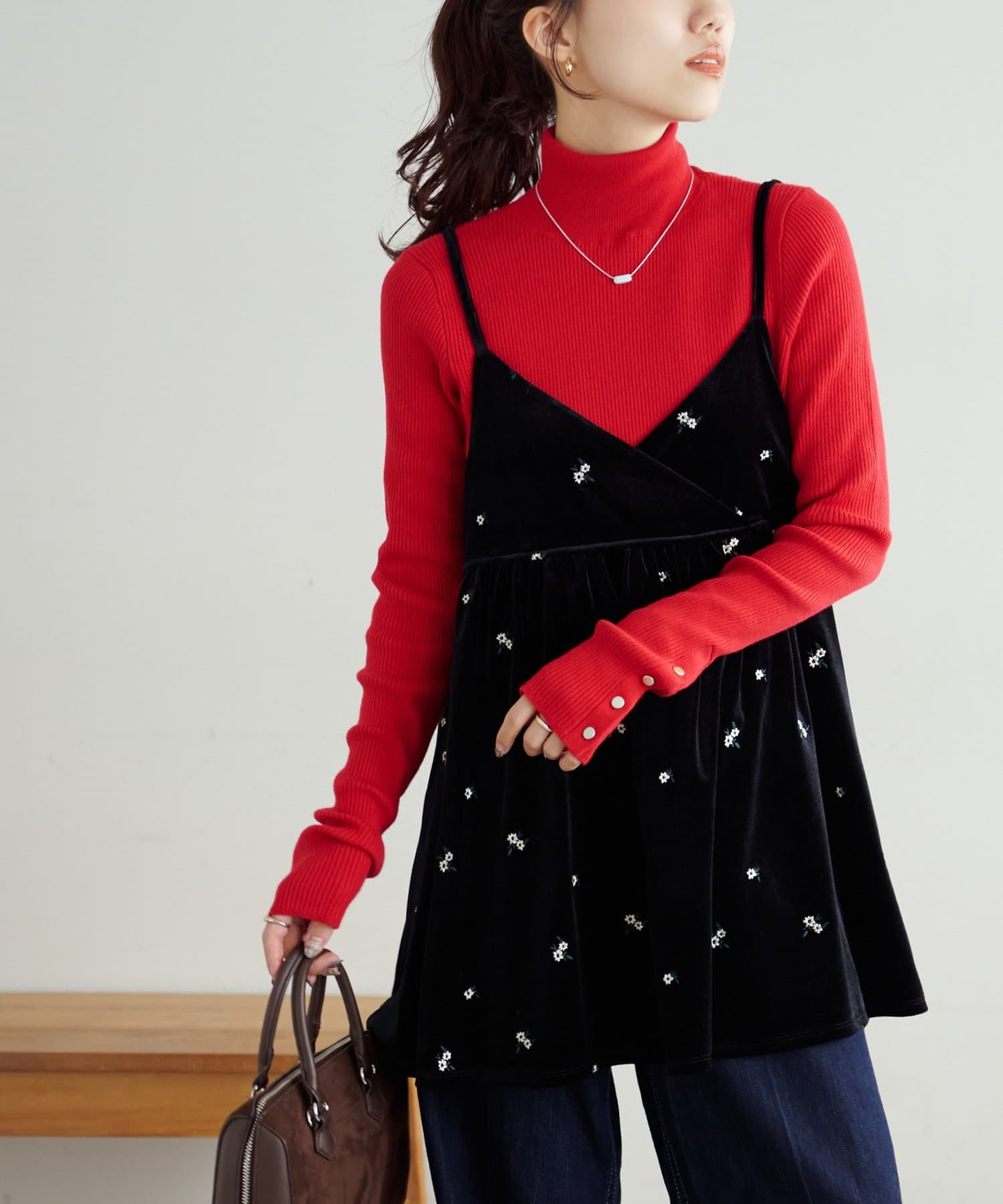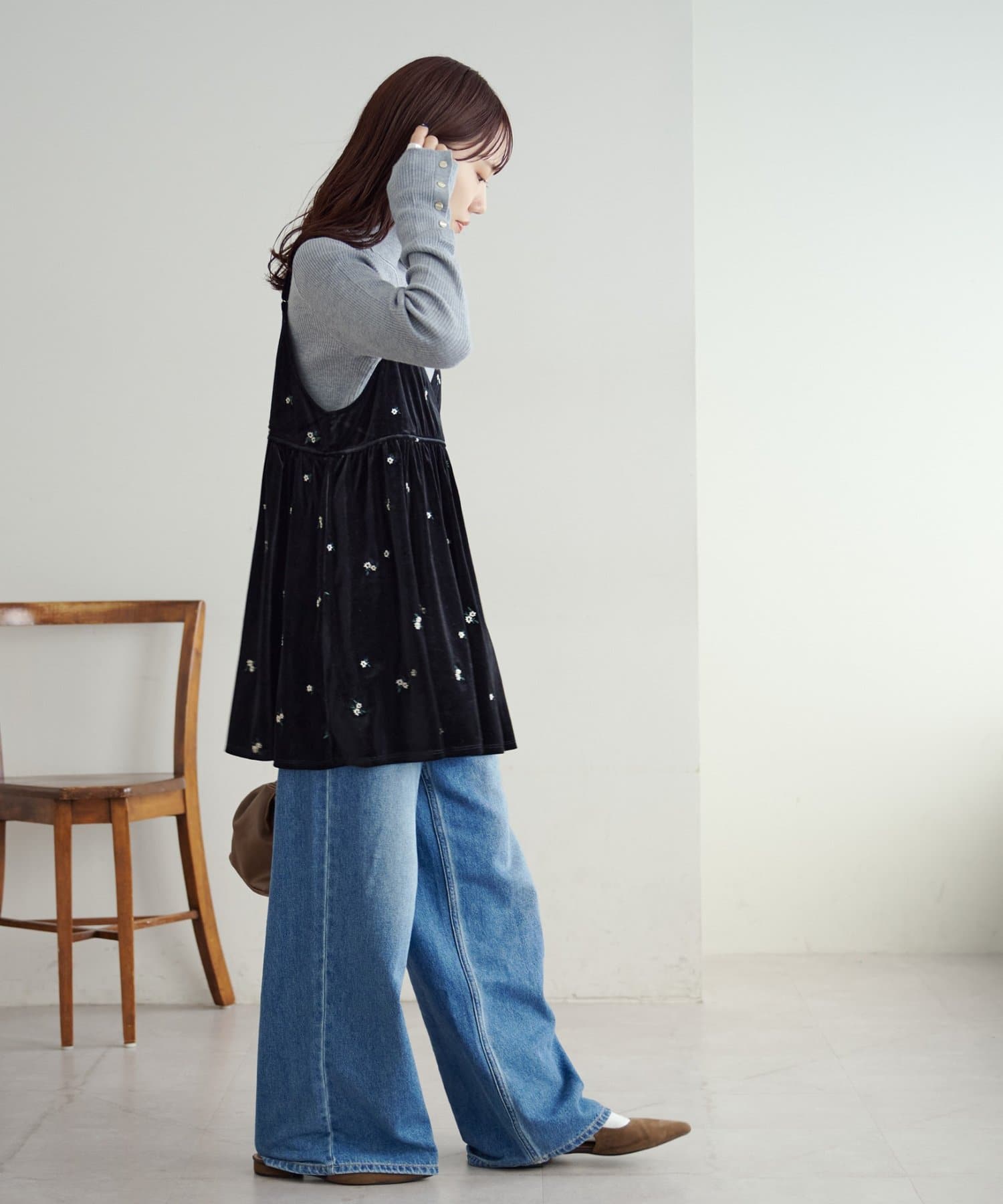 花柄とベロアの素材がポイントになるチュニックなので、インナーはシンプルなTシャツやリブニット合わせがおすすめ◎