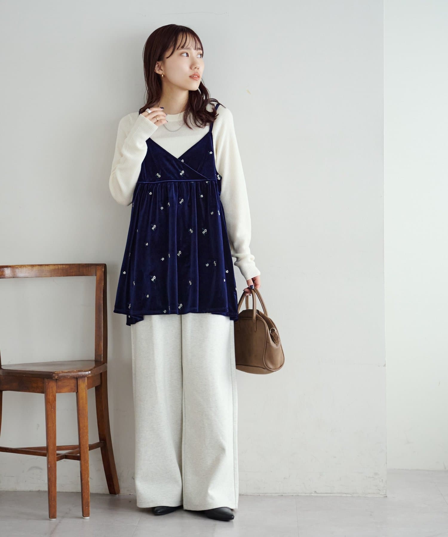 同素材のベロア刺繍イージーパンツと合わせるとセットアップで楽しめます。
