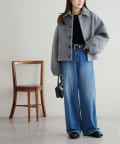 ショート丈なので、ワイドパンツやボリュームスカート、ワンピースなどを合わせるとメリハリ感がアップします◎