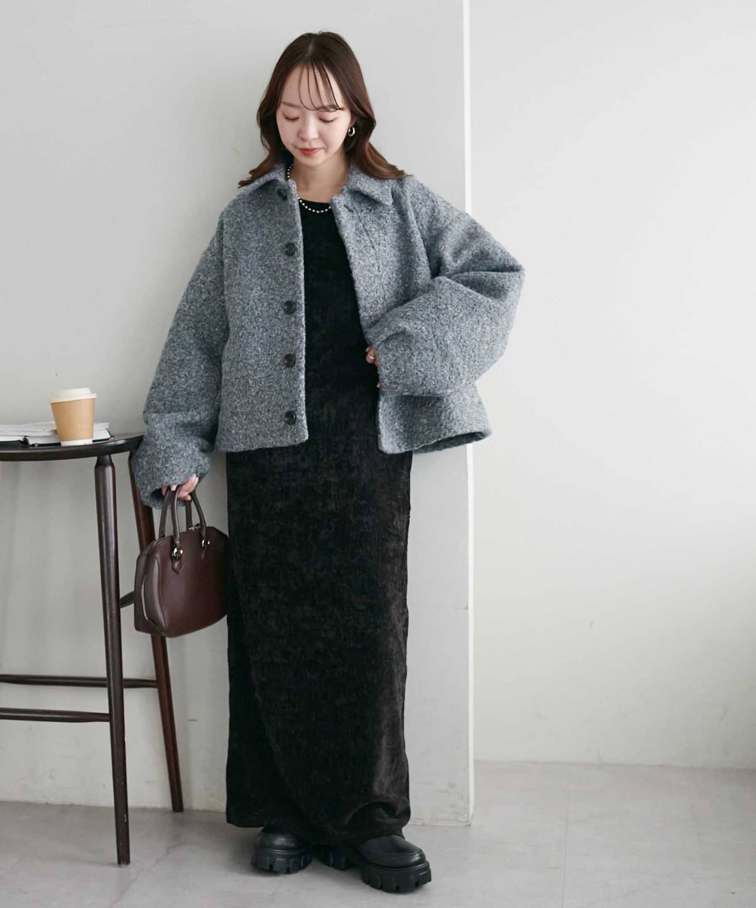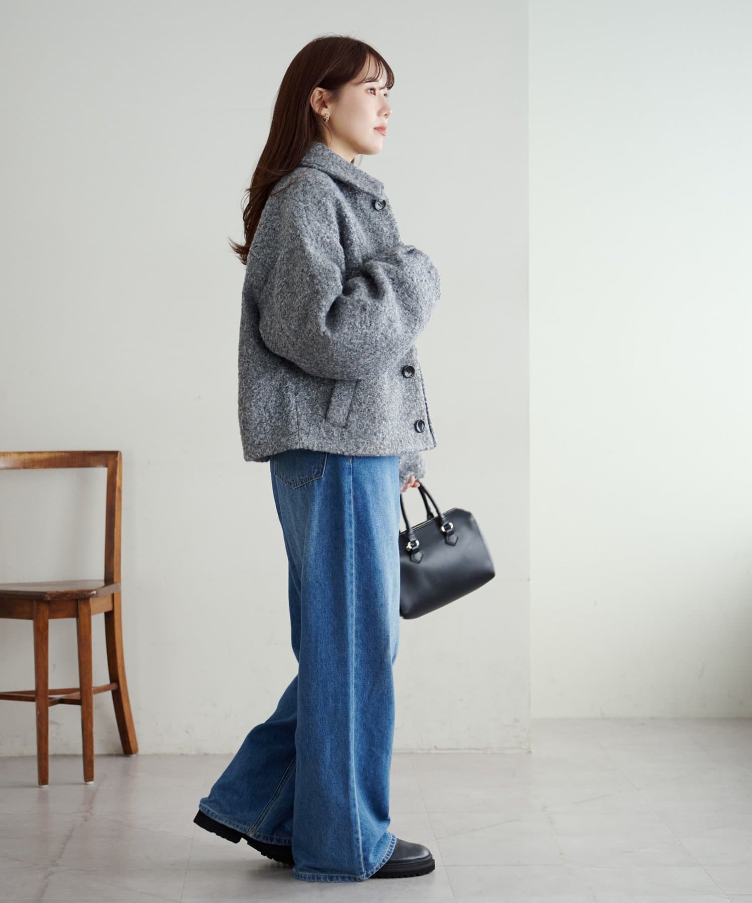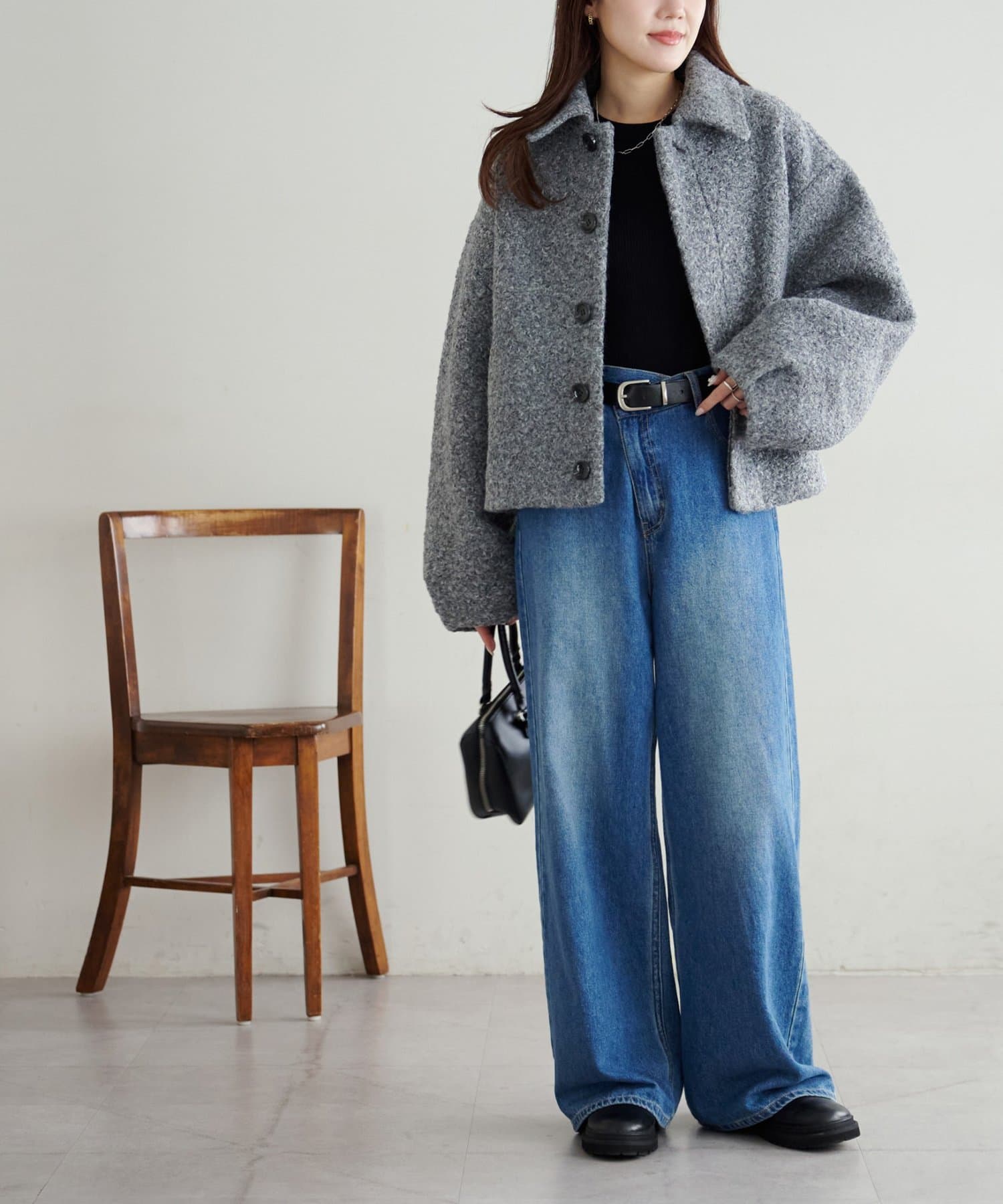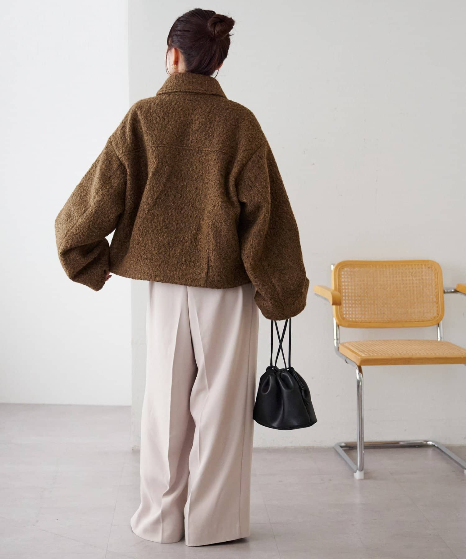 一色だけのブークレではなく、何色かが混ざっていることで、より表面感がありコーデの主役にもなるアウターです。