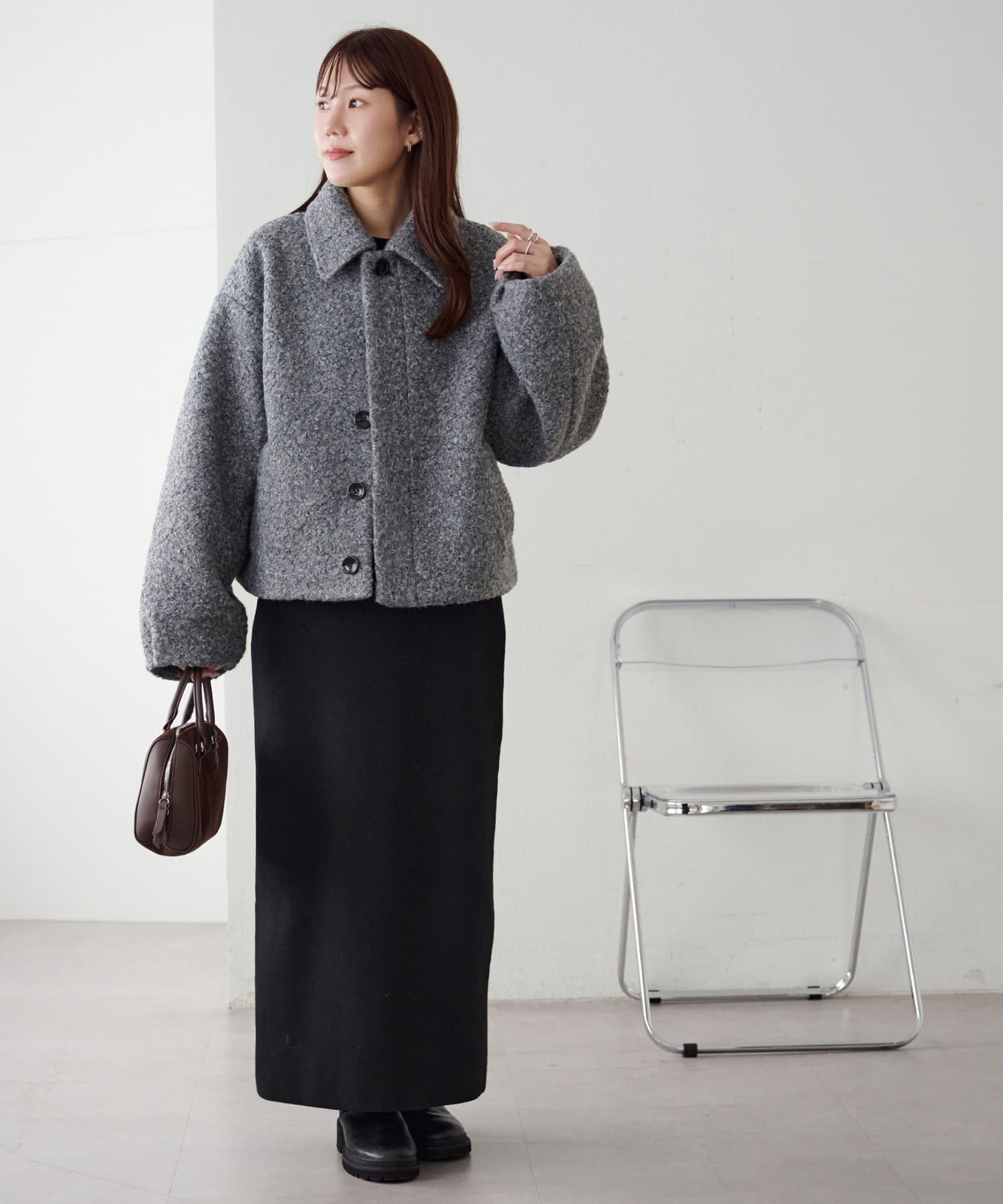149cmスタッフ:丸みのあるシルエットにコンパクトな着丈がかわいい!低身長でもバランスが取りやすいのもうれしいです。