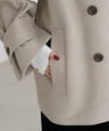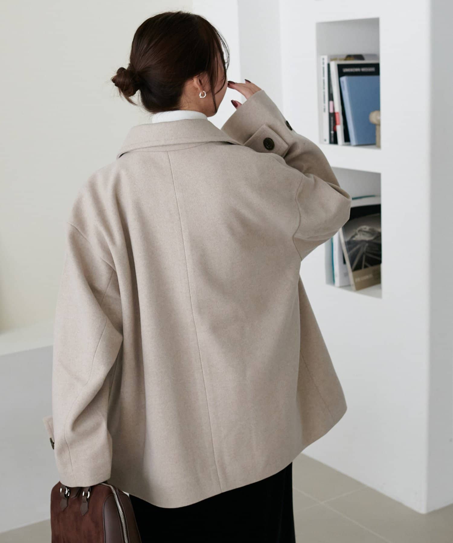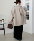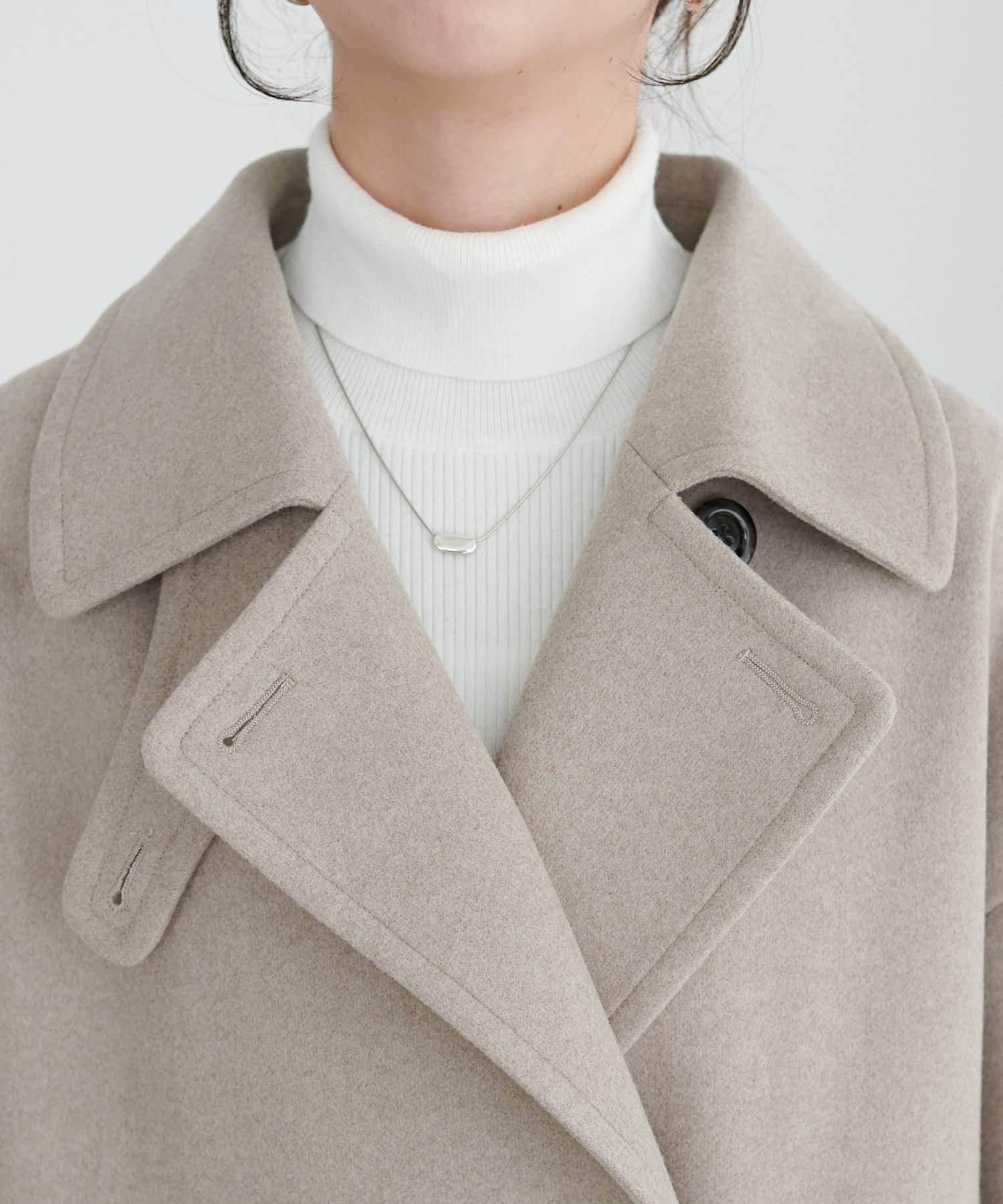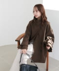スッキリとした襟元で着用もできますが、スタンドカラーとしてもお使いいただけるので暖かく着ていただけます〇