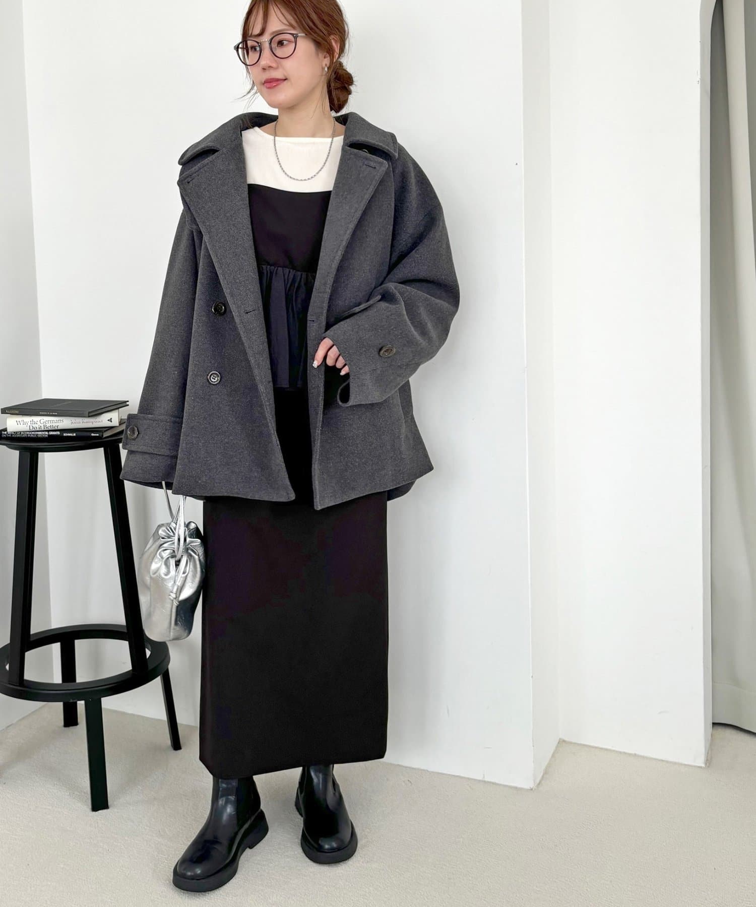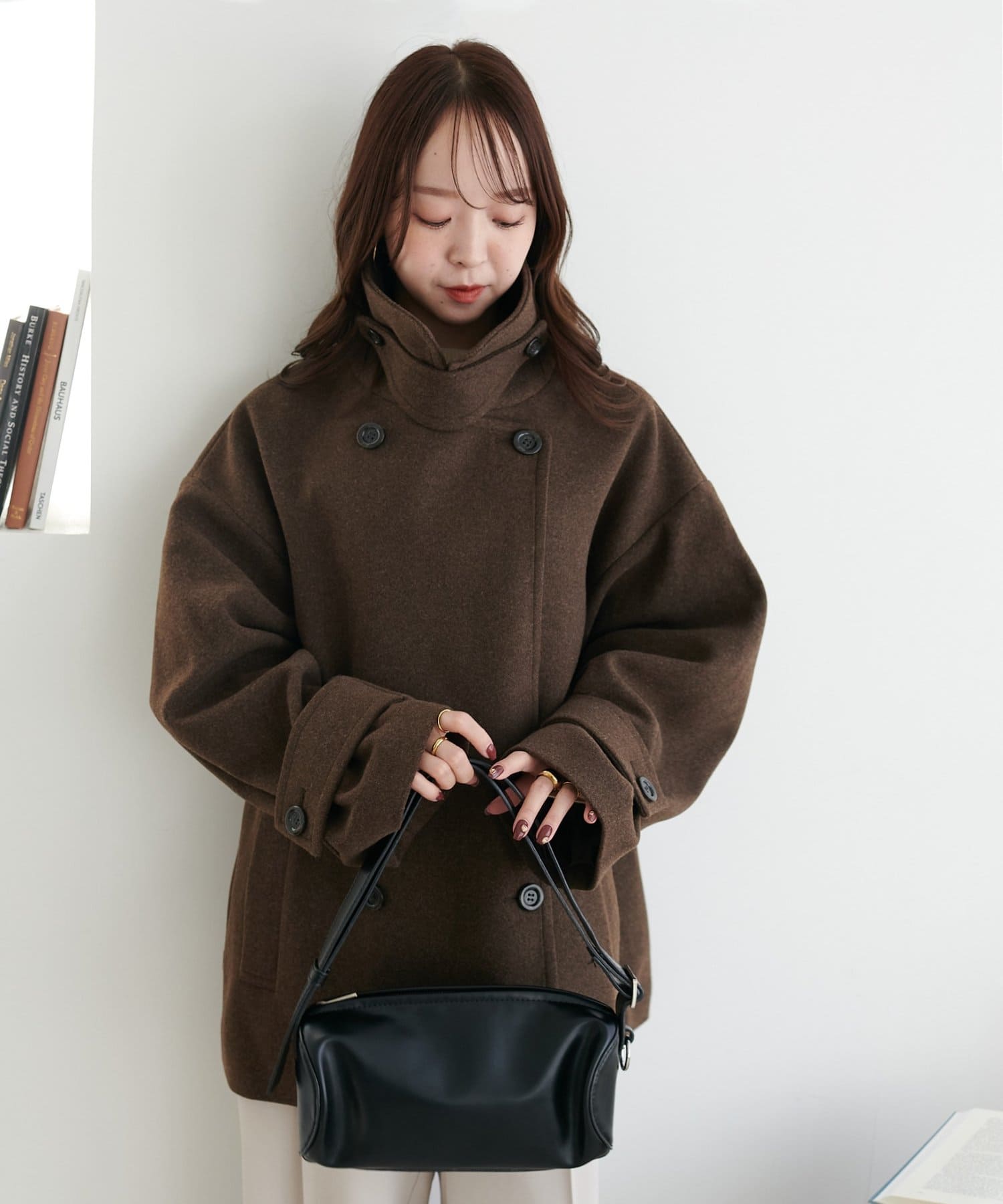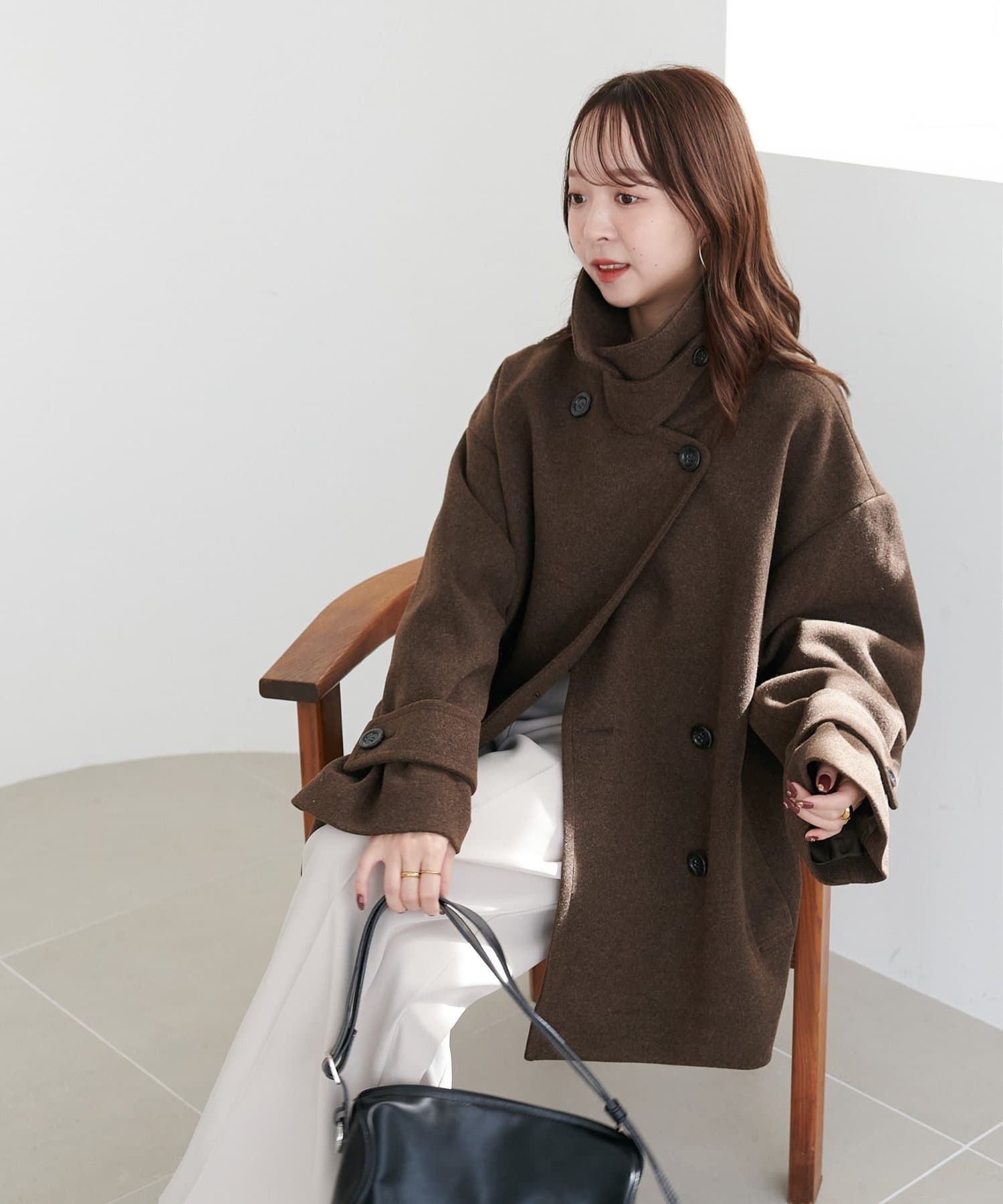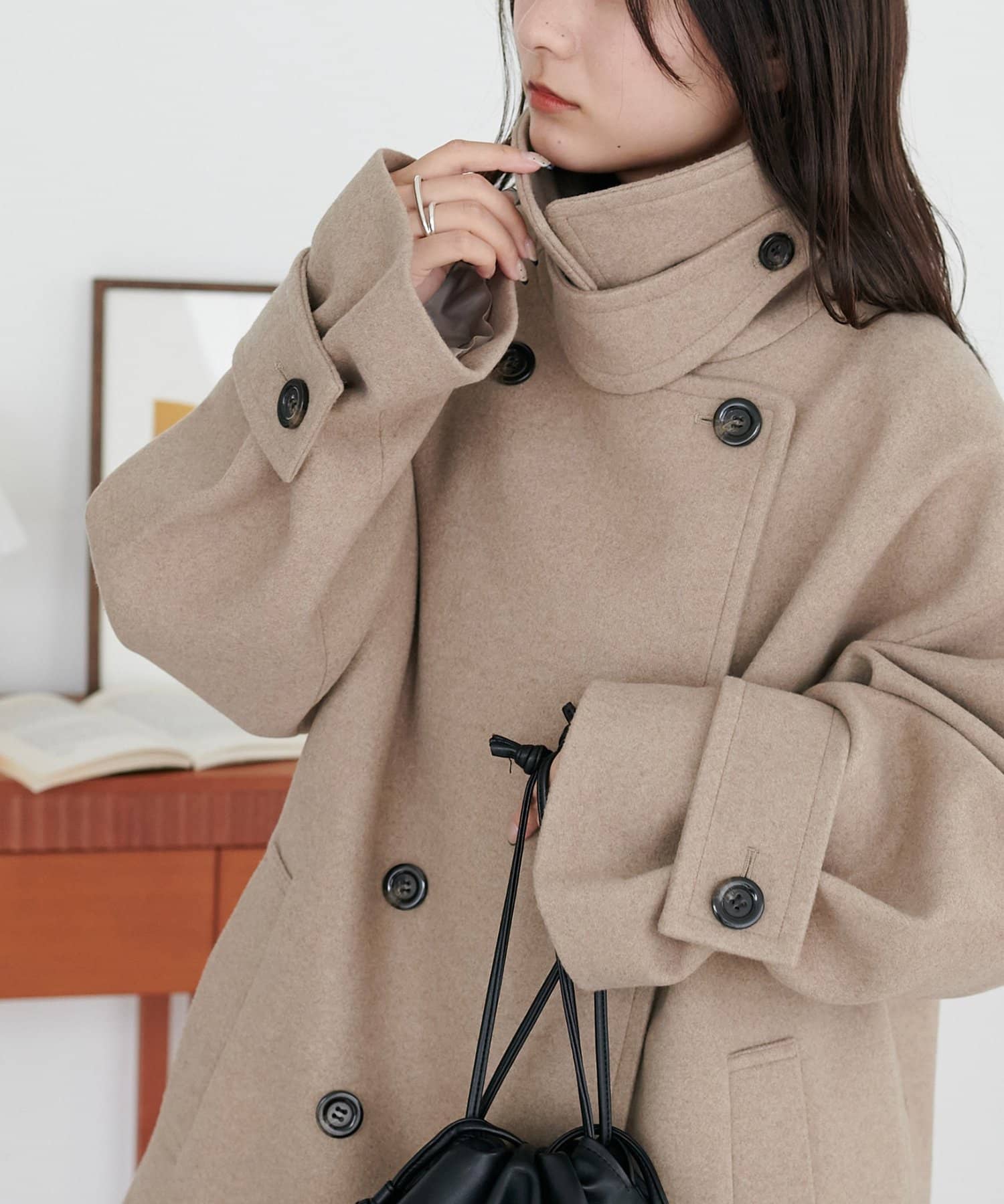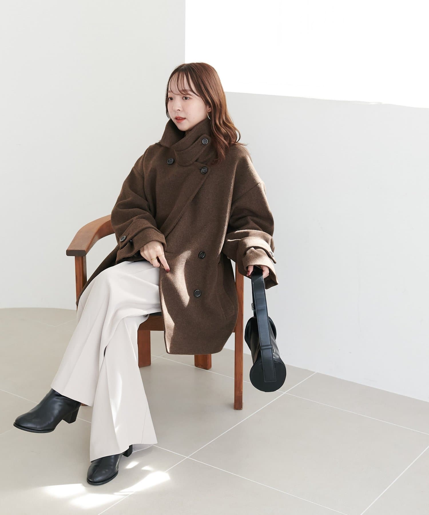 162cmスタッフ:スタンドカラーで着られるので、暖かいです◎ミドル丈ですっきりした印象になります。
