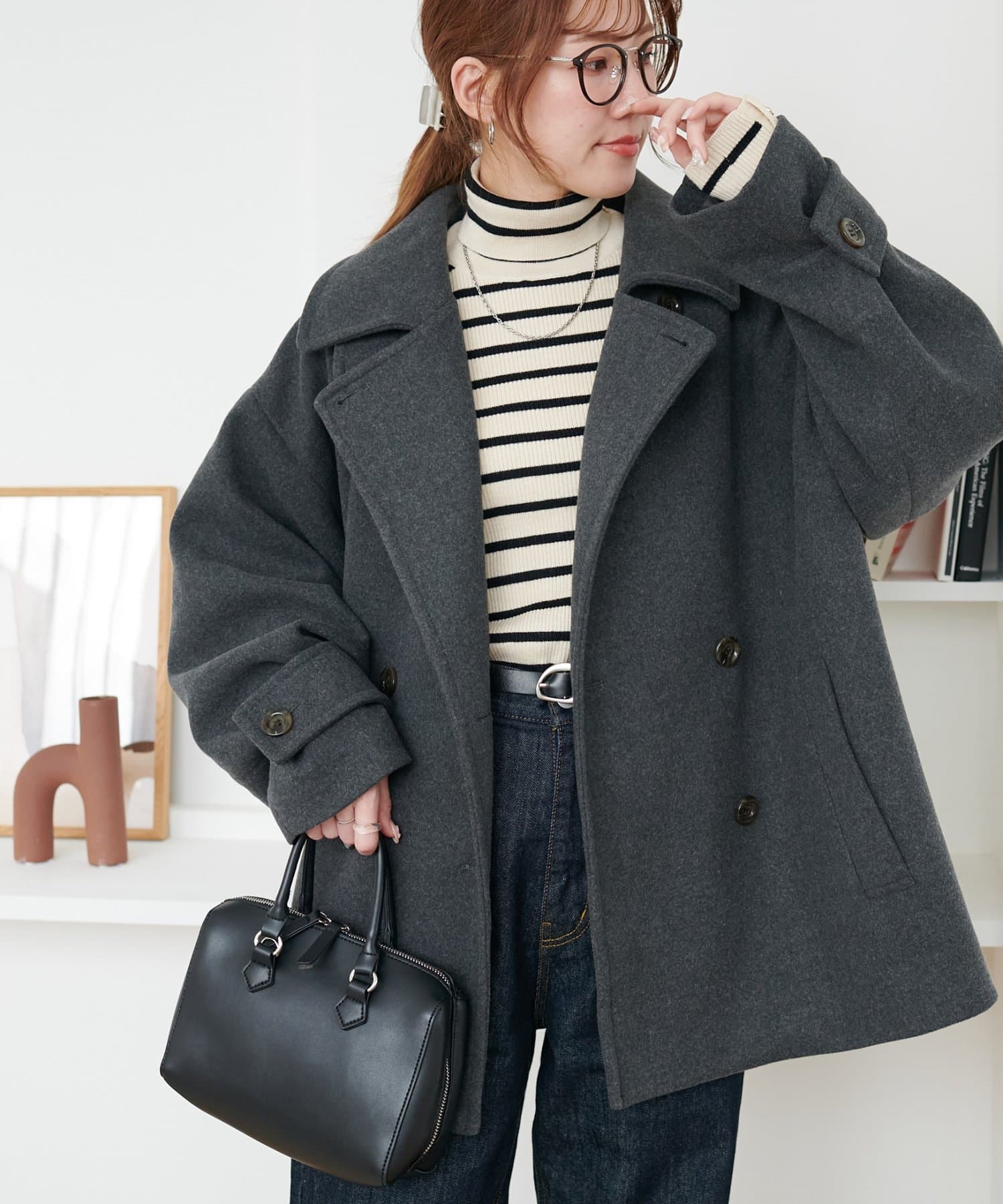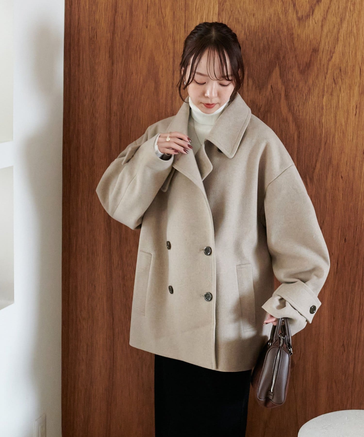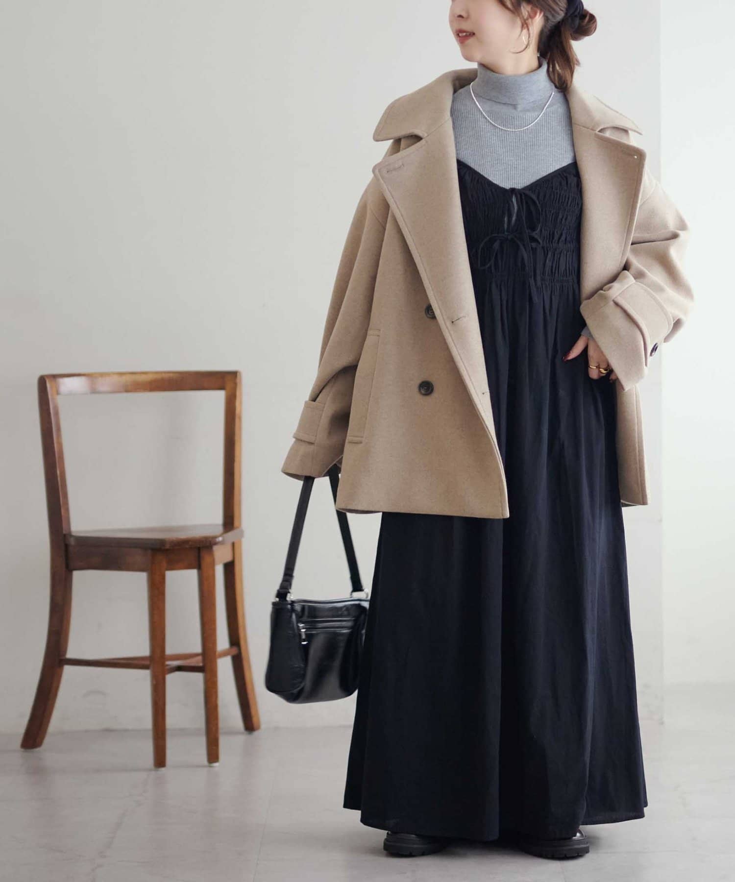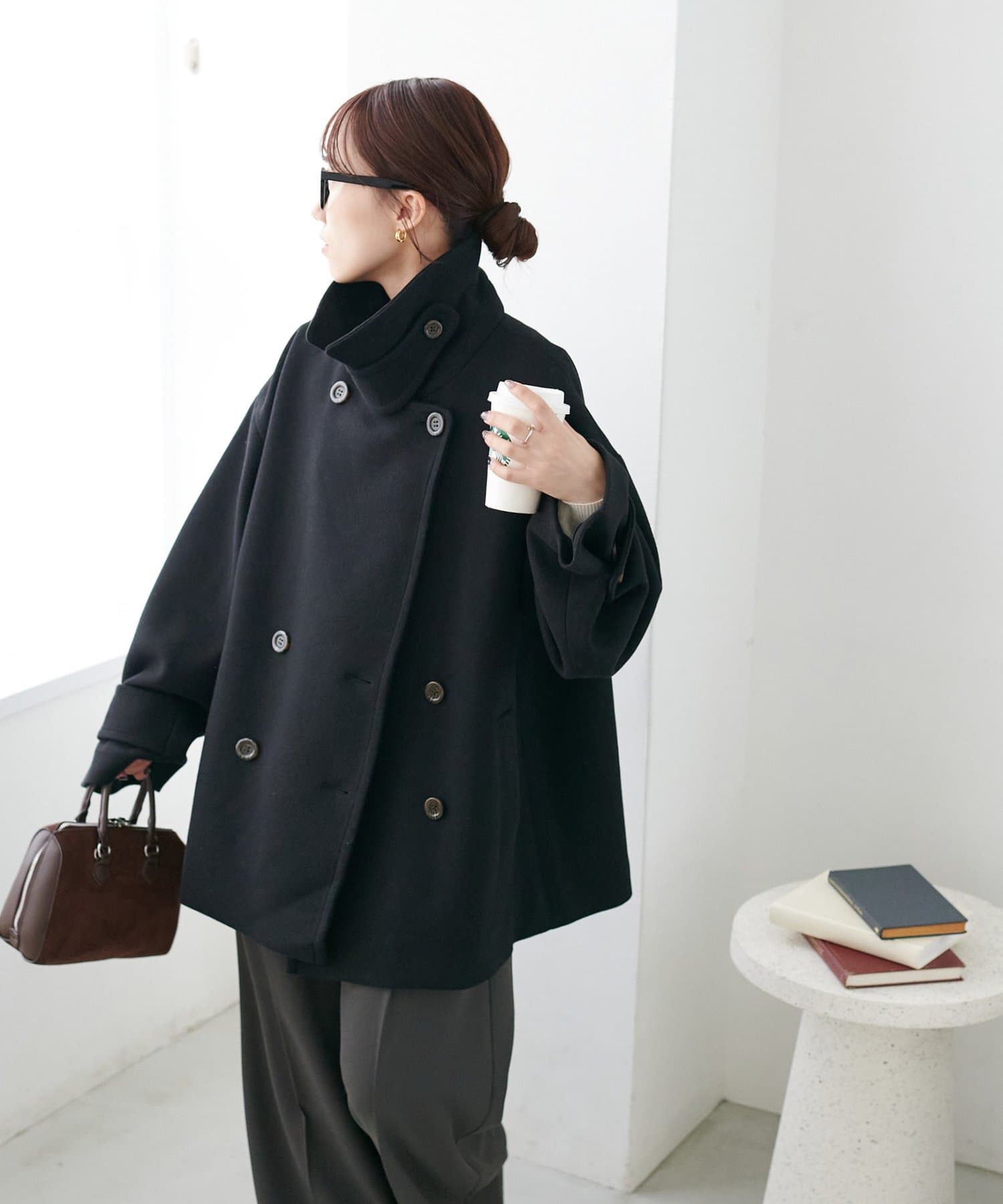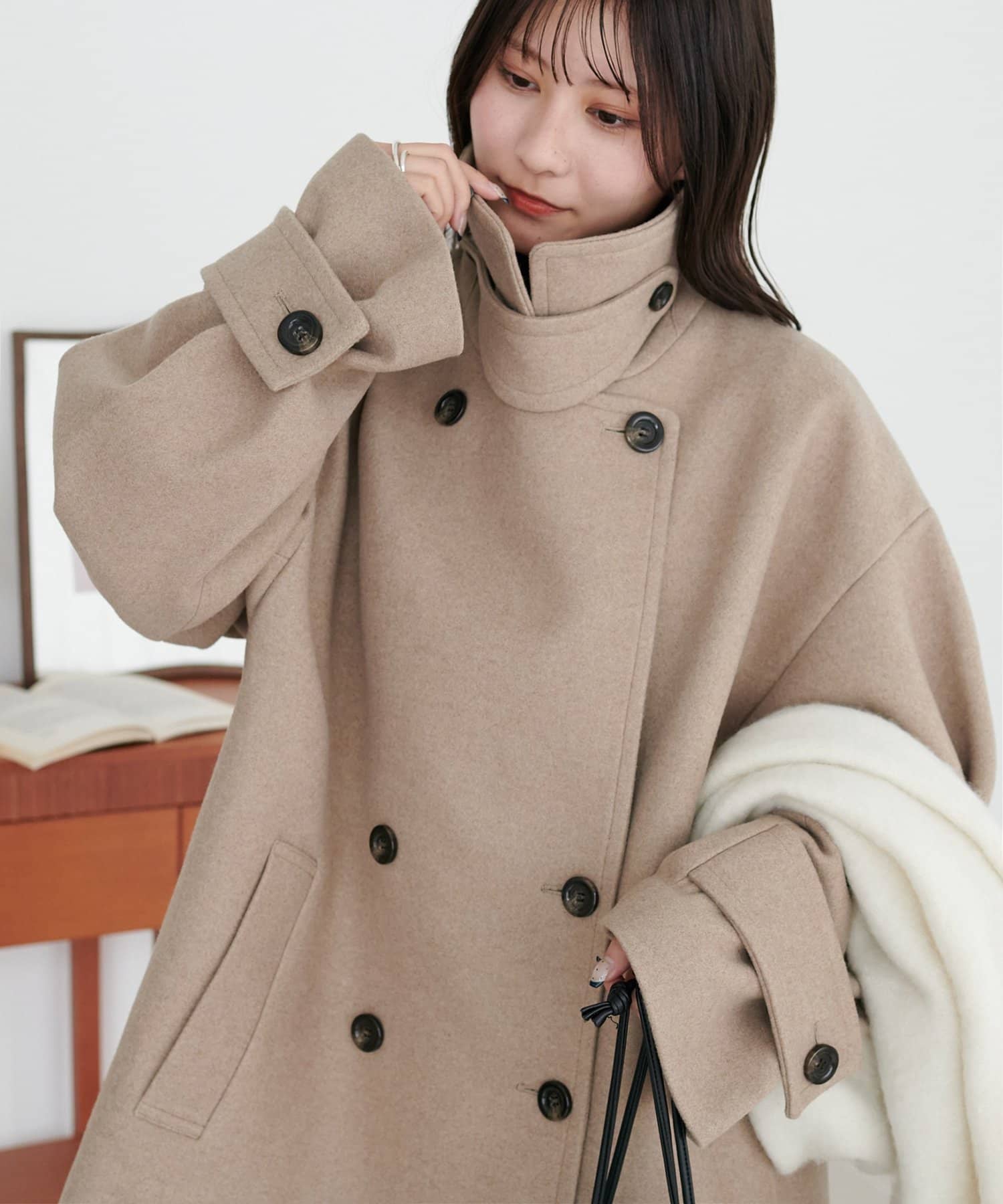 162cmスタッフ:スタンドカラーで着られるので、暖かいです◎ミドル丈ですっきりした印象になります。