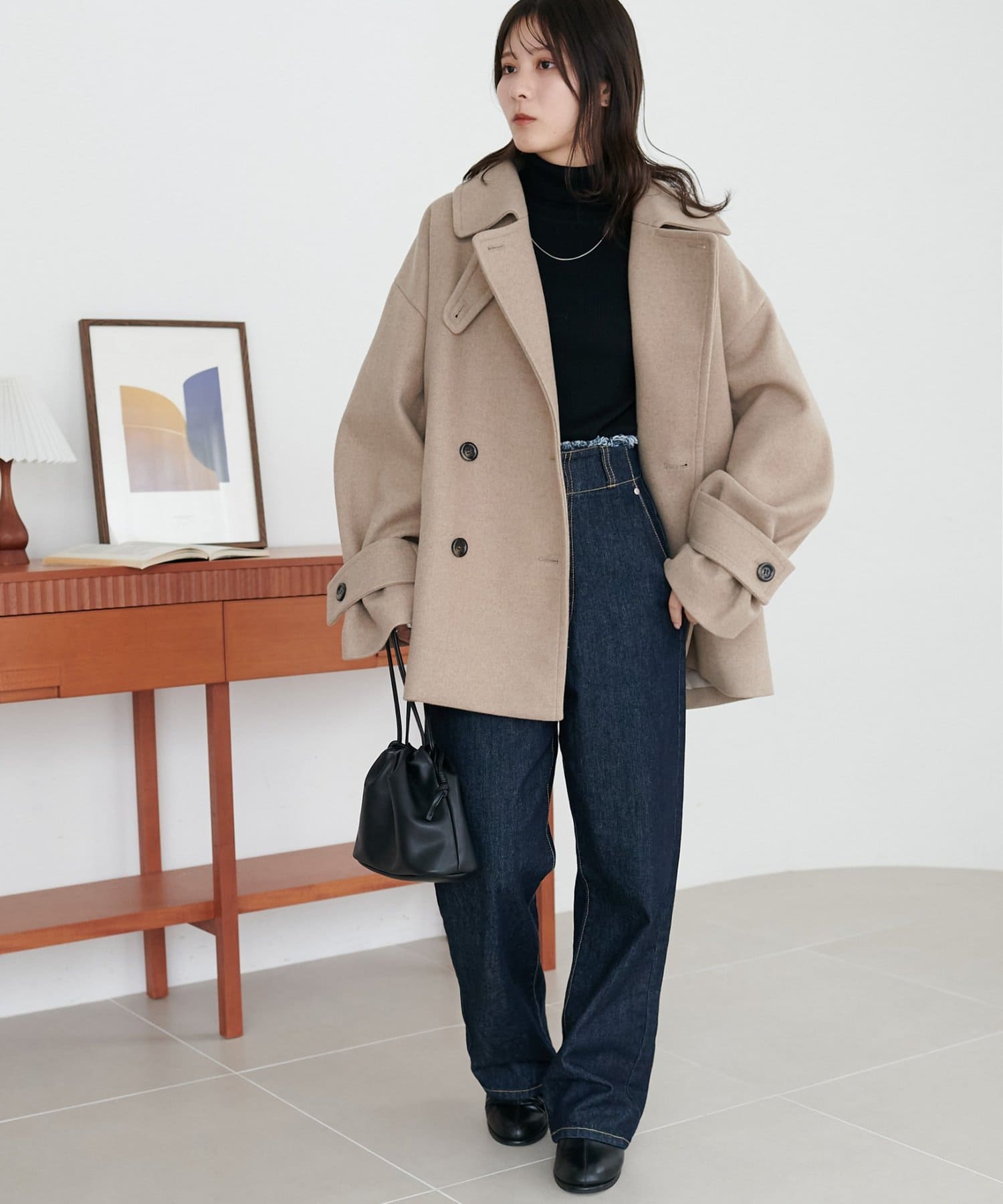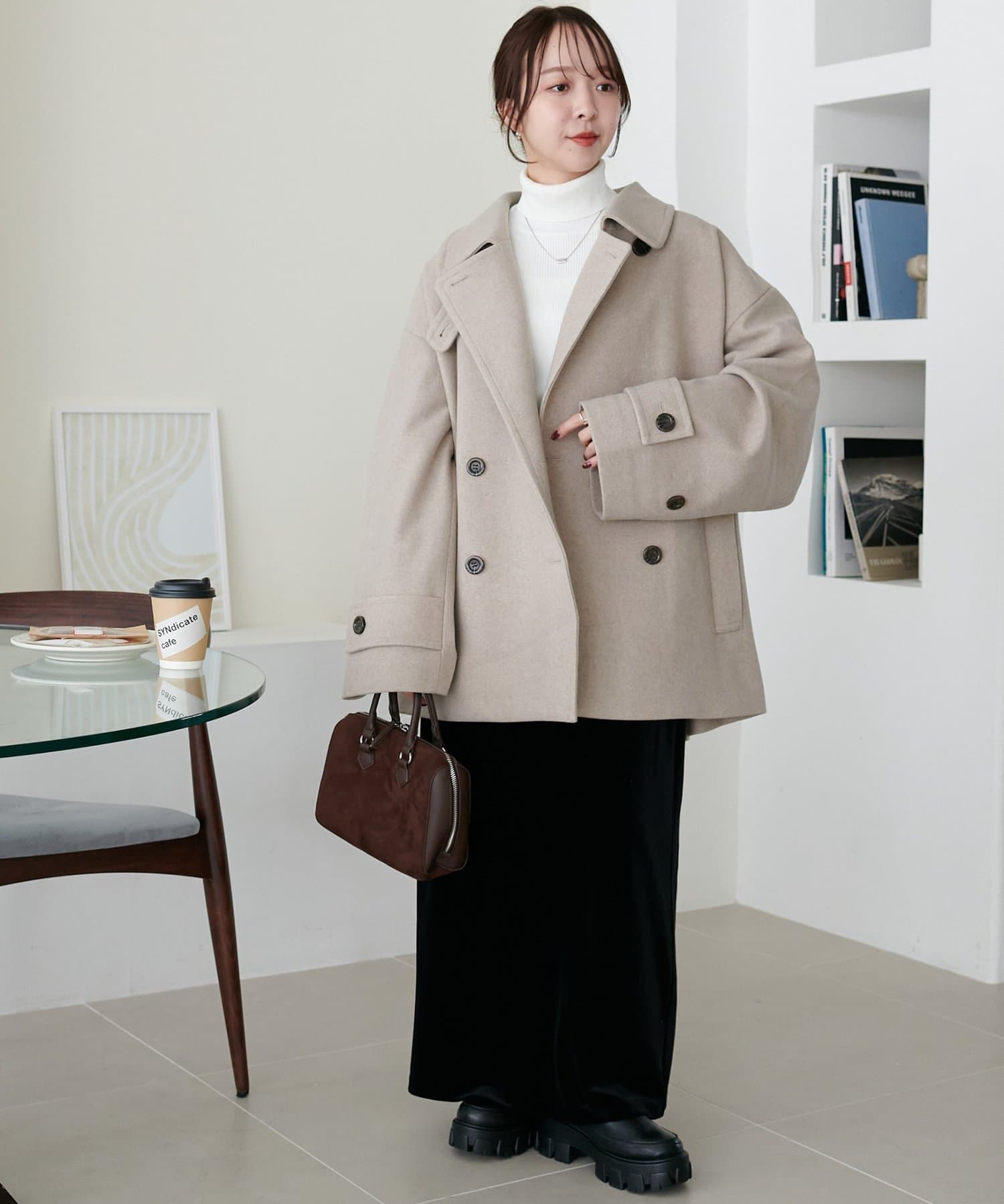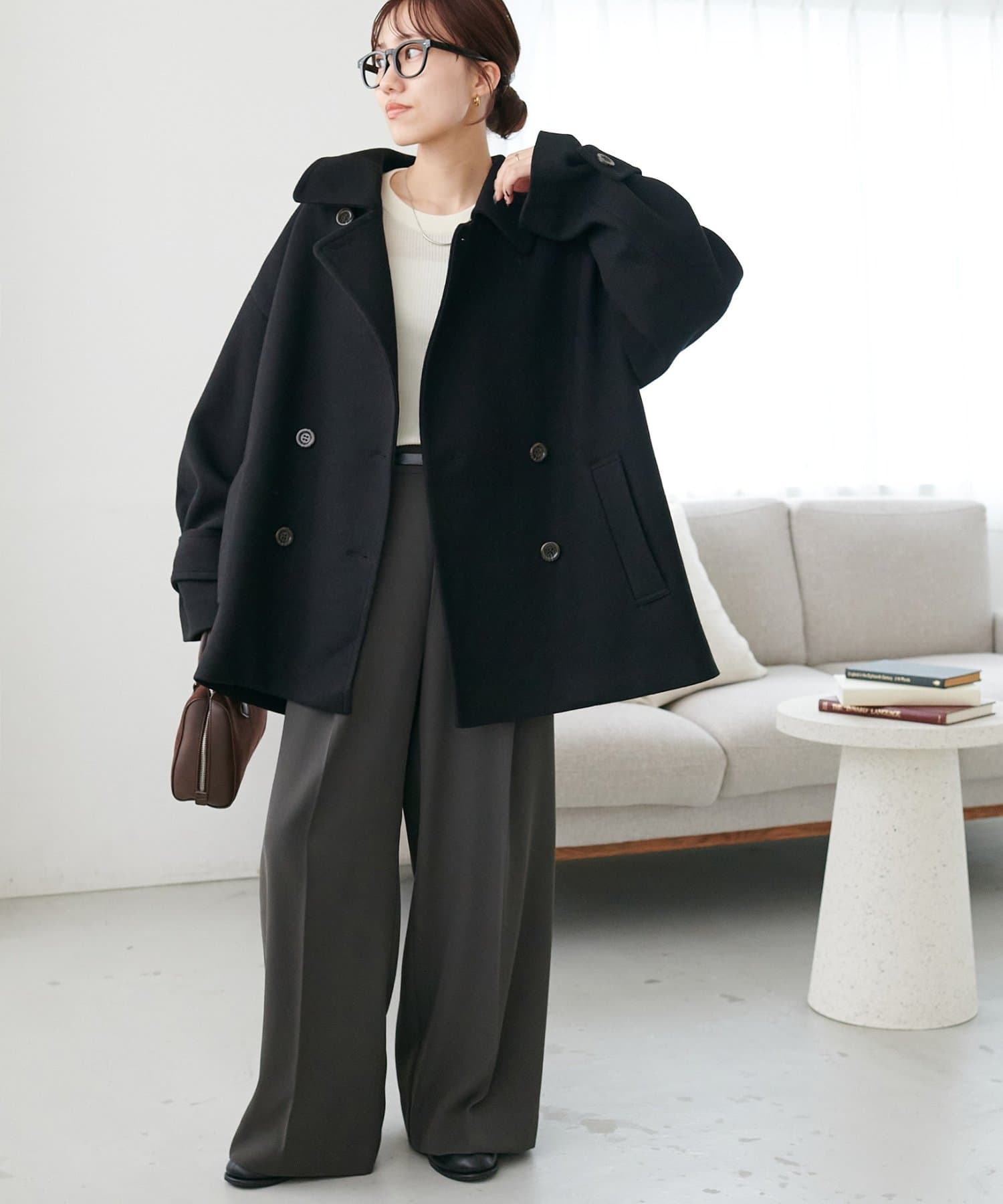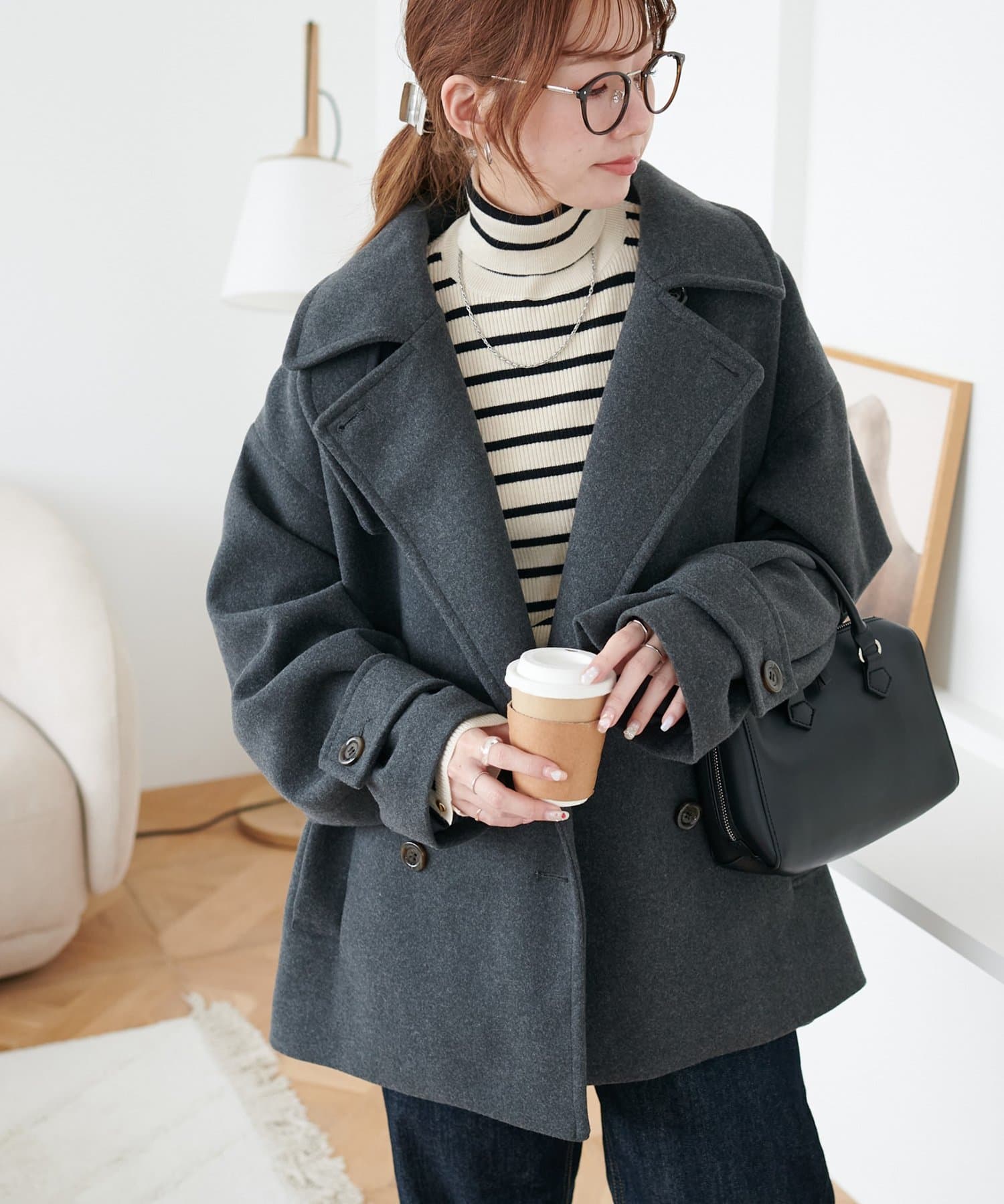 162cmスタッフ:スタンドカラーで着られるので、暖かいです◎ミドル丈ですっきりした印象になります。