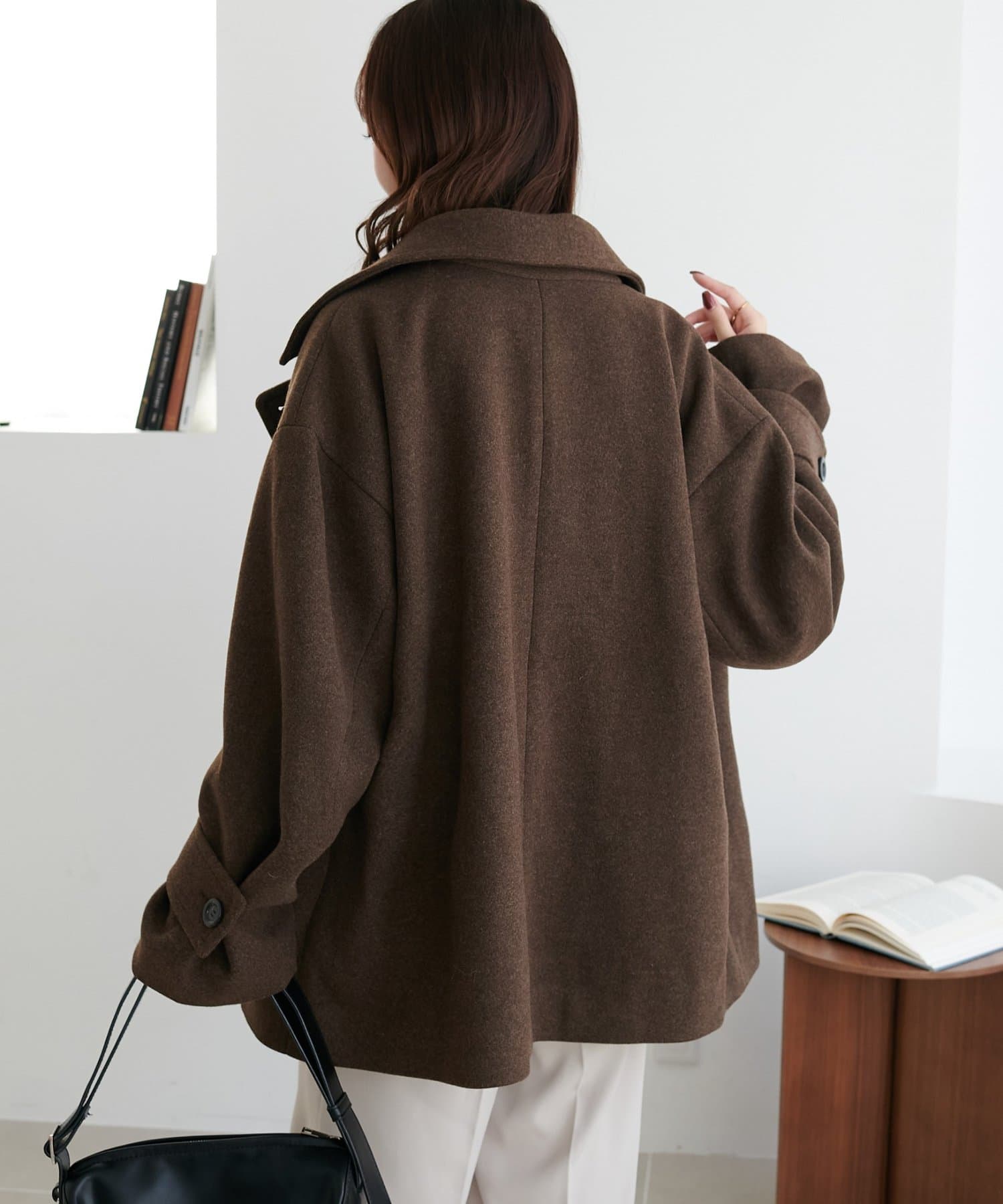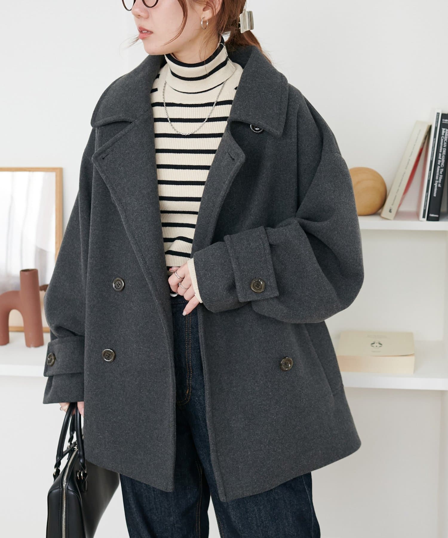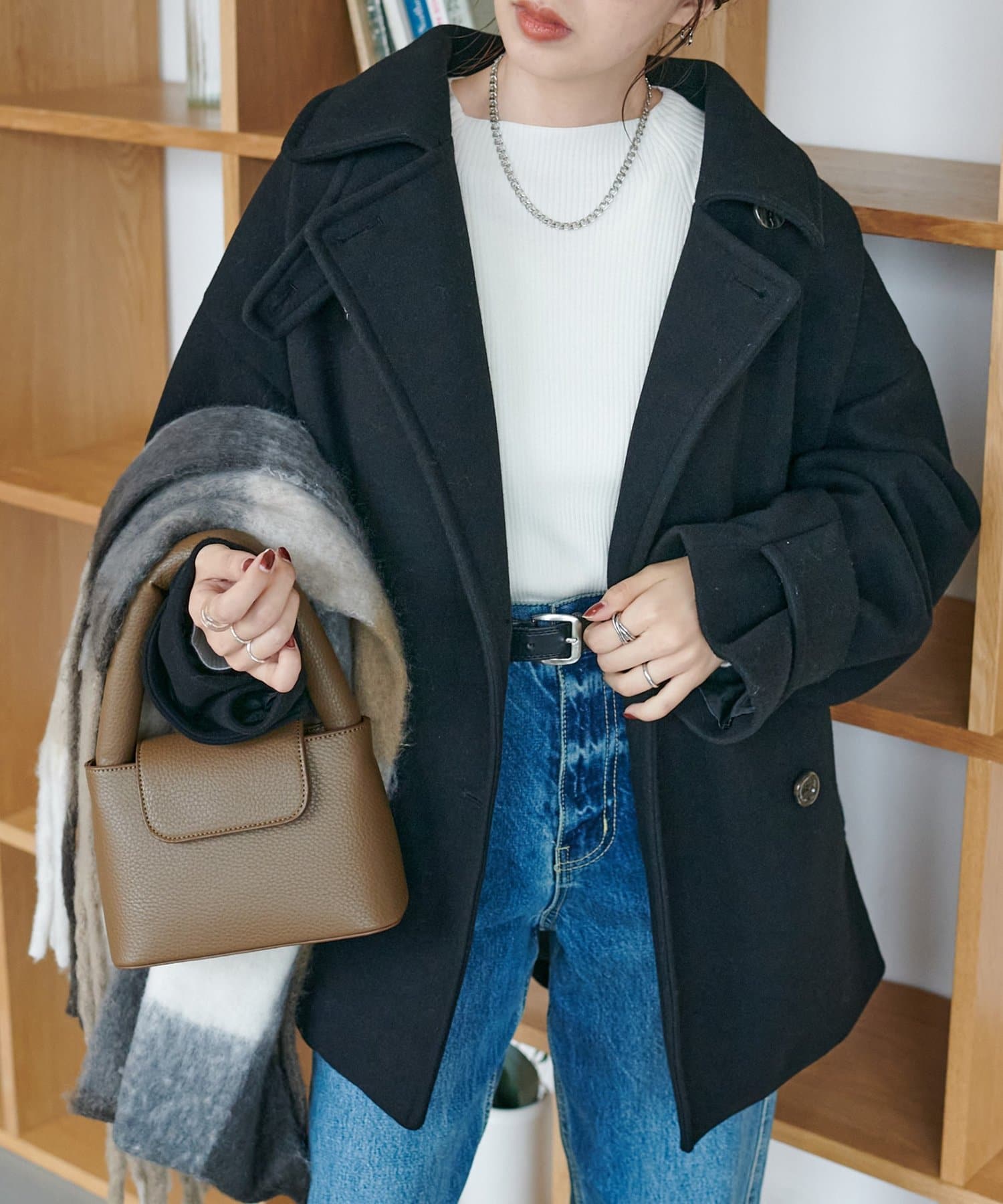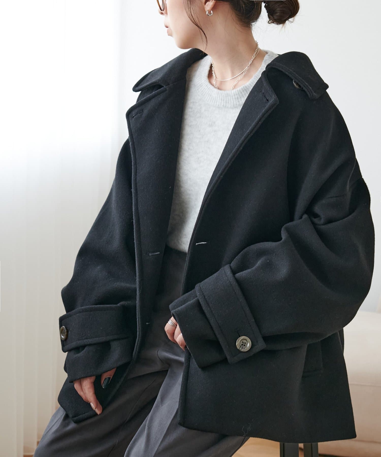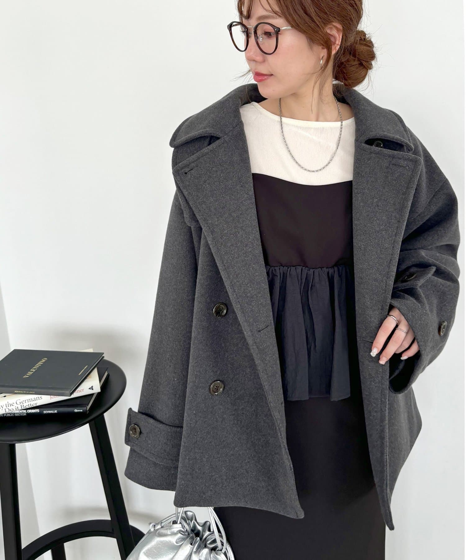162cmスタッフ:スタンドカラーで着られるので、暖かいです◎ミドル丈ですっきりした印象になります。