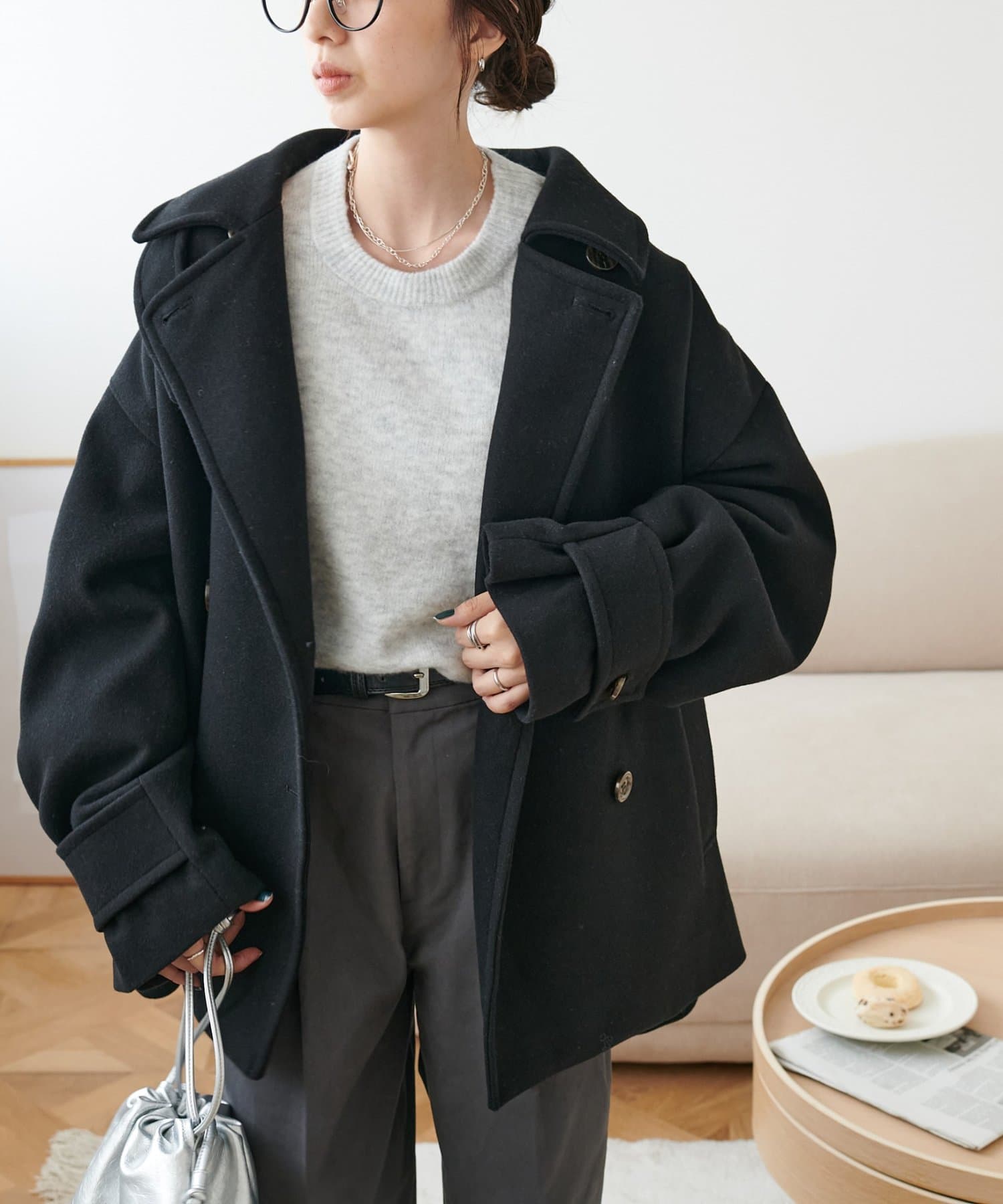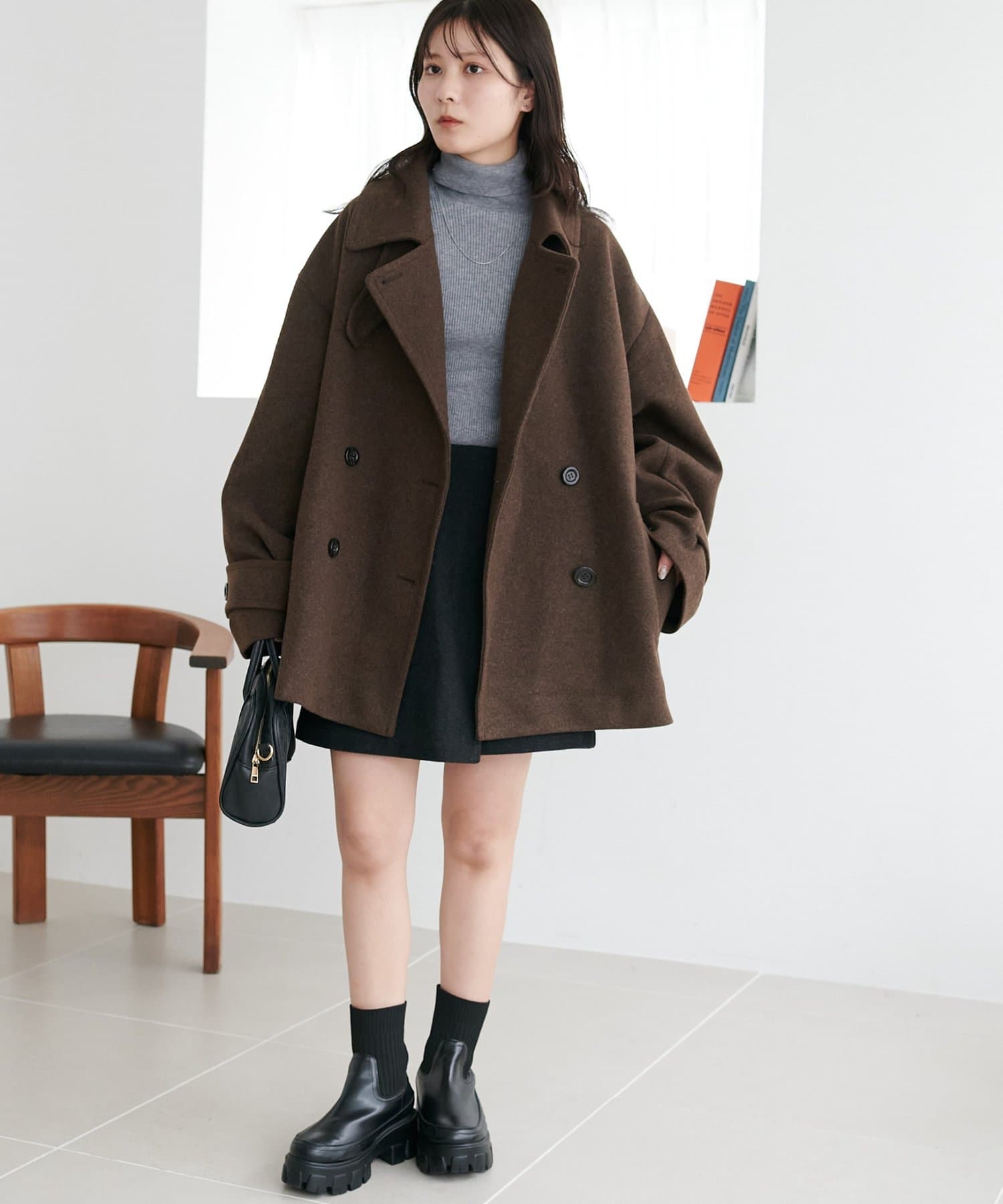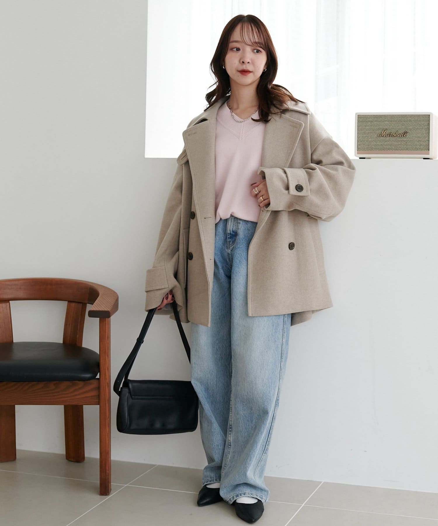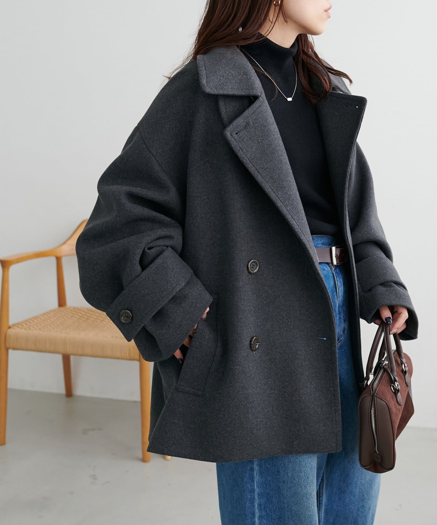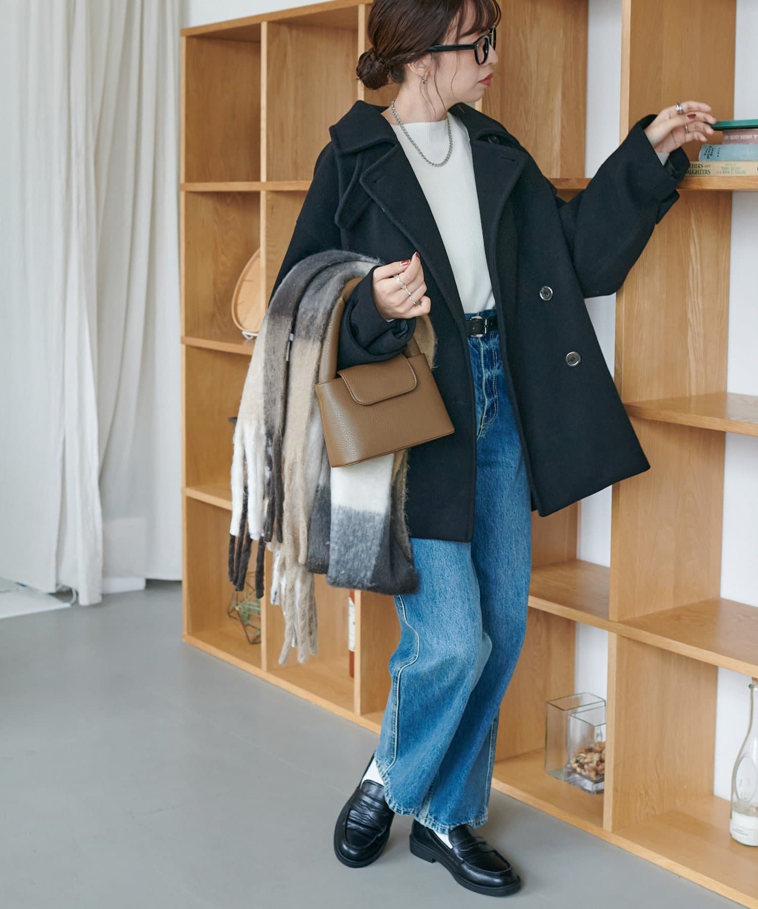 162cmスタッフ:スタンドカラーで着られるので、暖かいです◎ミドル丈ですっきりした印象になります。