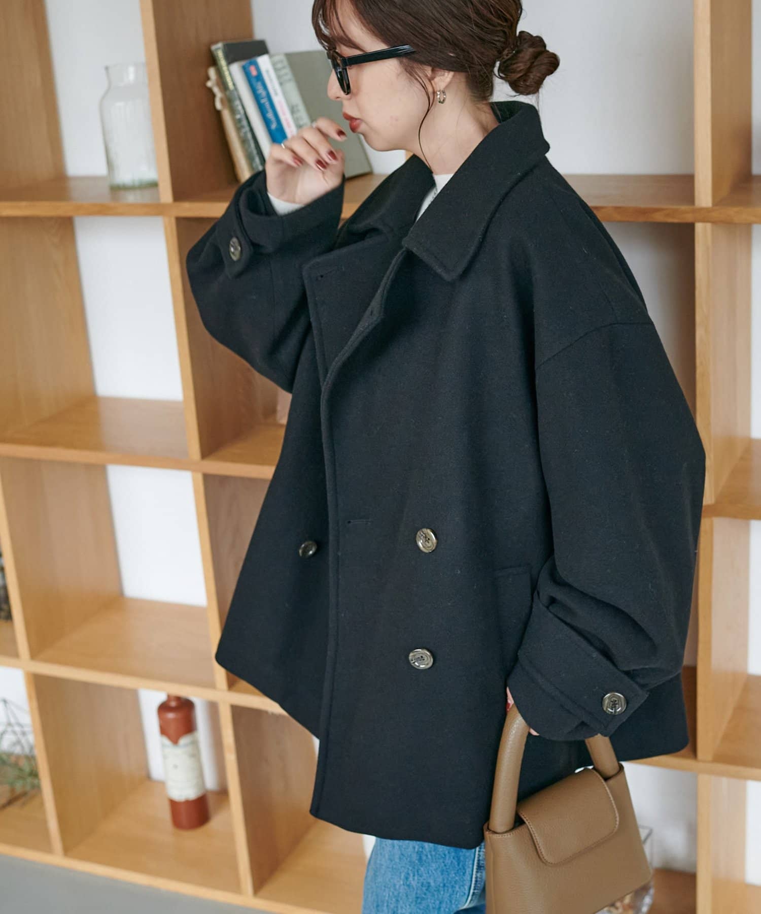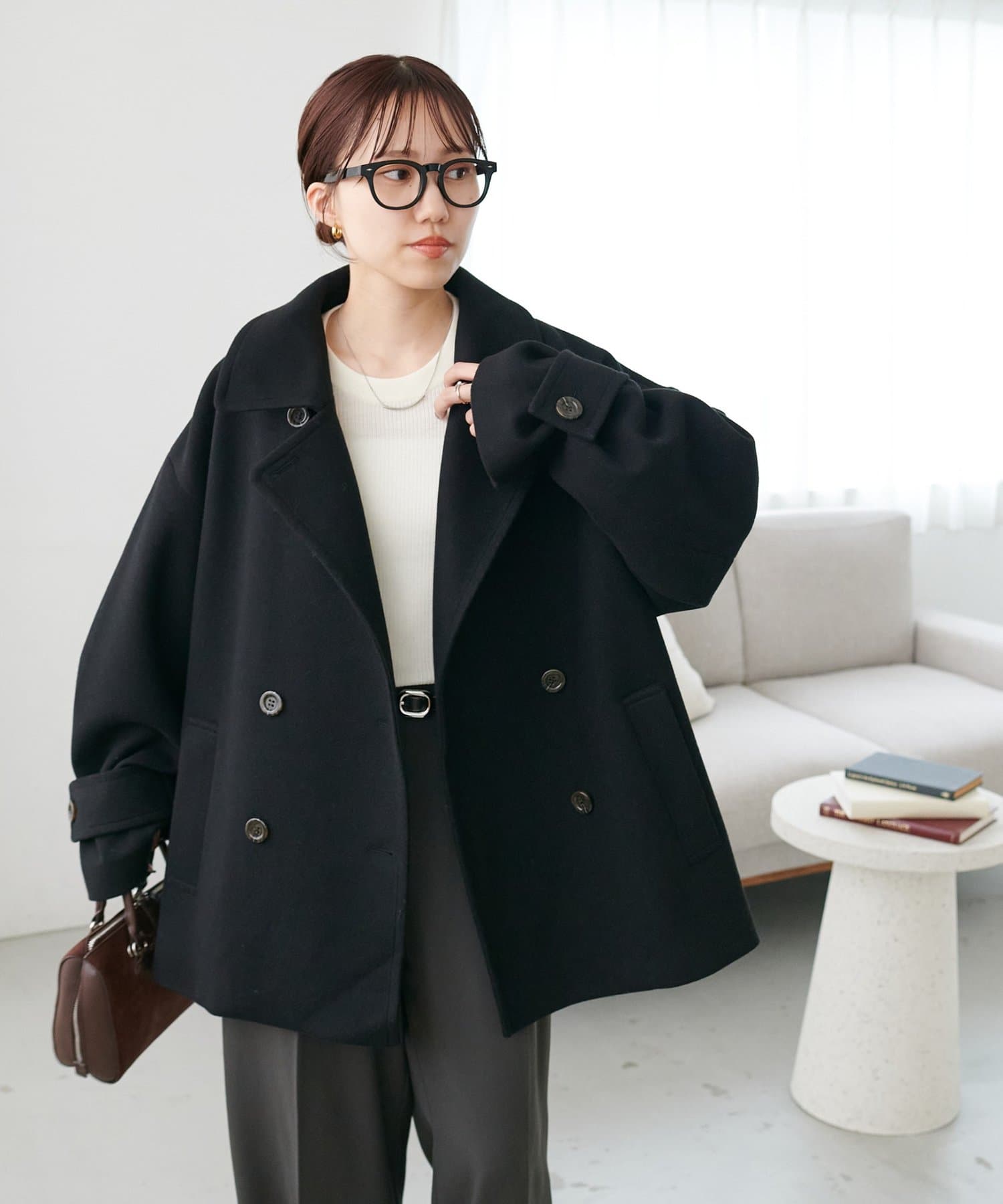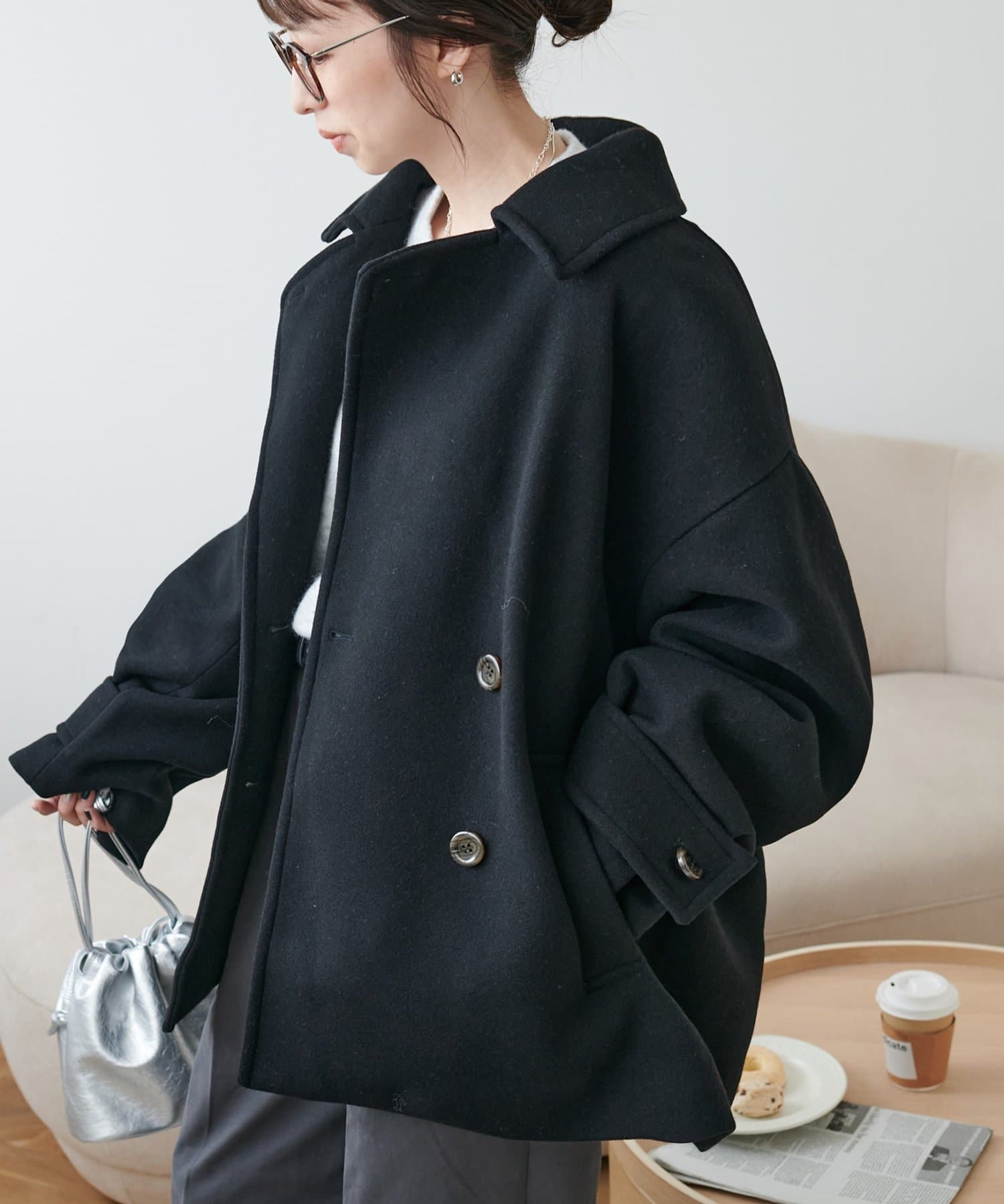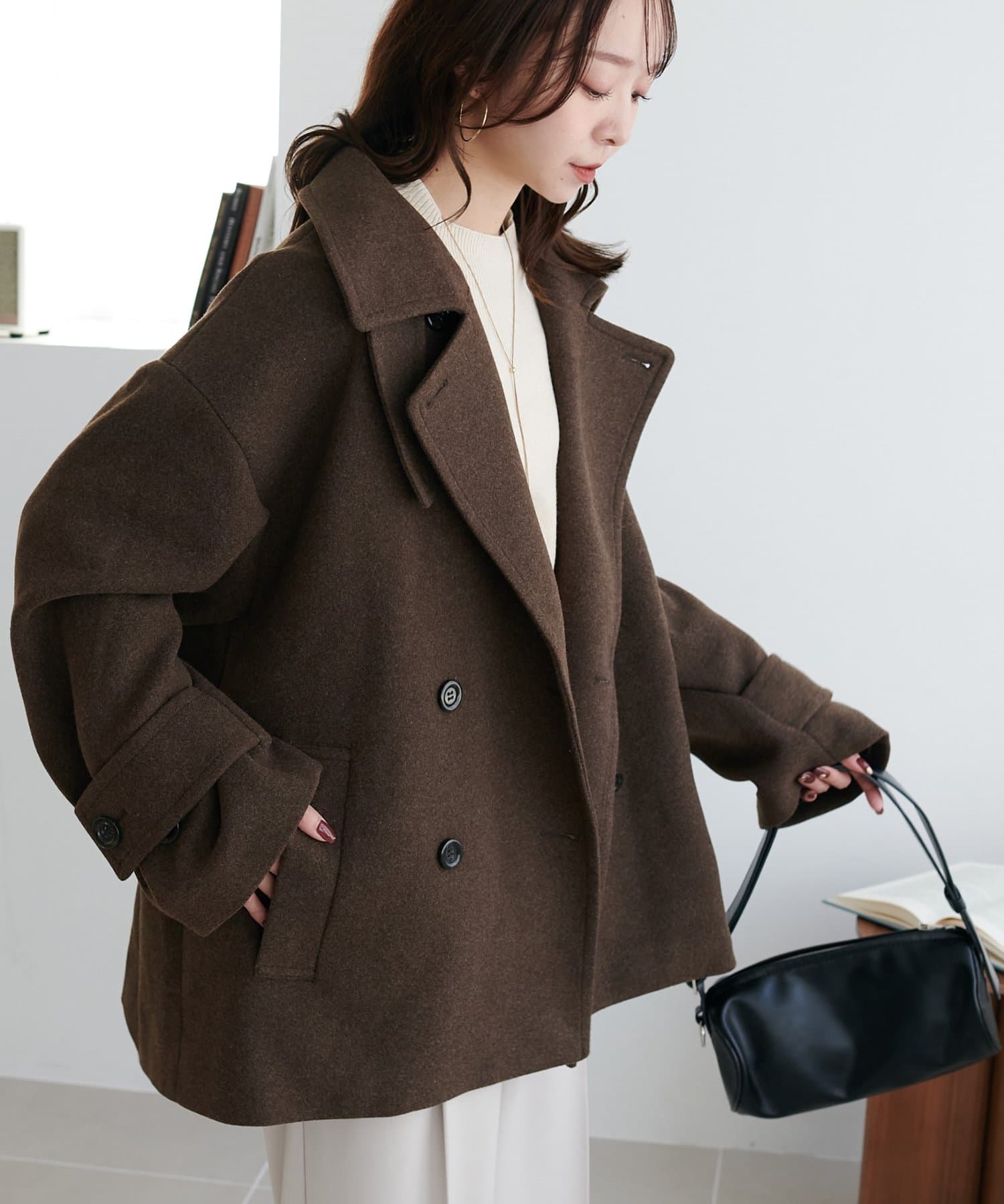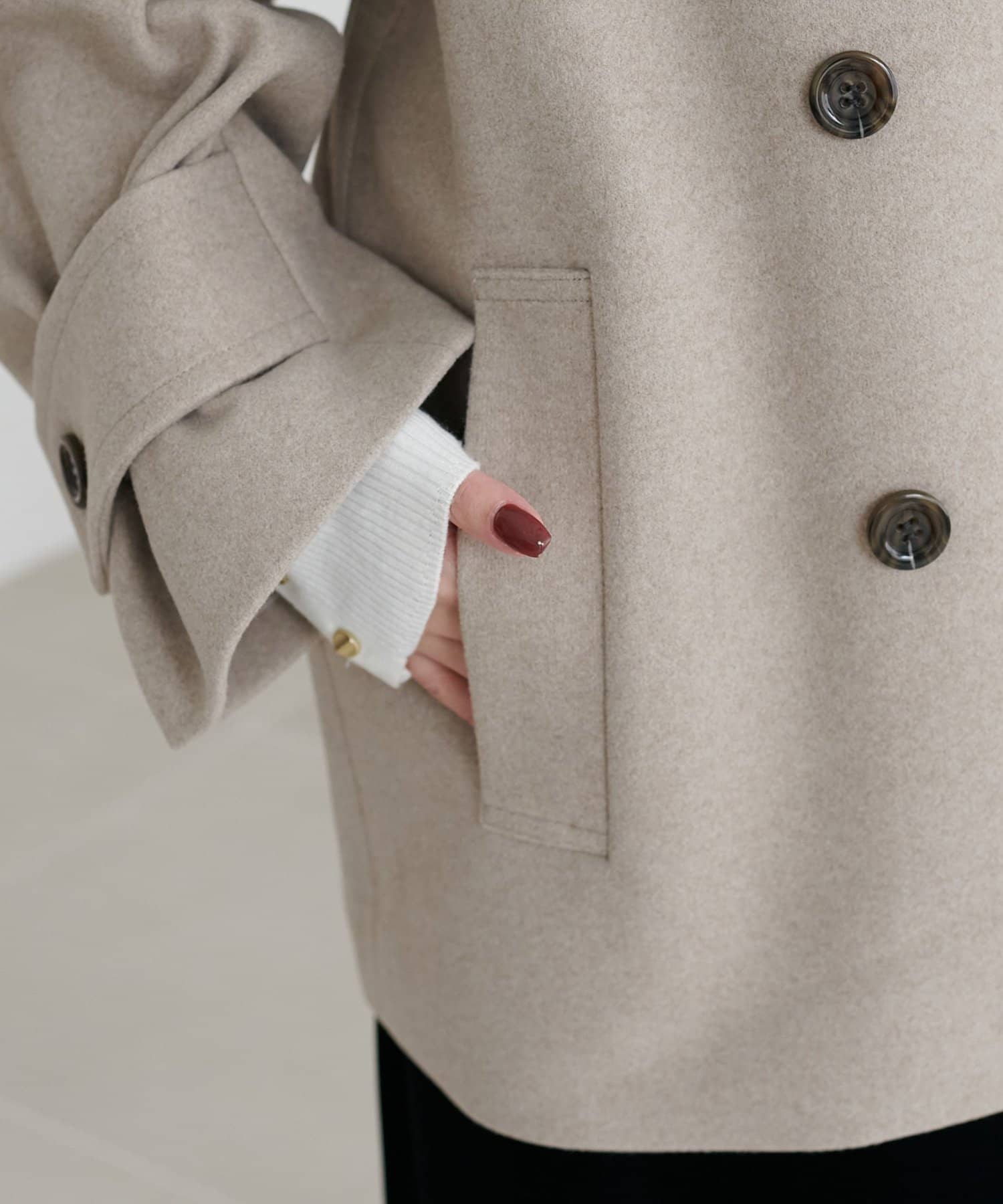 162cmスタッフ:スタンドカラーで着られるので、暖かいです◎ミドル丈ですっきりした印象になります。