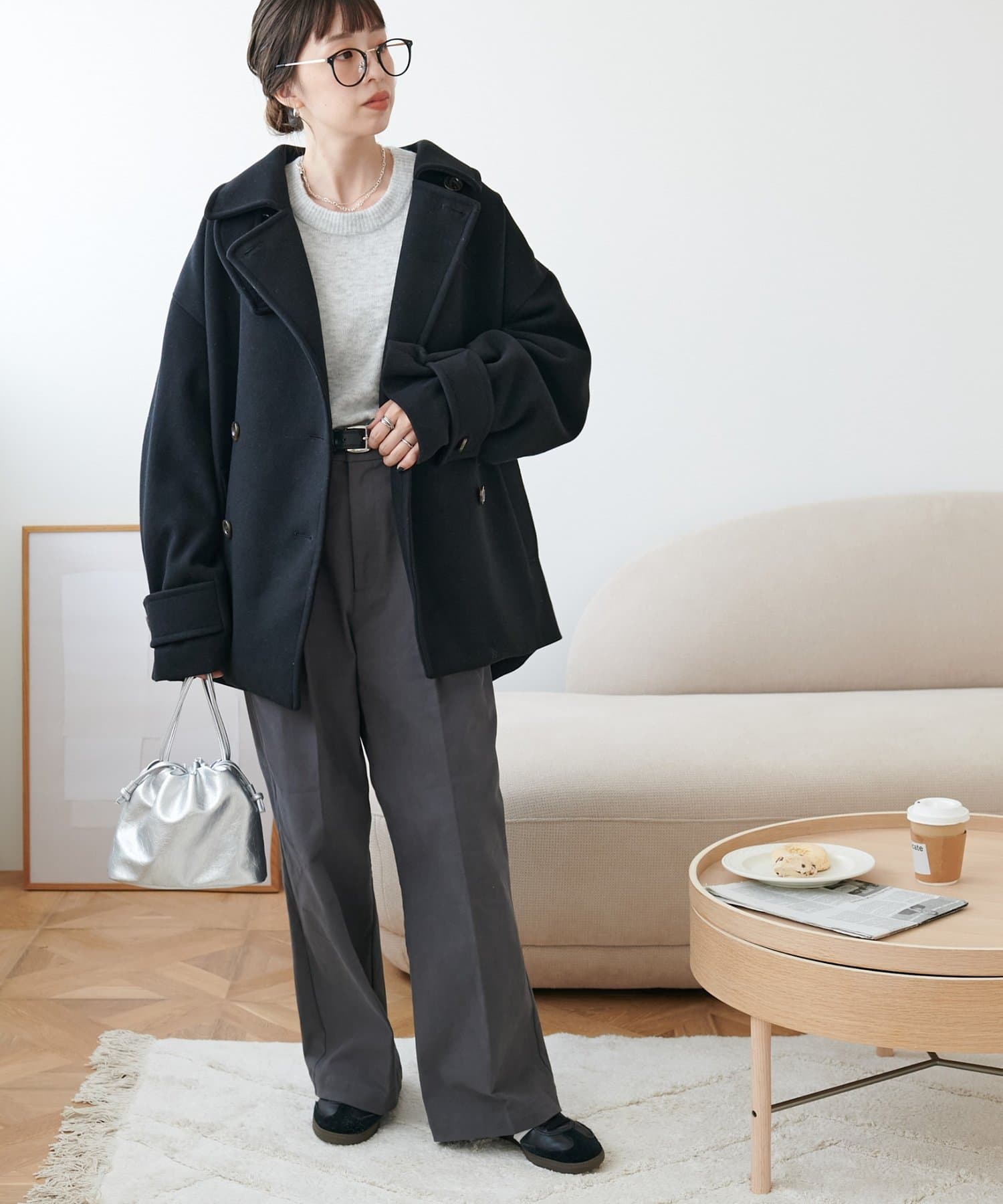 ゆとりがある身幅なので、コンパクトなトップスはもちろんボリューム感のあるニットとも合わせやすいです◎