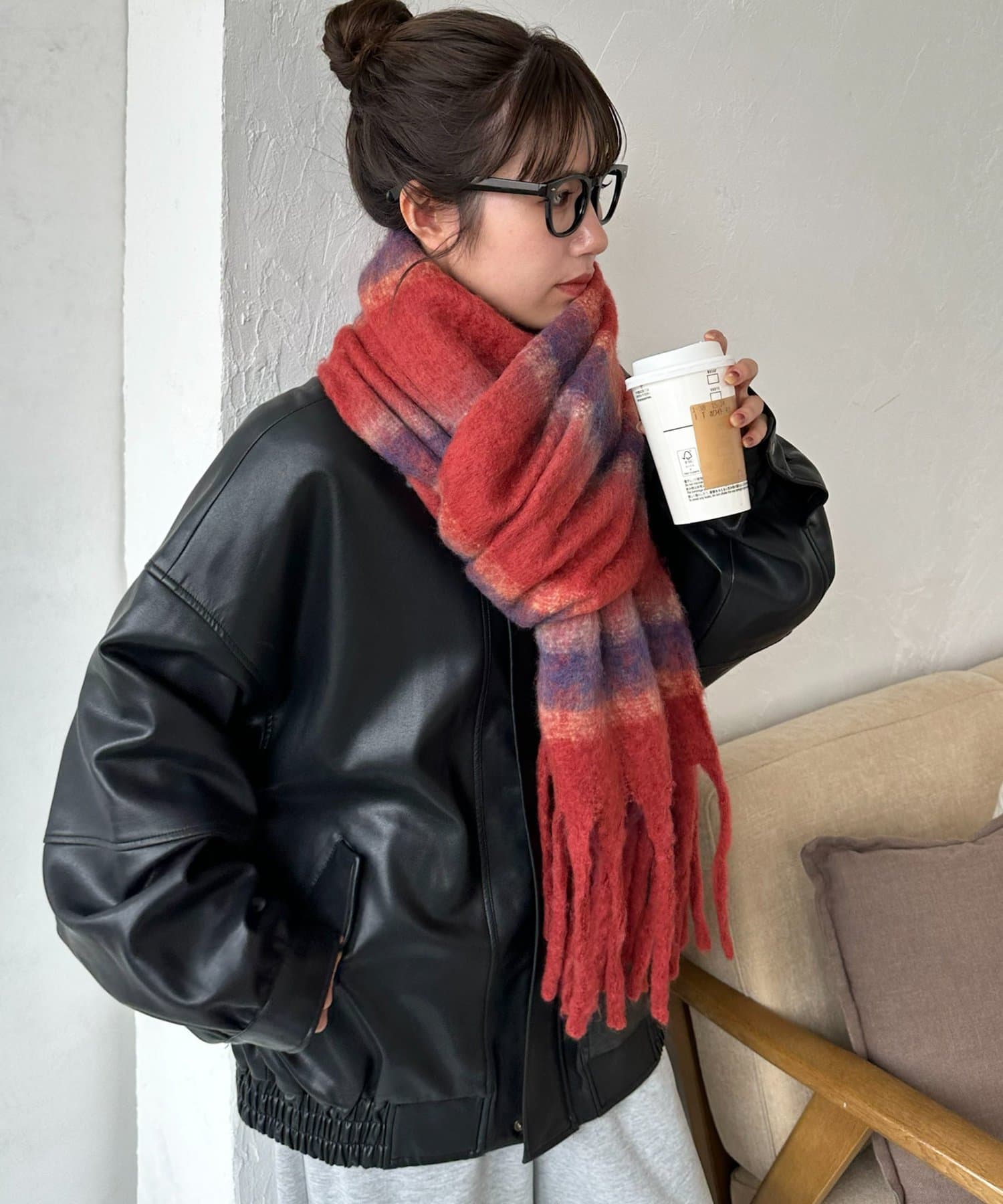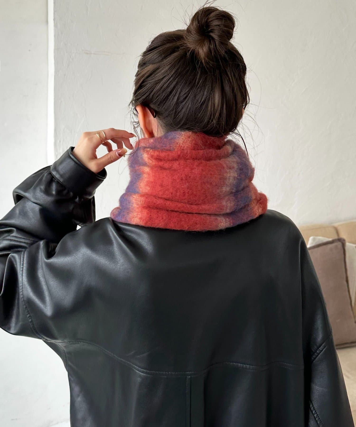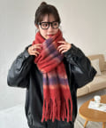 程よいボリューム感がありながらも軽いつけ心地で、首元を優しく包み込みます♪大ぶりのフリンジデザインがアクセントとなり、シンプルなスタイリングにプラスするだけで季節感のある印象に◎今季らしいカラーグラデーションで、コーディネートの主役になる一枚です。