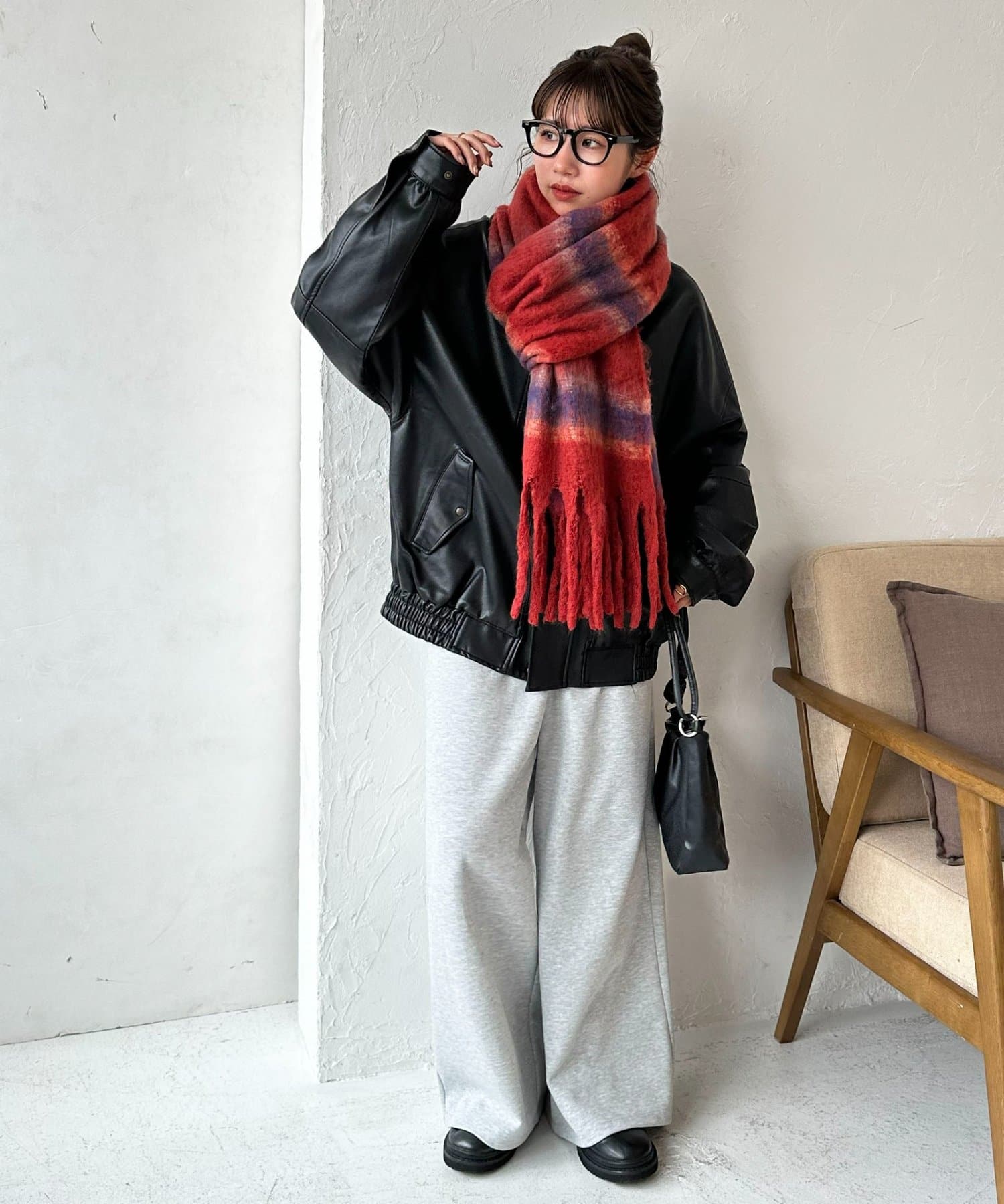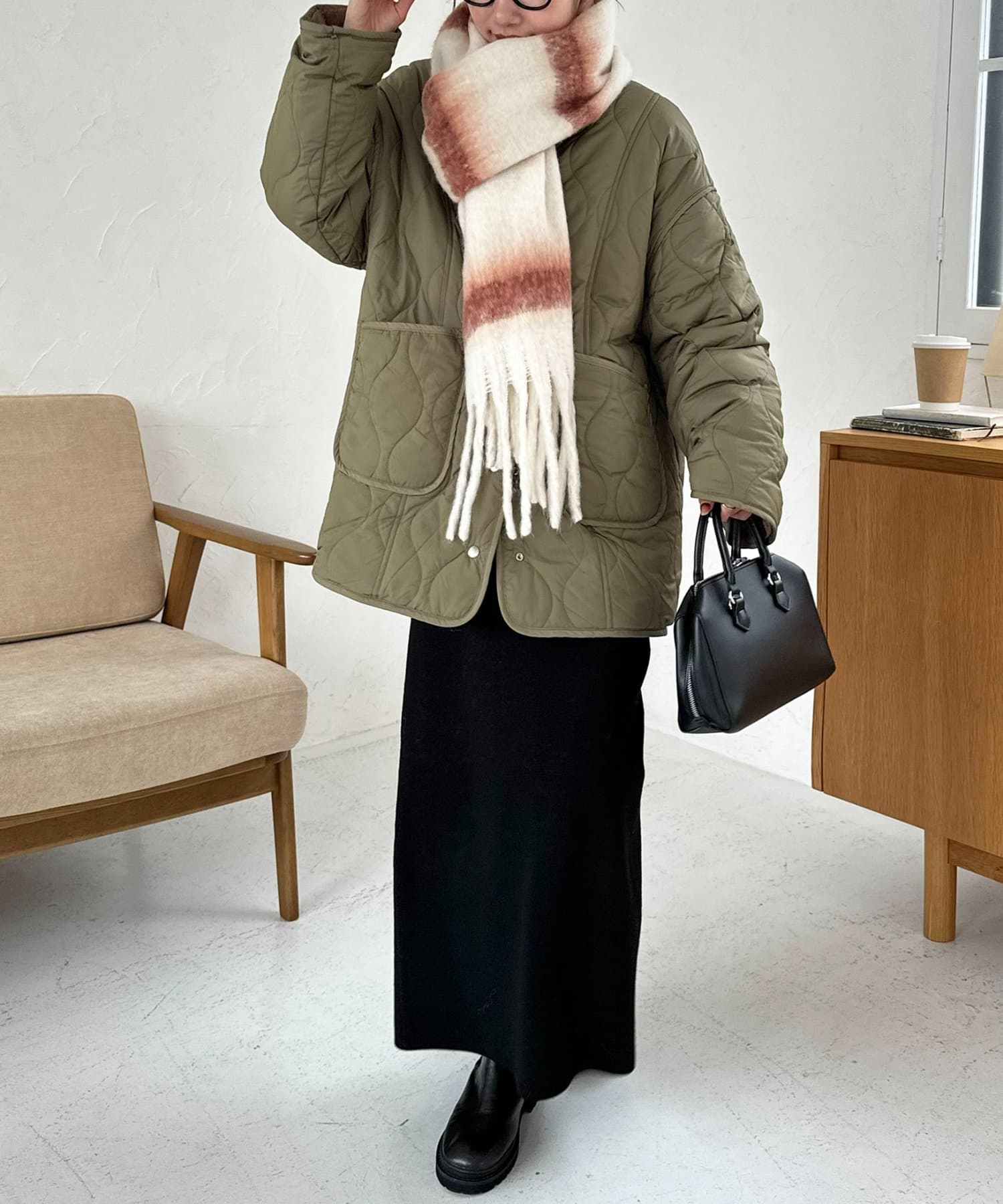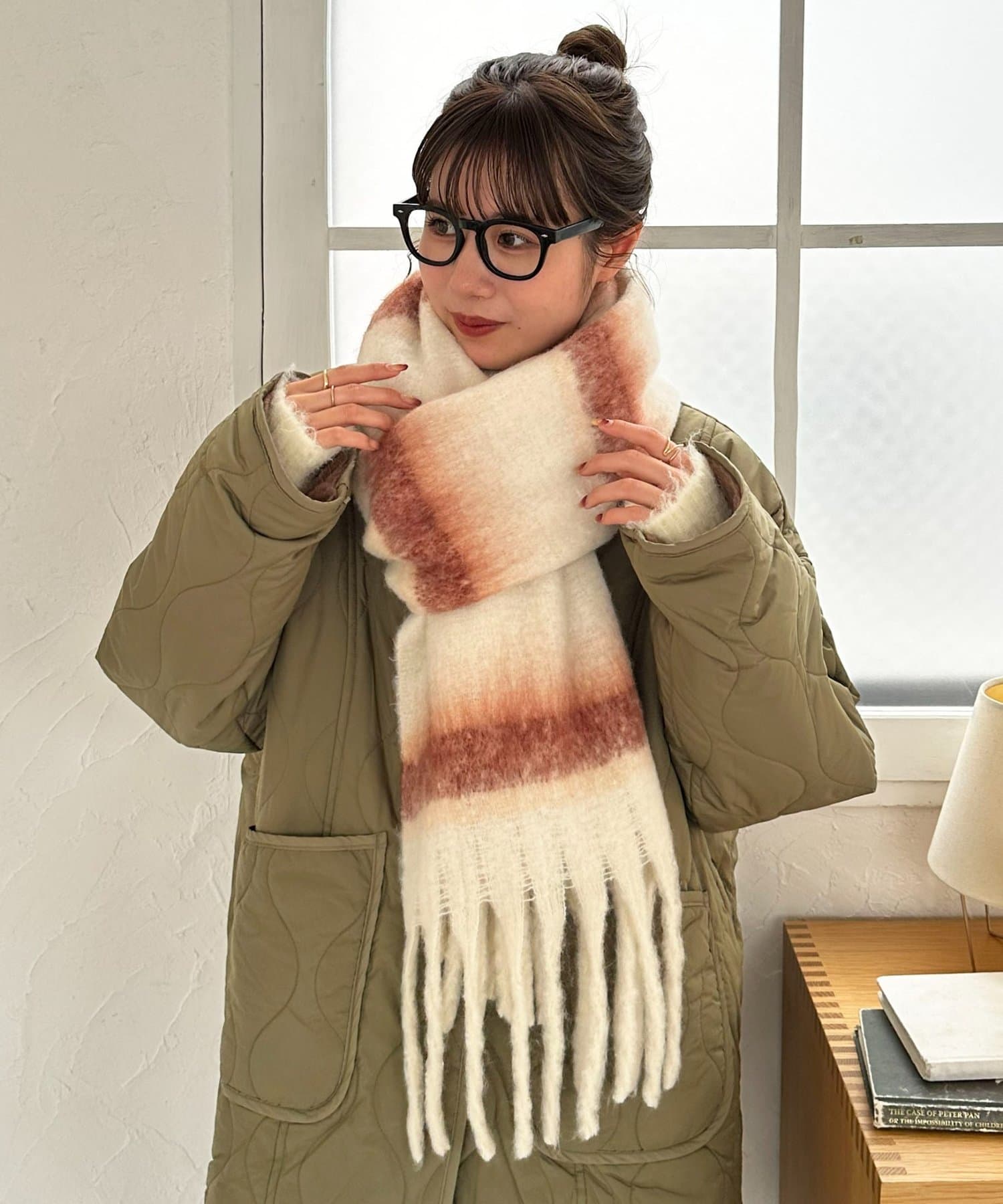 ふんわり軽やかに、冬コーデを華やかに彩る太フリンジボーダーストール。