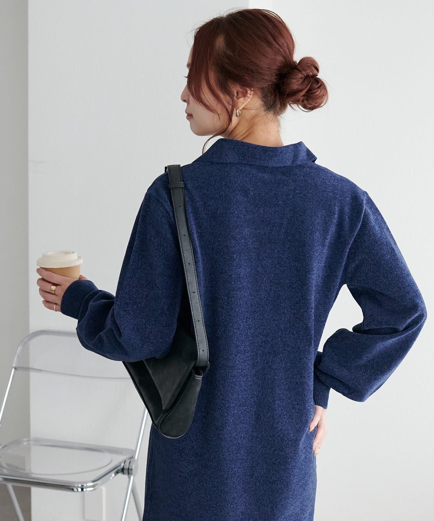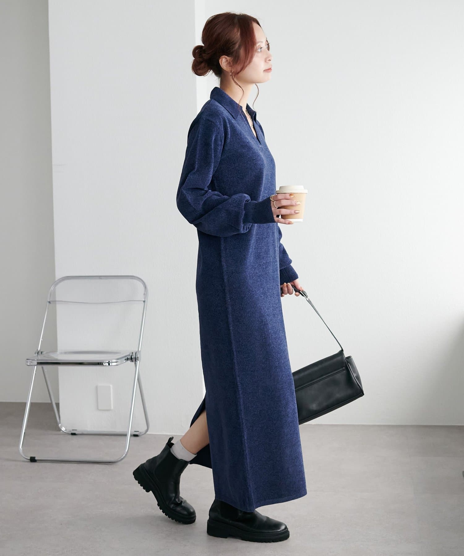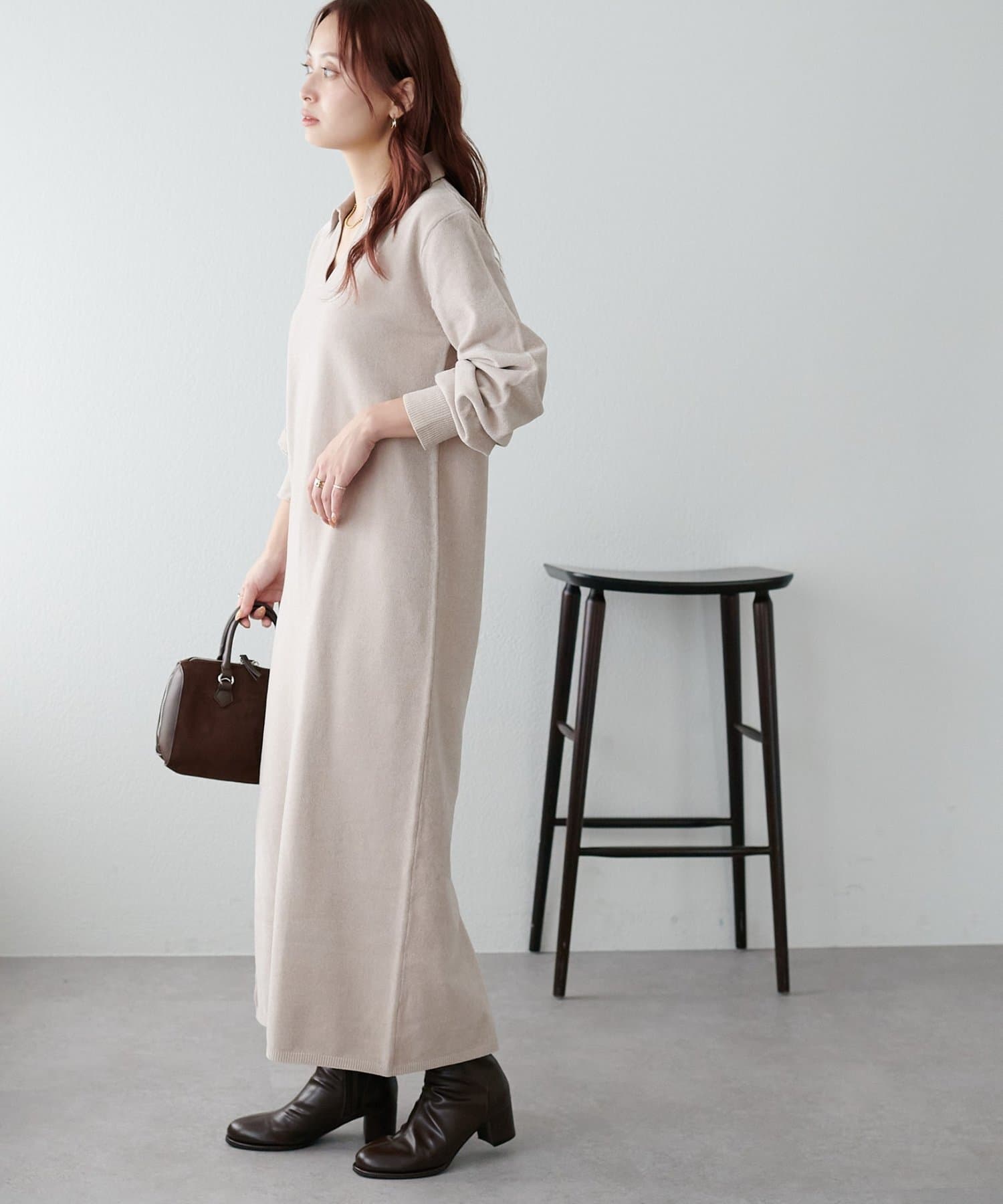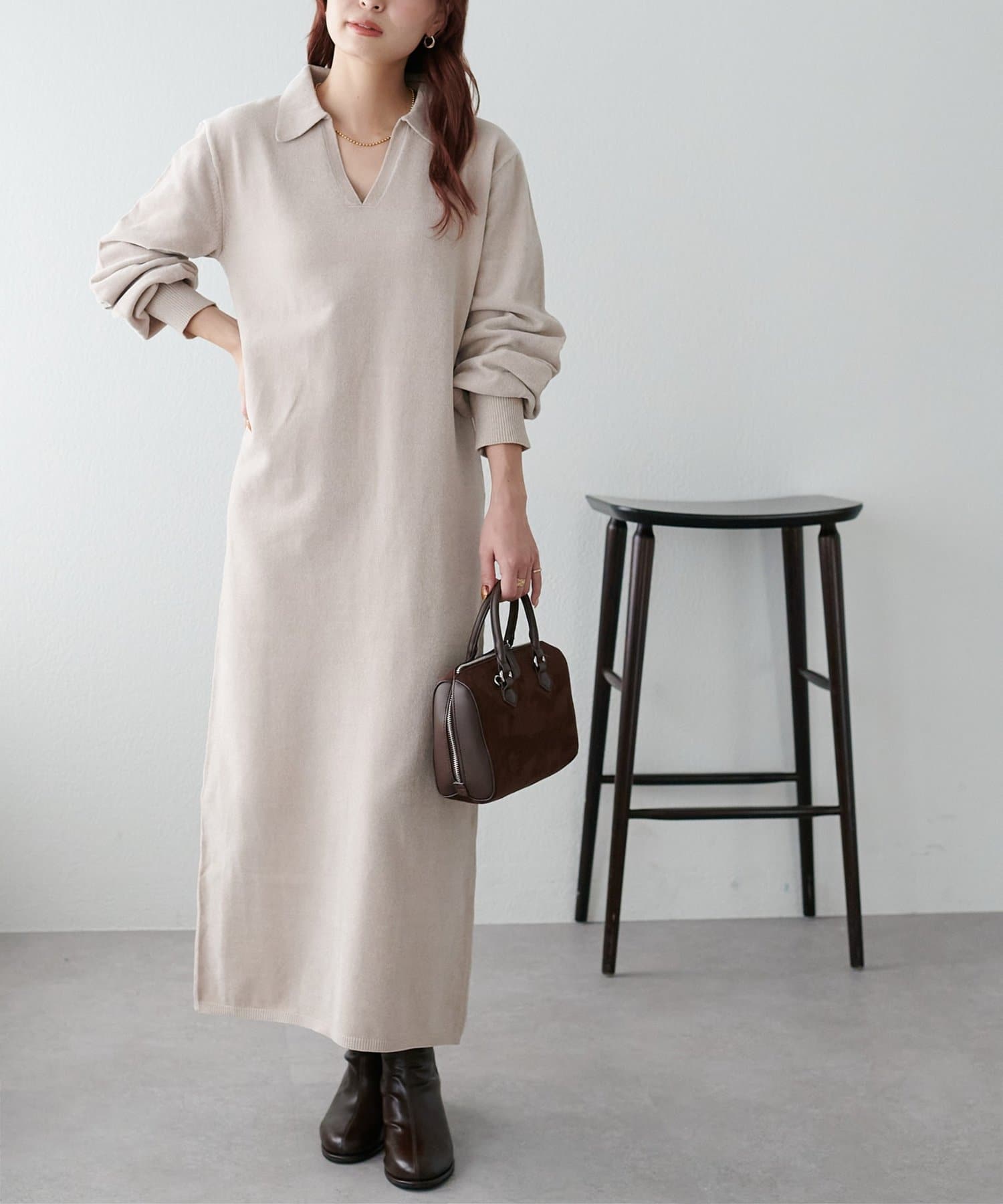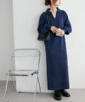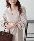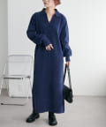 すとんと落ち感のあるシルエットにスキッパーのデザインがメリハリのある雰囲気を引き立ててくれるワンピース。