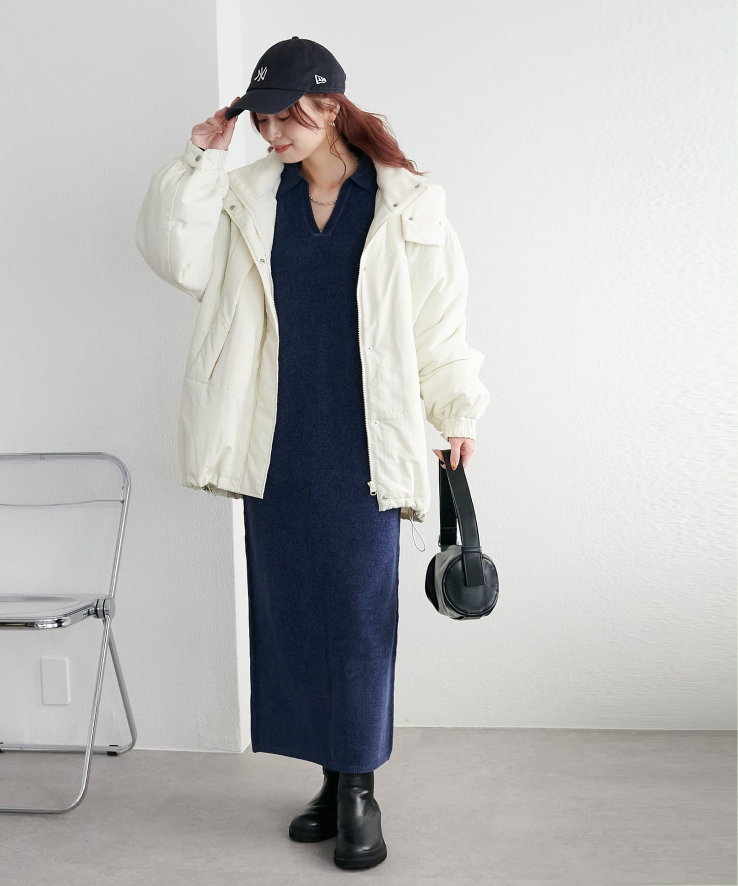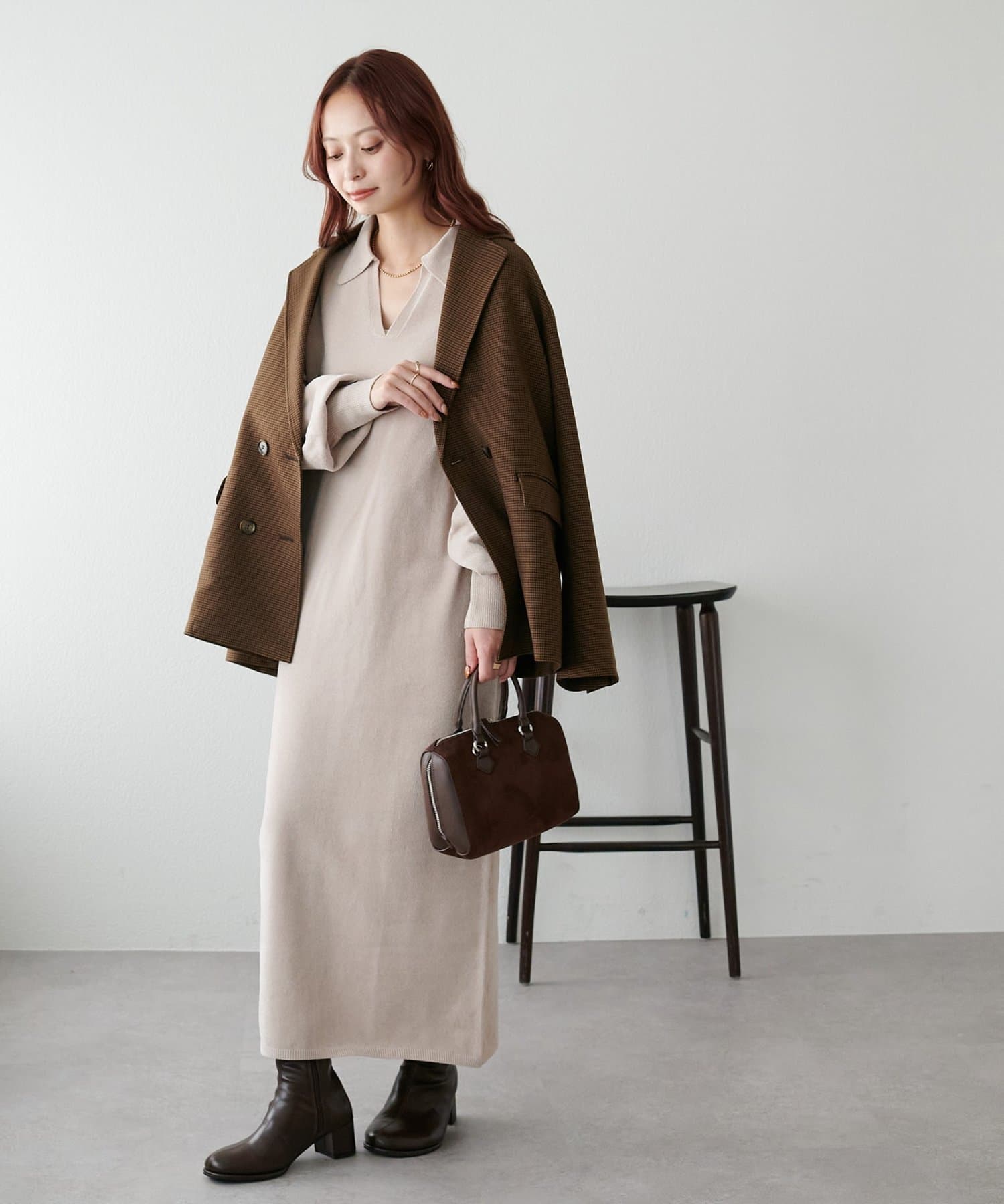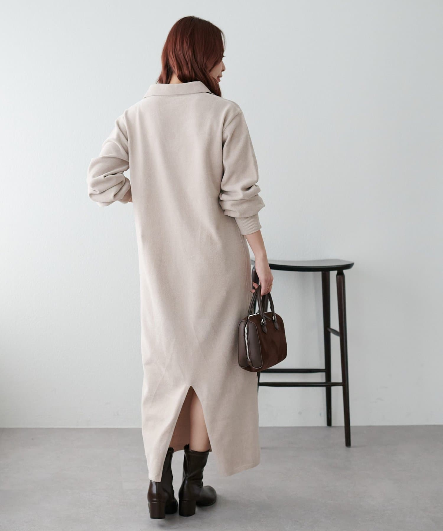 162cmスタッフ:ブーツを合わせたときに足首にかかるほどの着丈です。