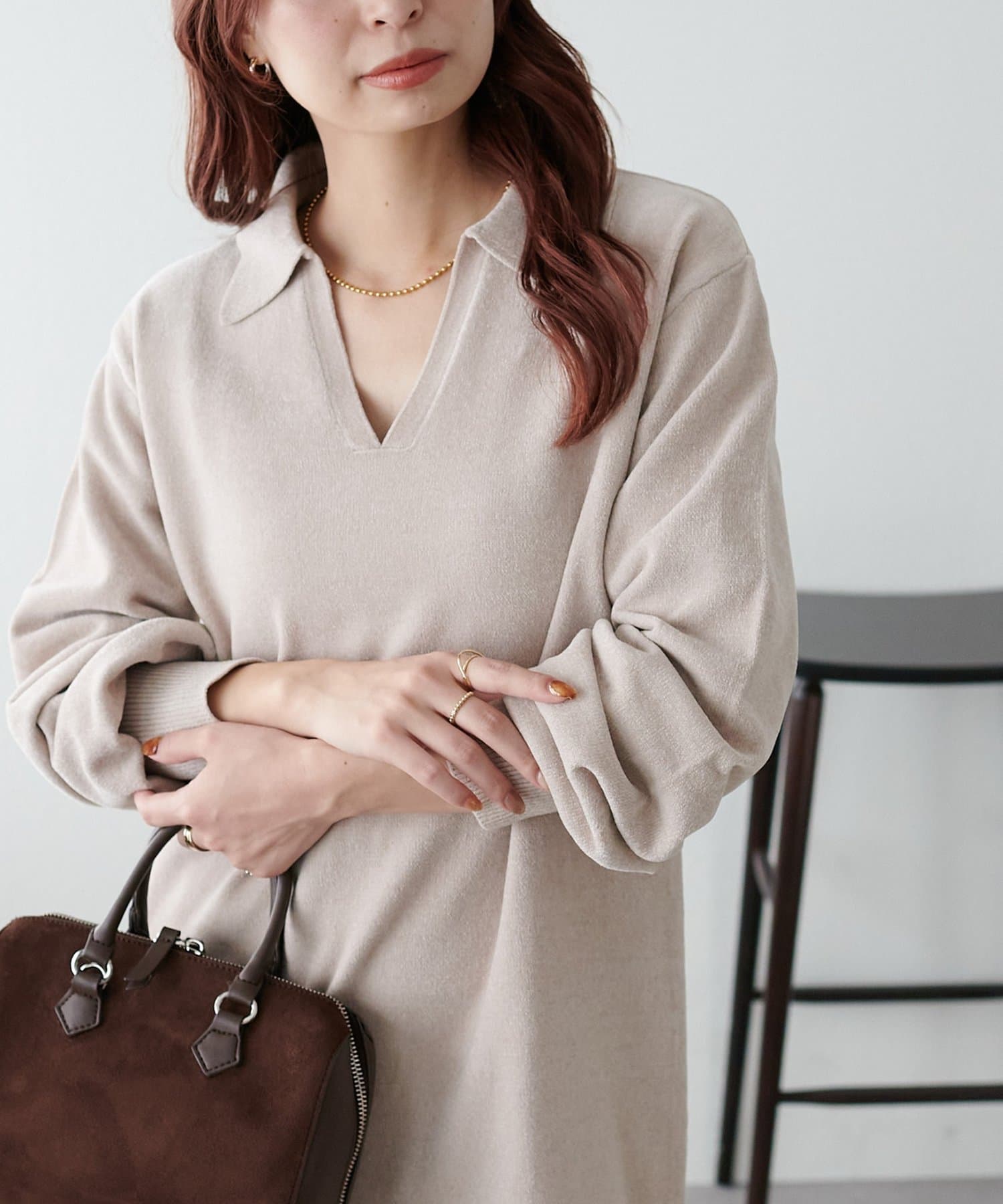 今年トレンドのスキッパーデザインも顔回りがスッキリとした印象になり高見えします。