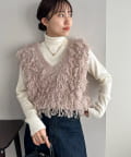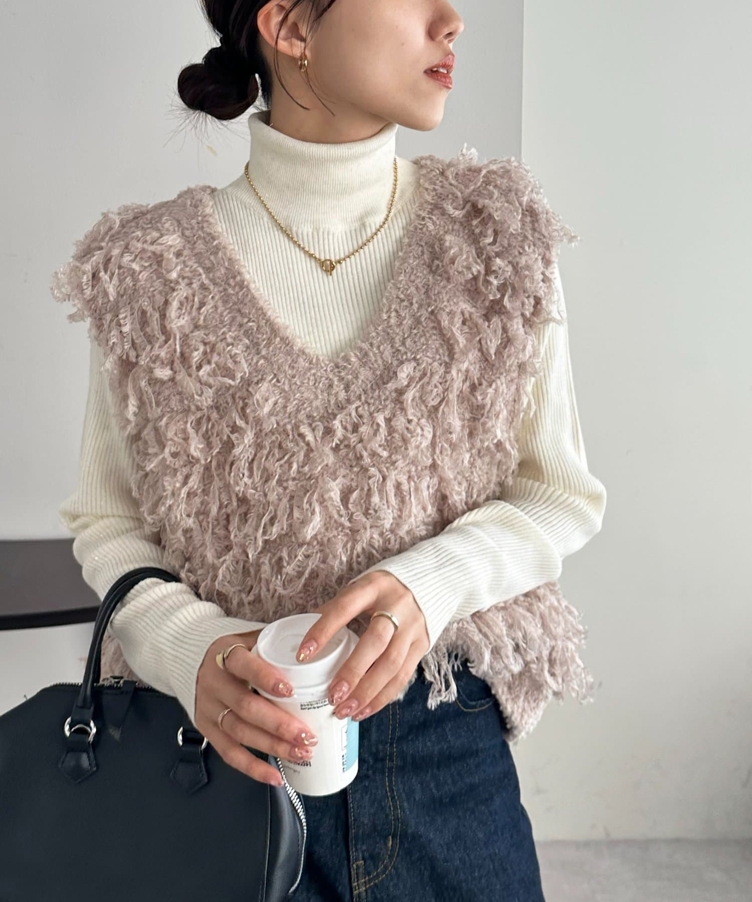 ・ふわっとした立体感のあるフリンジニット素材でチクチク感がなく、長時間着てもストレスのない肌触り