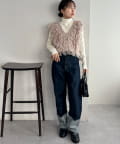 Vネックが深すぎないので、首の詰まったインナーを入れても重く見えなかったです◎