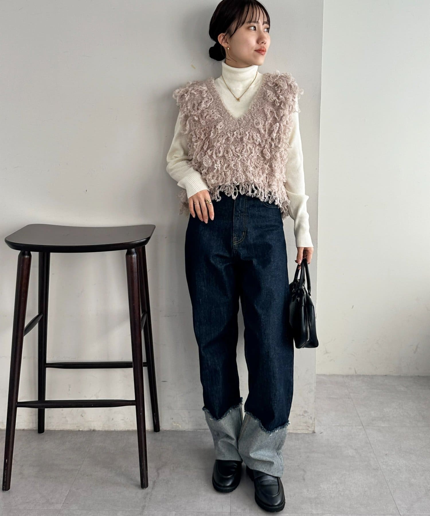 ・タートルネック × デニム合わせで、カジュアルコーデ