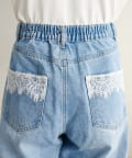 さりげないレースが映える、ポケットレースワイドデニム
