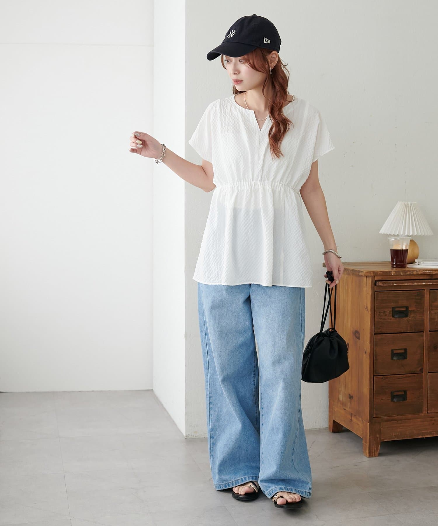 167cmスタッフ:足首が少し見えるくらいの丈感で、すっきりとした印象で穿けました。カジュアルになりすぎず、きれいめトップスとも相性が良いです◎