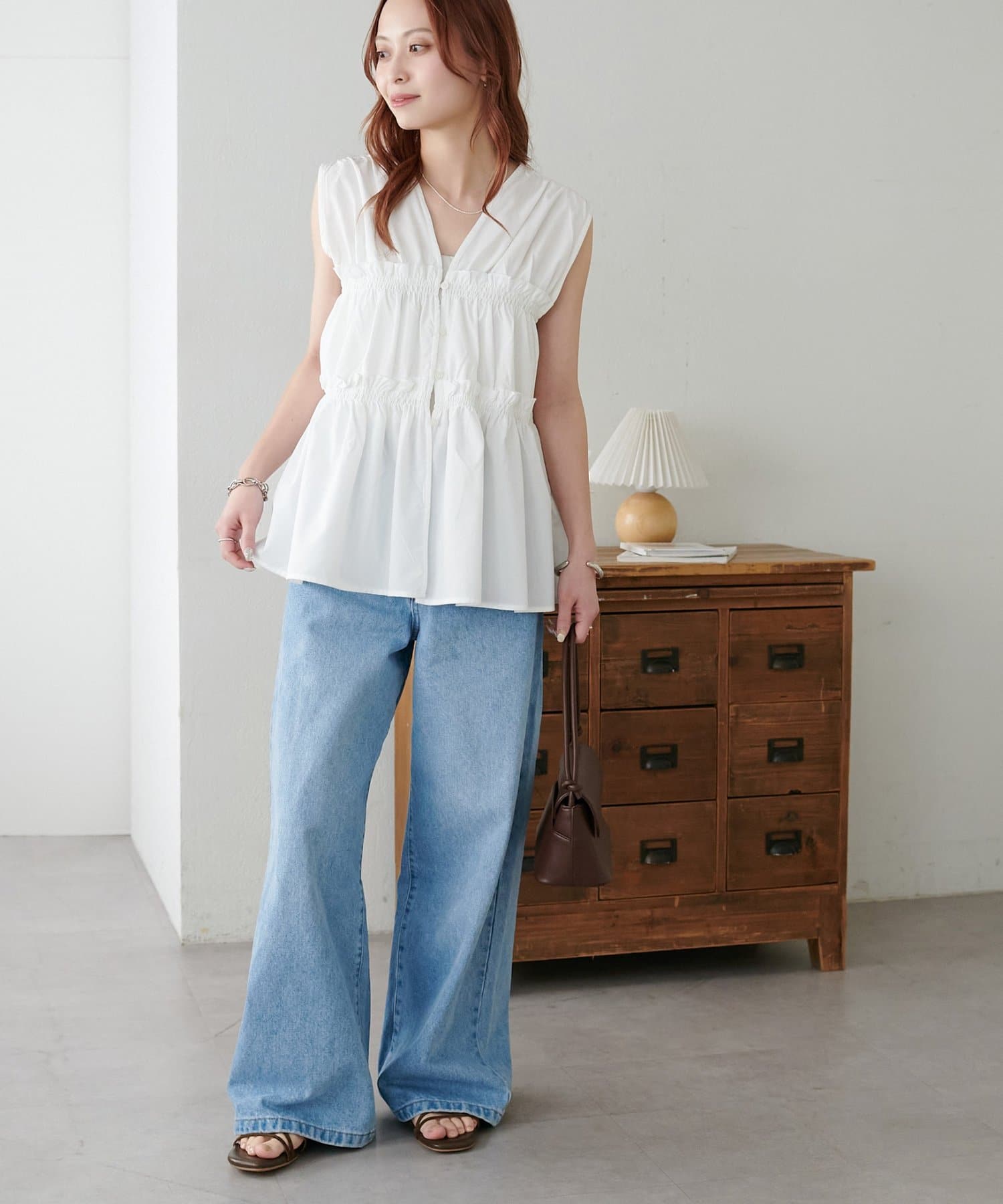 ・ブラウスやレーストップスと合わせれば、より女性らしい着こなしに