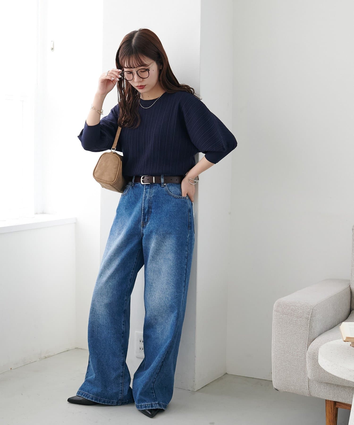 ・シンプルなカットソーやニットを合わせて、パンツ主役のコーデに
