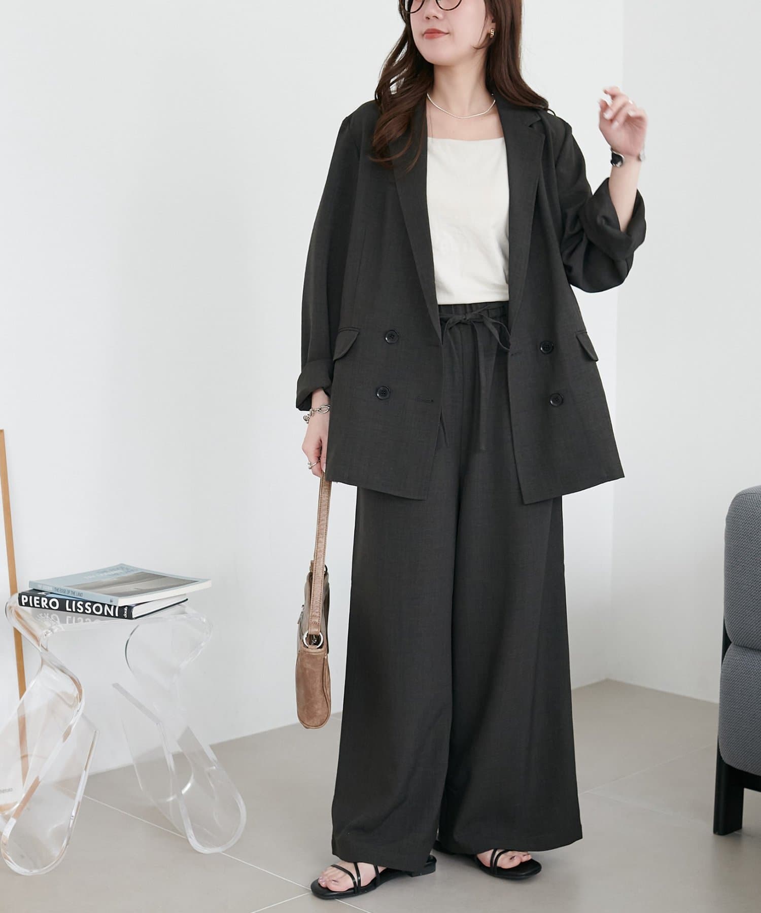 ▶テックリネンベルト付ワイドパンツ