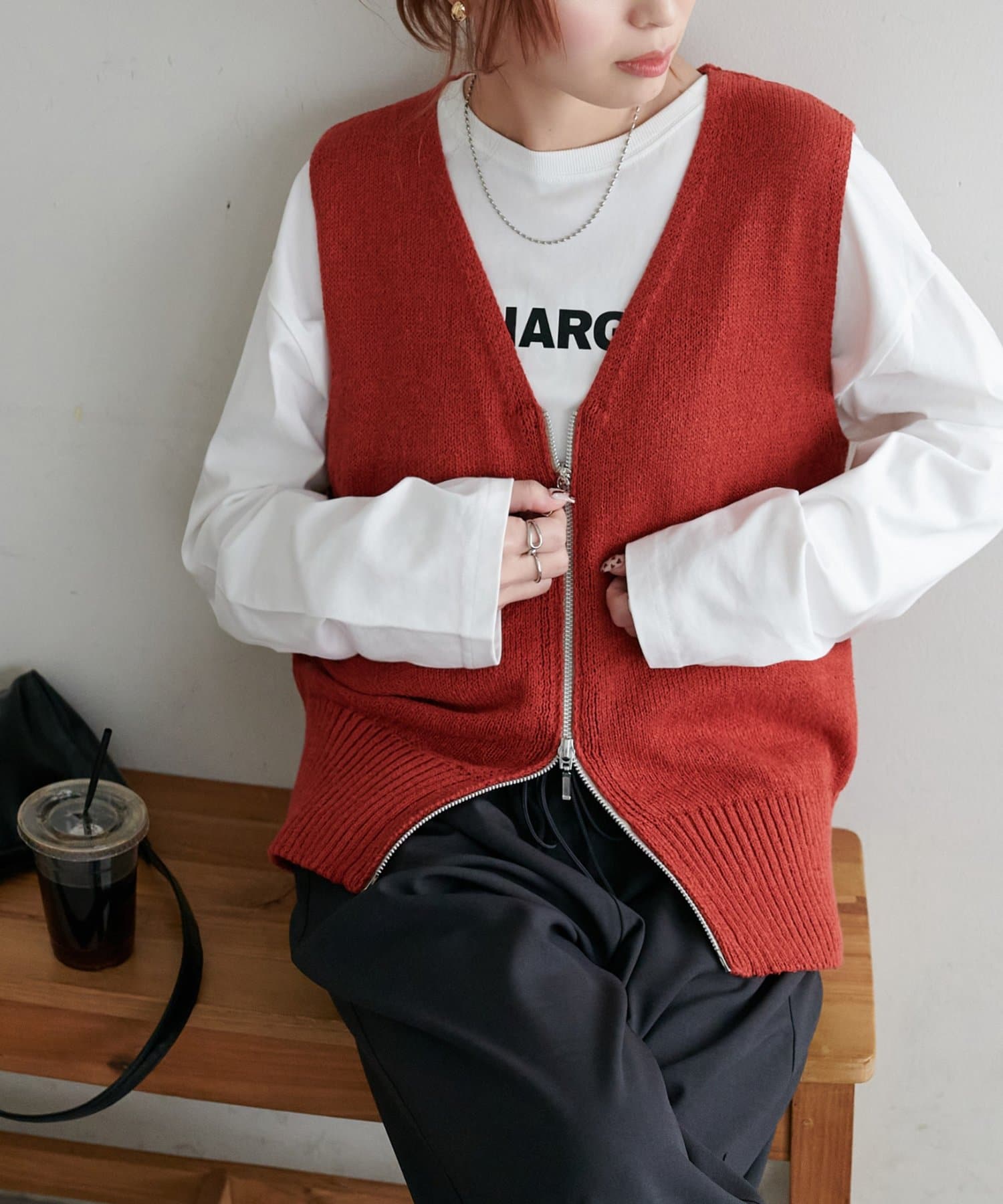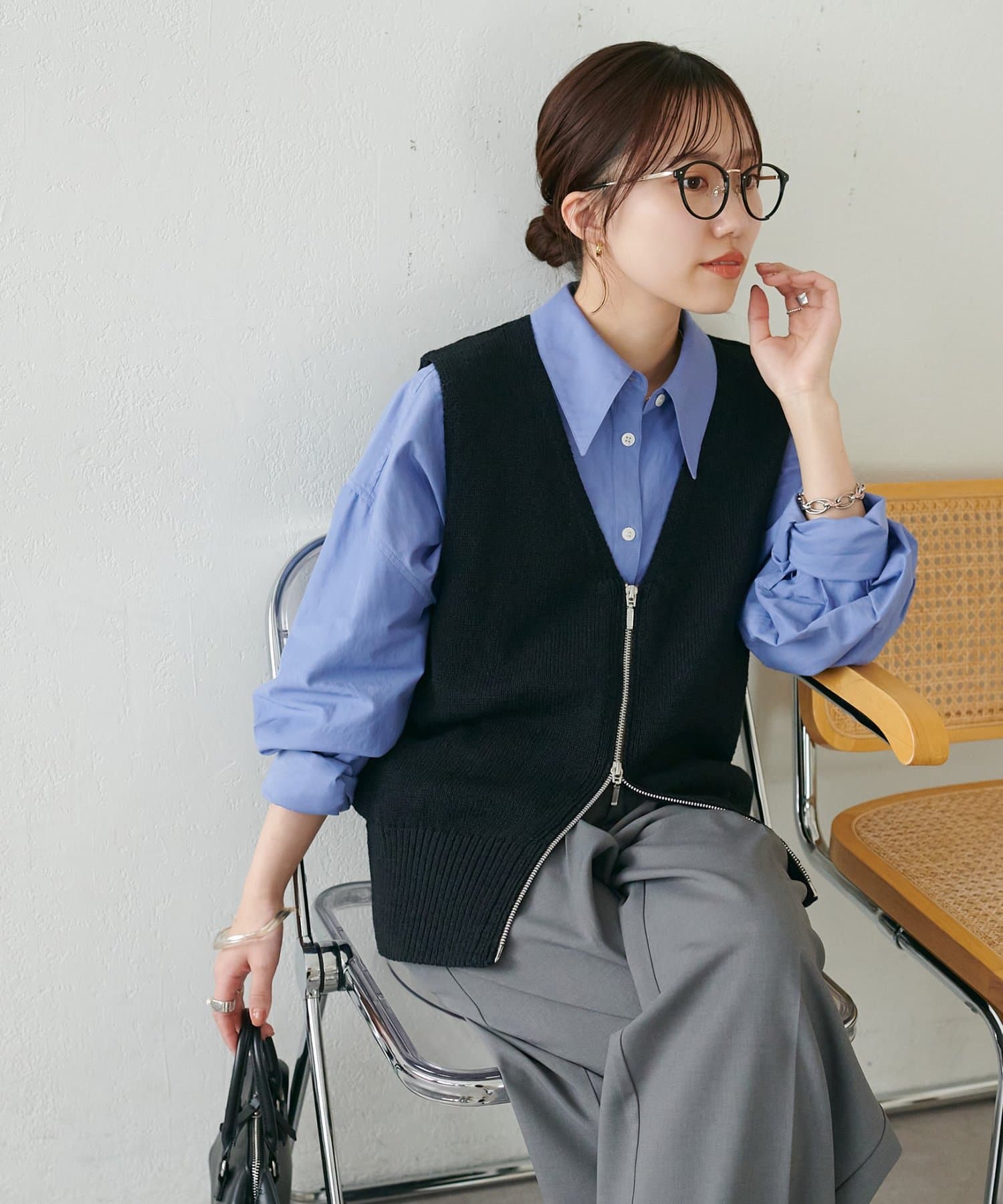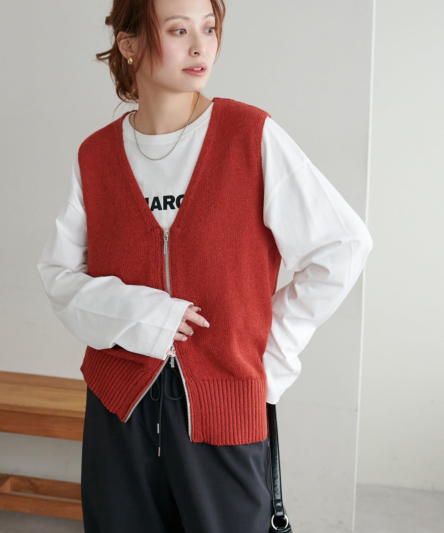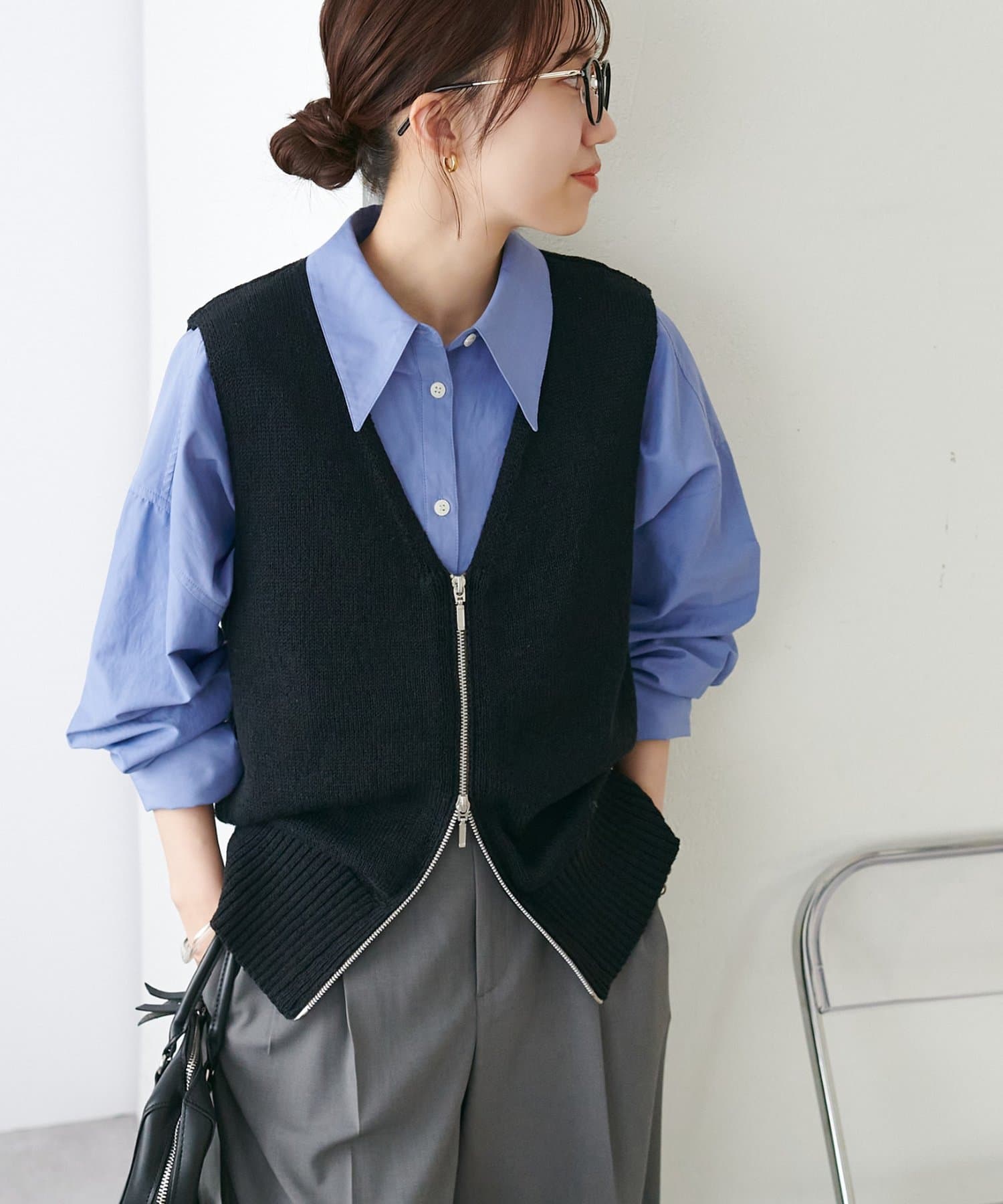 TOP > OUTLET > レディース > トップス > ベスト/ジレ > 【Discoat】ブークレジップ使いベスト