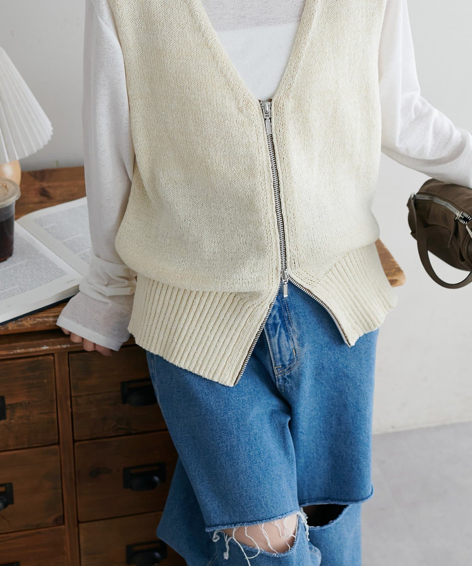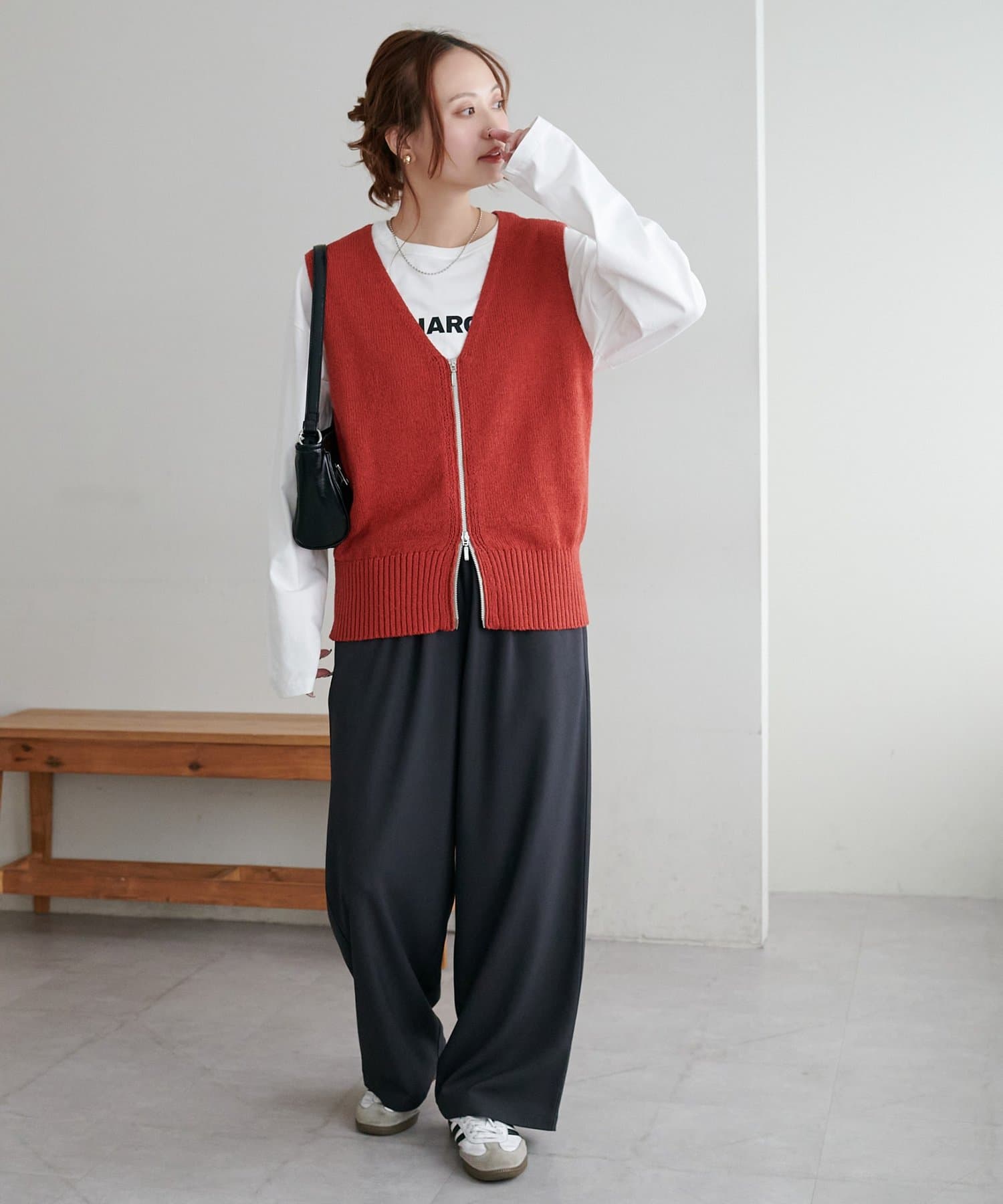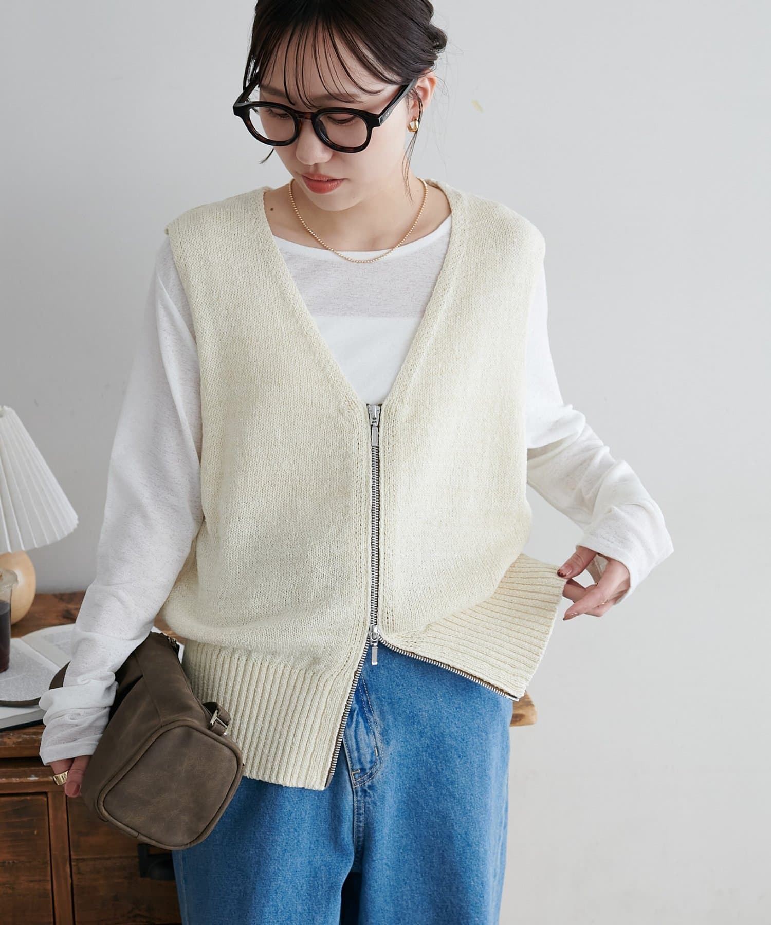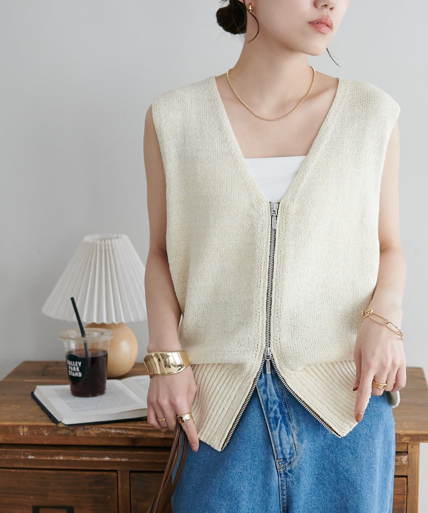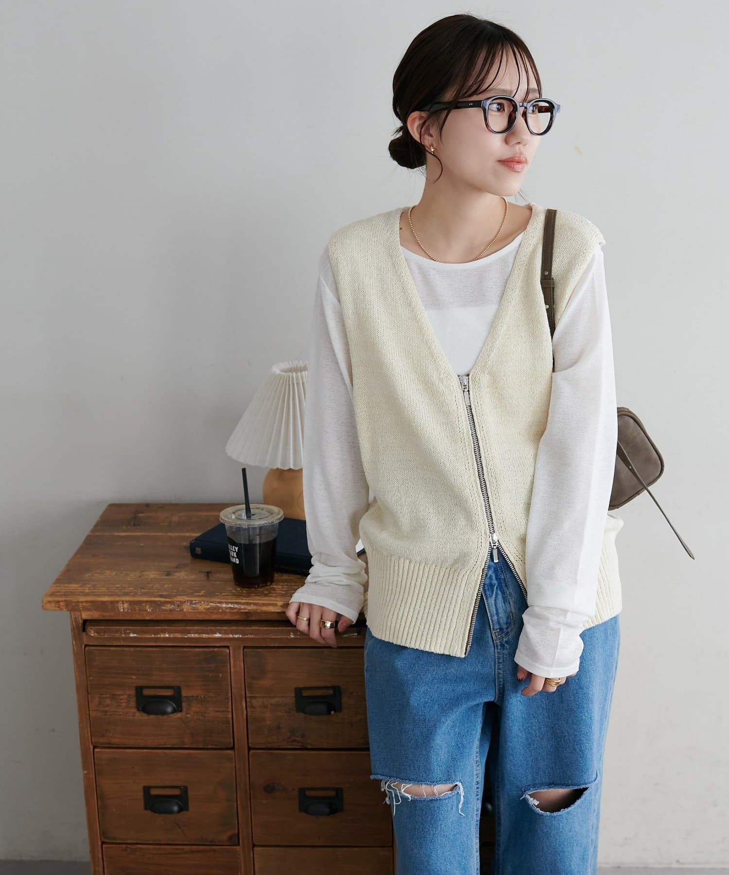 TOP > OUTLET > レディース > トップス > ベスト/ジレ > 【Discoat】ブークレジップ使いベスト