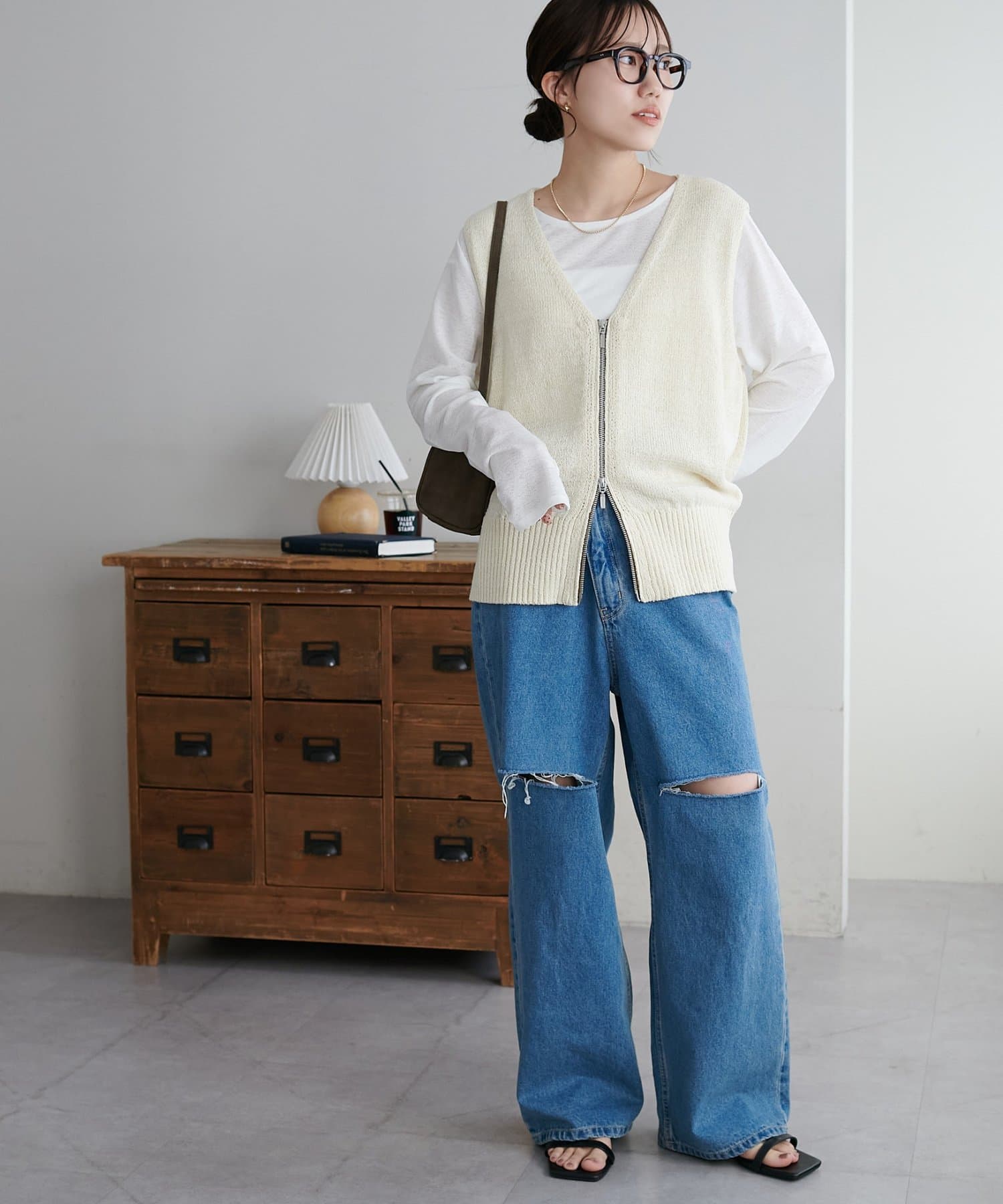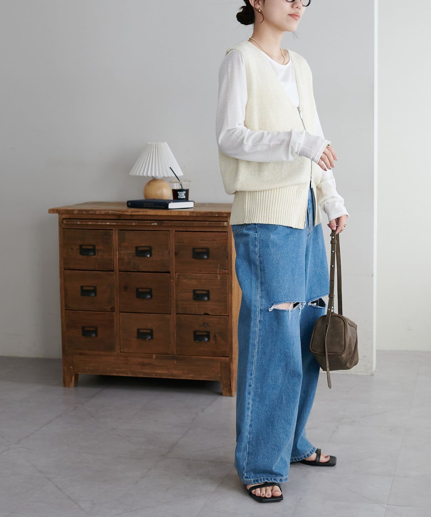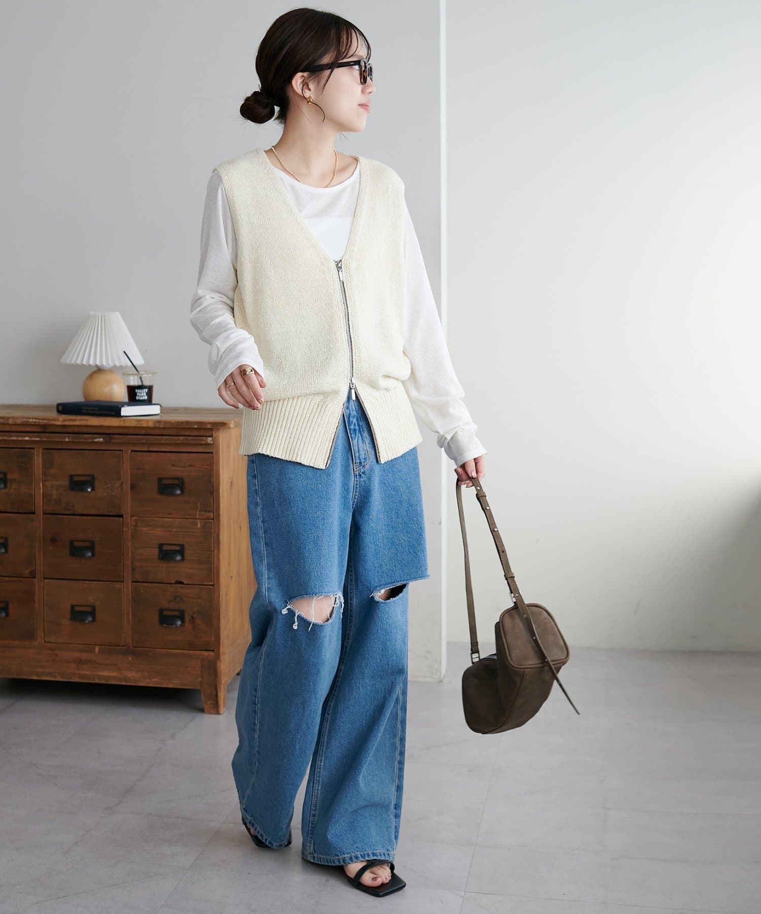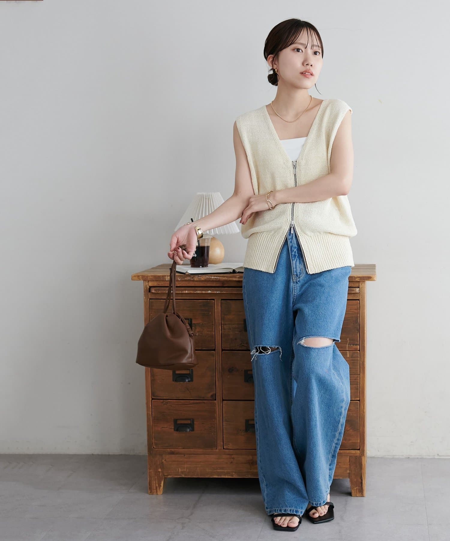 TOP > OUTLET > レディース > トップス > ベスト/ジレ > 【Discoat】ブークレジップ使いベスト